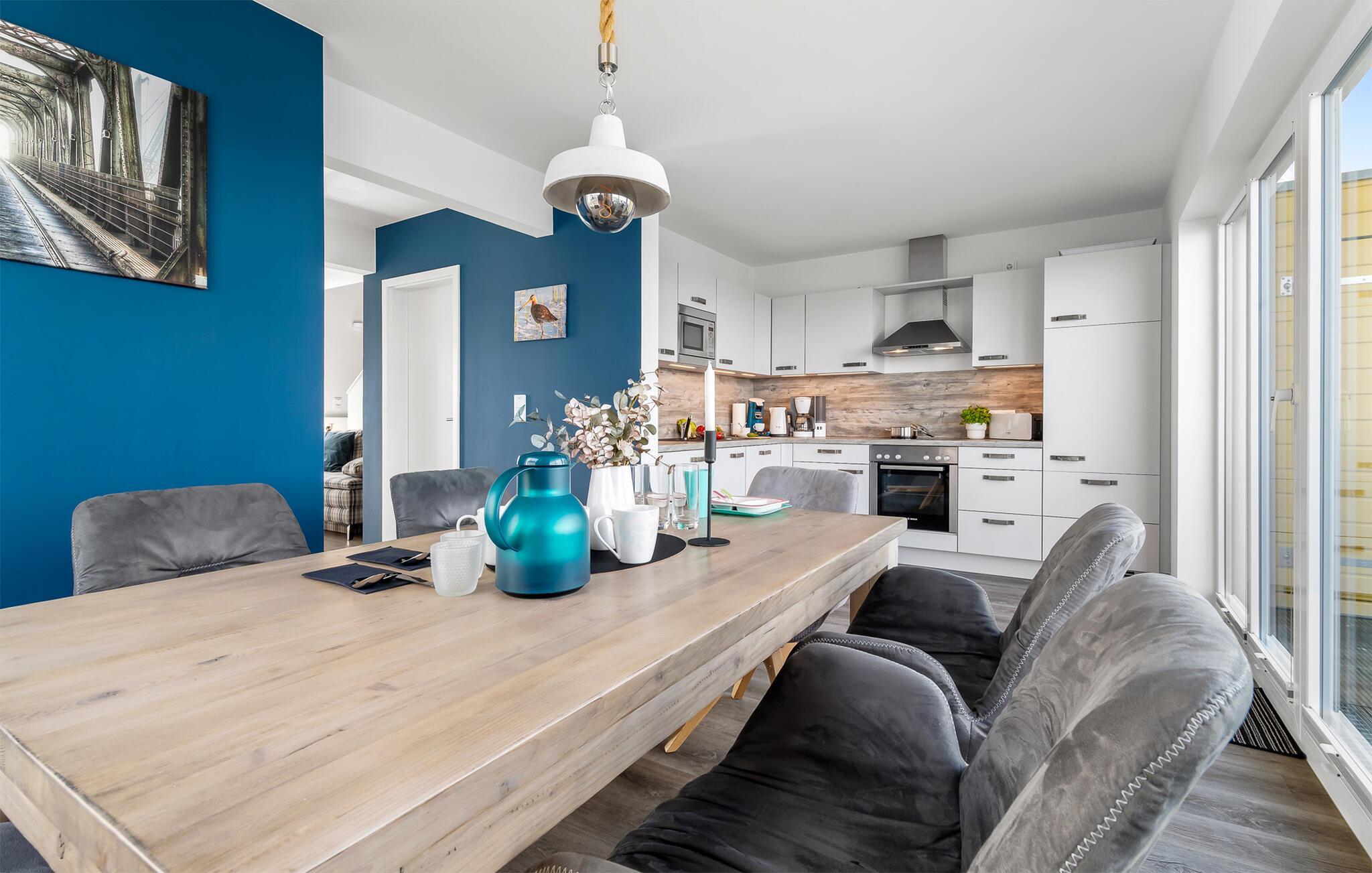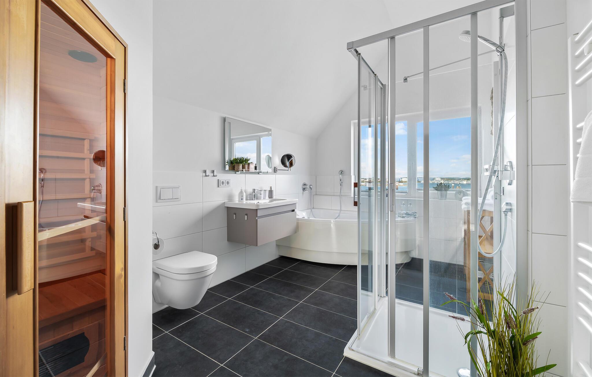 Denne rummelige bolig strækker sig over to plan og imponerer med højt til loftet og lyse rum. Opholds- og spisestuen på første niveau byder på panoramavinduer til de tilstødende terrasser, hvorfra I kan nyde en fantastisk udsigt over sejler- og sportsbådshavnen i OstseeResort Olpenitz. Nyd hyggelige aftener med en havnebiograf på terrassen eller romantiske middage i levende lys ved solnedgang. Det fuldt udstyrede køkken-alrum inviterer til kreativ madlavning, mens I kan byde morgenen velkommen i morgensolen ved det store spisebord eller på terrassen. Huset har gulvvarme, sauna, spabad og pejs, som lover hygge i hver sæson. Takket være Bluetooth-forbindelsen kan I endda nyde jeres yndlingsmusik, mens I bruger saunaen. Afslapningsområdet på andet niveau byder på et master bedroom med en vidunderlig udsigt til vandet og en dobbeltseng, samt et andet soveværelse med fleksible enkeltsenge. En komfortabel sovesofa i opholdsområdet tilbyder ekstra soveplads. Slap af i det fuldt udstyrede badeværelse med infrarød varmekabine til to personer, hi-fi lydanlæg og LED farvelysterapi samt et stort hjørnespabad med udsigt til vandet. Et brusebad på første sal tilbyder ekstra komfort. Sandstranden Weidefelder ligger inden for gåafstand, ligesom havnepromenaden i OstseeResort Olpenitz er. Den perfekte kombination af komfort, afslapning og unik natur venter jer her. Oplev uforglemmelige ferieøjeblikke i ferielejligheden Uferschnepfe, jeres hjem ved Østersøen. Der er en privat parkeringsplads og et cykelskur lige foran huset. Ferielejligheden Uferschnepfe er en etagelejlighed på første og anden sal. Bemærk venligst: OstseeResort Olpenitz er meget populært, og der bygges fortsat i parken. Ikke desto mindre kan I se frem til en 5-stjernet standard og et førsteklasses ophold. Byggeaktiviteterne kommer ikke til at forstyrre jer på ferien, og derfor gives der ikke yderligere afslag i prisen.
