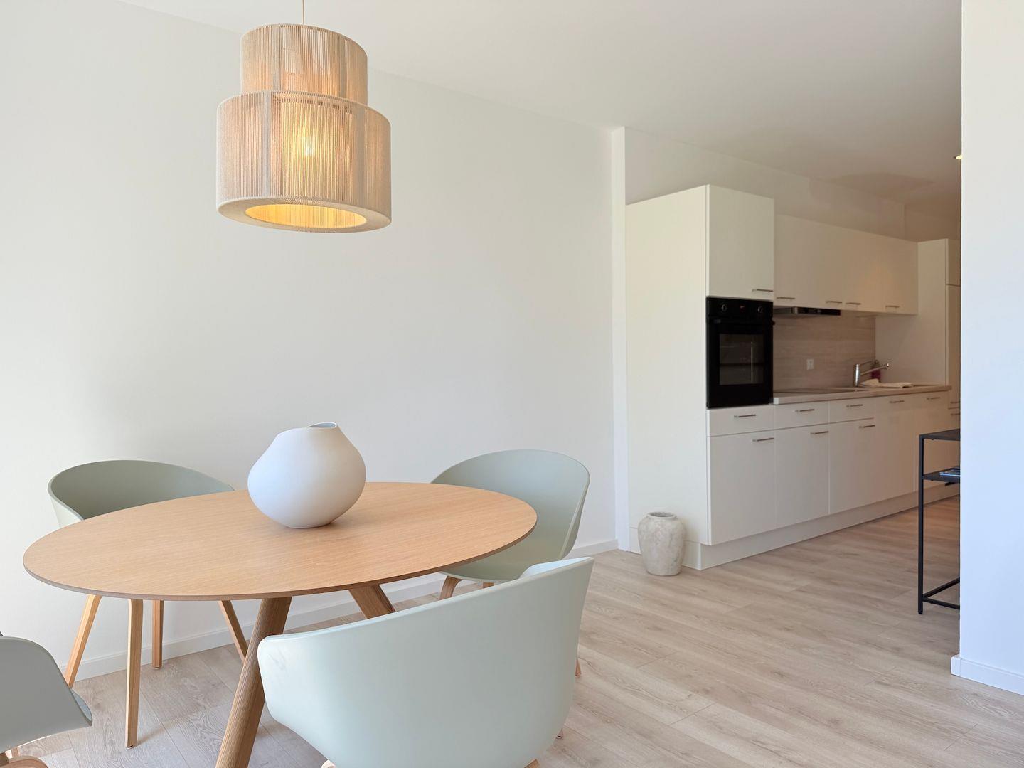 Das Badezimmer ist mit einer bodengleichen Dusche, Haartrockner, Waschbecken, WC und Spiegel ausgestattet. Badetücher, Handtücher, Bettwäsche sowie Reinigungsmittel sind inbegriffen. Waschmaschine und Trockner stehen zur gemeinschaftlichen Nutzung bereit, ein Wäscheständer ist ebenso vorhanden. Für zusätzlichen Komfort sorgt die durchgängig installierte Fußbodenheizung, betrieben über eine effiziente Wärmepumpe. Sichtschutz an allen Fenstern und Rauchmelder gewährleisten Sicherheit und Privatsphäre.