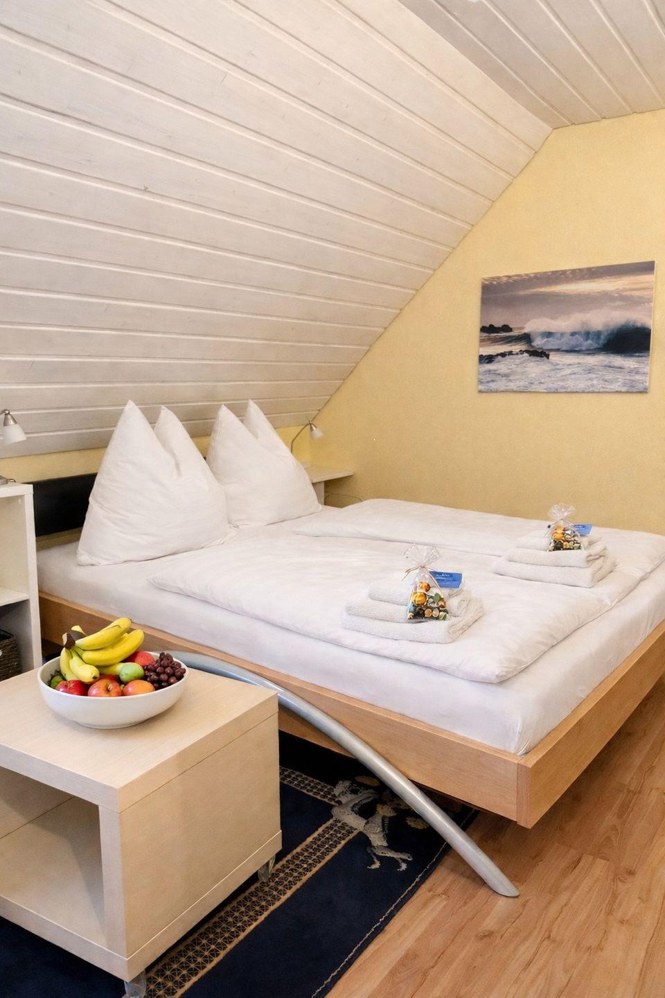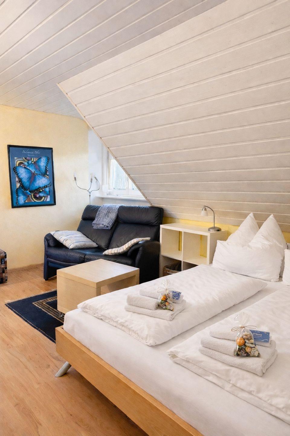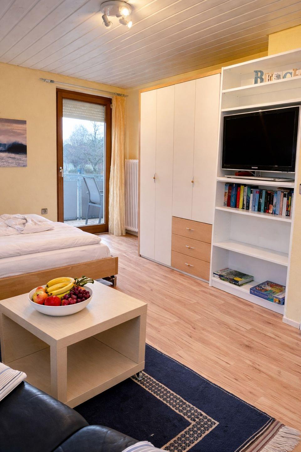 Die Ferienwohnung Birnau bietet auf 37 Quadratmetern einen gemütlichen Rückzugsort für Paare, die Ruhe, Komfort und eine liebevoll eingerichtete Unterkunft suchen. Im ersten Obergeschoss gelegen, empfängt Sie die Wohnung mit warmem Ambiente, einem komfortablen Doppelbett und einem freundlichen Wohnbereich zum Entspannen.