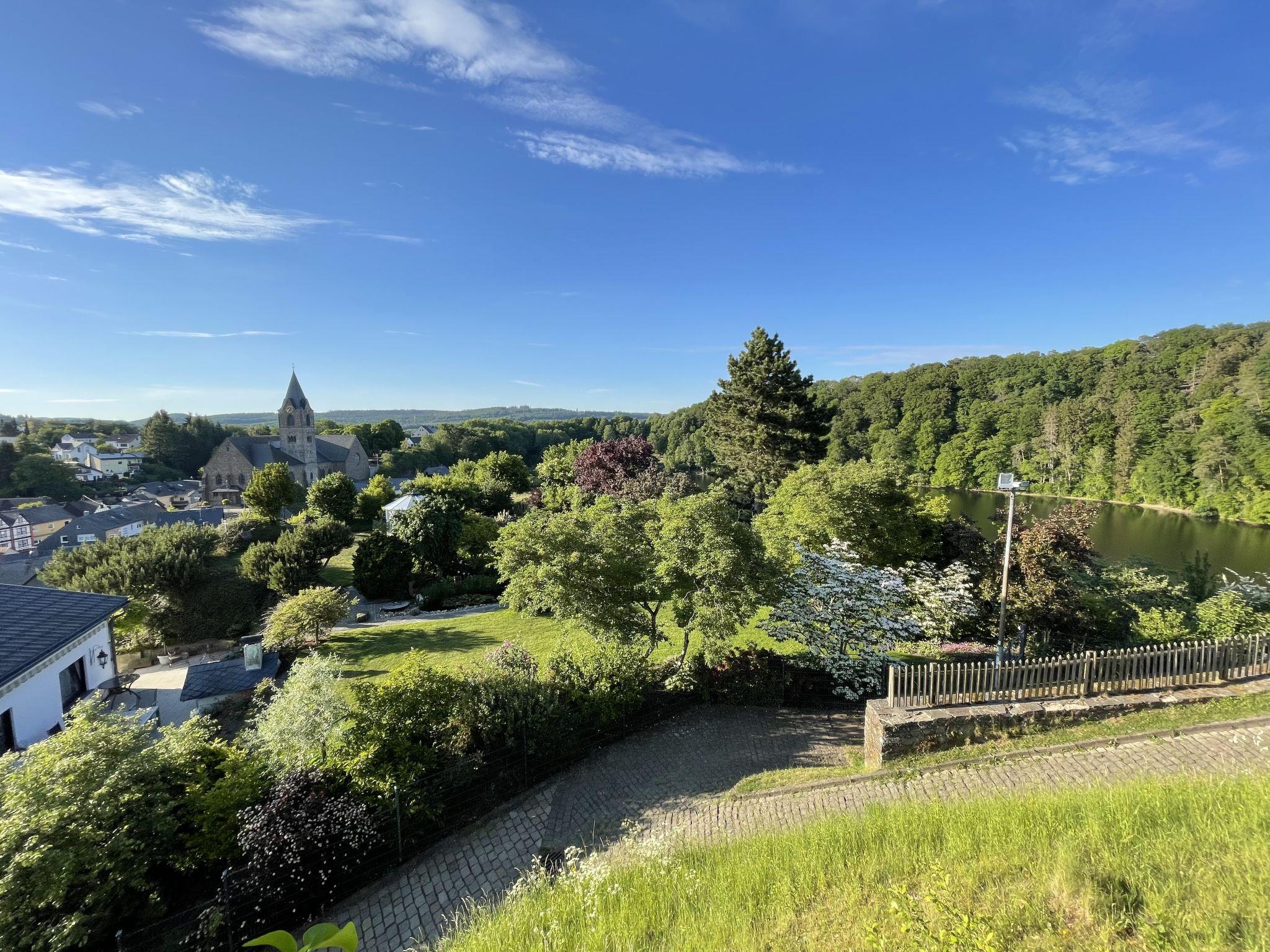 Arrive and immediately feel at home. - the Eifelcottage Storchennest is secluded and invites you to relax. The detached 4-star house was completely renovated in 2020. It is a wooden log cabin and is very cosy with high-quality furnishings. The Eifelcottage Storchennest has 2 bedrooms, each with a double bed. In the large living room you will find 2 couches, a sofa bed, satellite TV, DVD player and a modern stereo system. The open fireplace invites you to relax. The kitchen is fully equipped with a dishwasher, cooker, oven, microwave, coffee machine, kettle, toaster and egg boiler. You can dine in the separate dining room with high-quality rustic and very comfortable 8 chairs - or on the beautiful large terrace with a view of the valley. The terrace is secluded and has garden furniture, sun loungers and a parasol as well as a charcoal barbecue. The luxury bathroom has a rain shower, underfloor heating and towel warmer. Of course, there is also a washing machine in the bathroom for your exclusive use. For your convenience, you will also find an iron and ironing board as well as a hairdryer. The beds are freshly made on your arrival, your bath towels and hand towels are ready for you. We are happy to provide you with bathrobes free of charge. Firewood is available for a fee. Additional blankets and pillows are available on request. You live in the holiday home all by yourself. It is situated on a south-facing slope on a 500 square metre plot with a lawn of approx. 60 square metres. The house has been awarded 4 stars by the German Tourist Association for an occupancy of 3 persons. Brief description Miscellaneous : Non-smoking house Brief description 1 Number of kitchens : 1 Other rooms : Dining room Bathroom 1 Other bathroom facilities : Rainforest shower, underfloor heating, towel warmer Surroundings Rental facilities : Bicycle hire Sports facilities in the surrounding area : Fishing, football pitch, golf course, hunting, climbing, mountain biking, cycling tours, skiing (cross-country skiing)Garden and outdoor facilities Garden equipment : Garden furniture available, barbecue Services 1 Miscellaneous : WLAN via LTE per week: for a fee