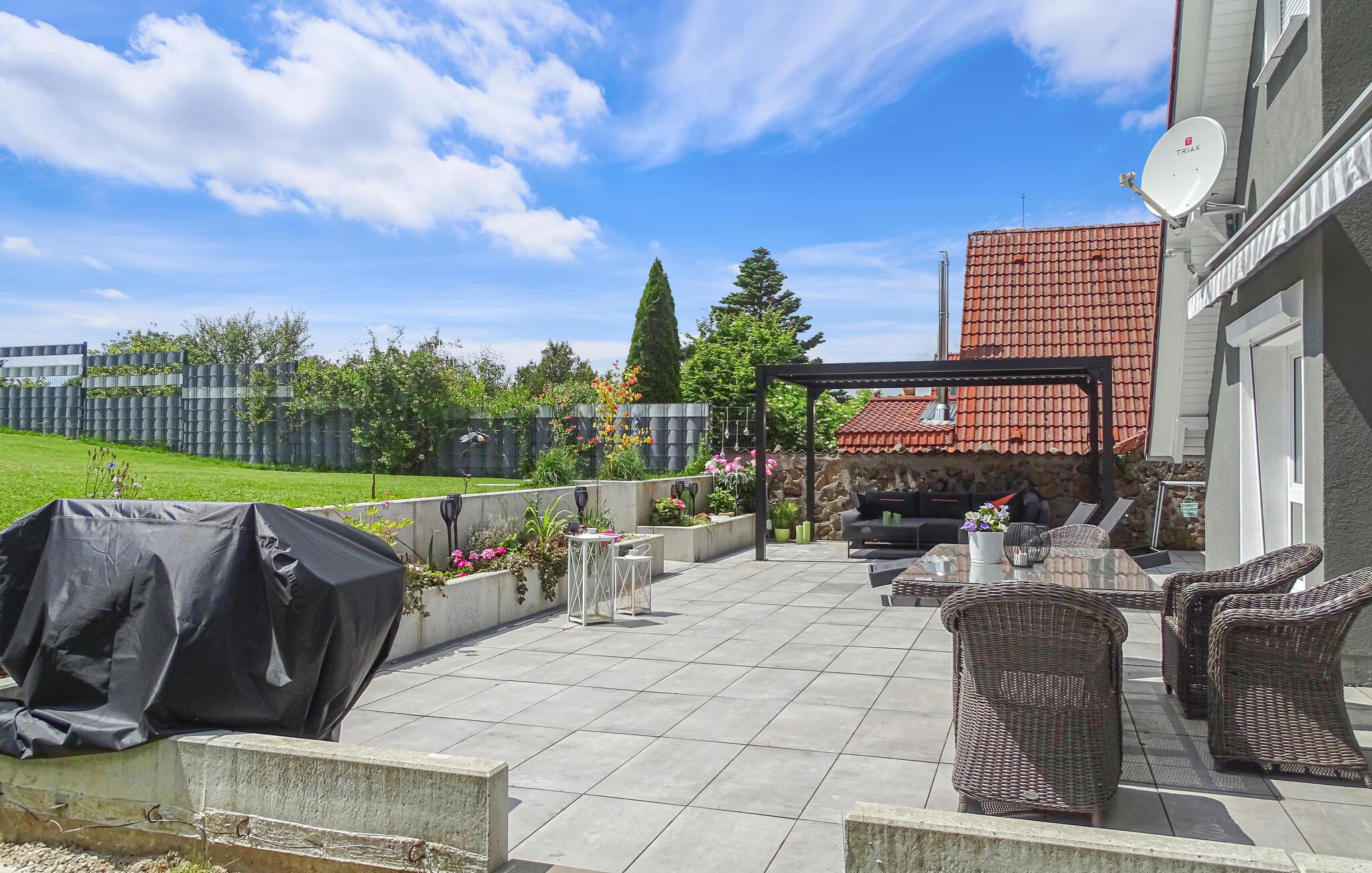 Træd ud på den store terrasse ved de første solstråler og nyd en malerisk udsigt over Ulrichstein Slot. Nyd en afslappet morgenmad, inden I planlægger jeres aktiviteter. Om aftenen kan I tænde grillen og sidde komfortabelt med familie eller venner over et glas god vin.