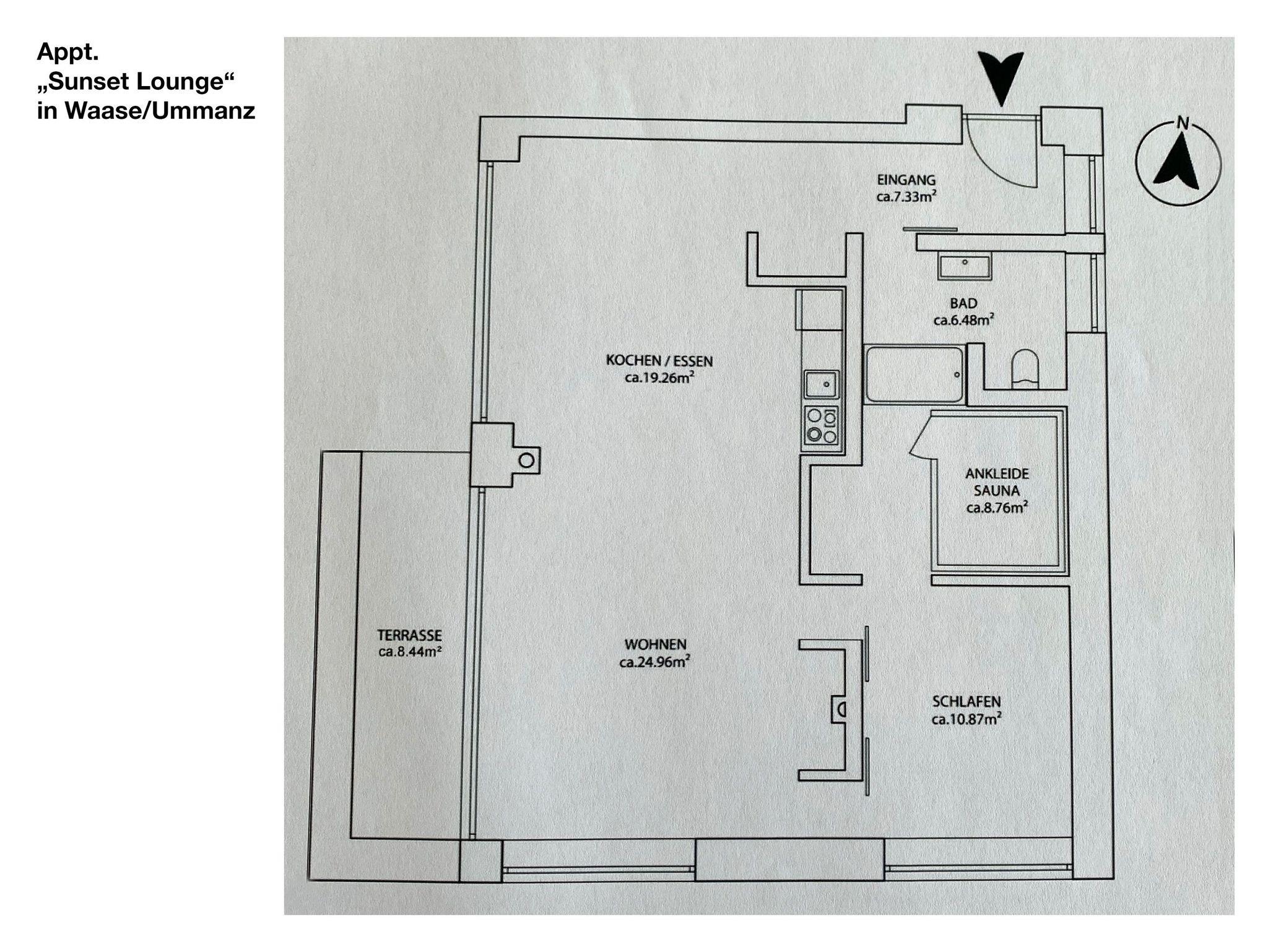 Die „Sunset Lounge“ ist für 1-2 Personen buchbar. Mit Rücksicht auf nachfolgende Gäste sind das Rauchen in der Wohnung und die Mitnahme von Haustieren nicht gestattet.