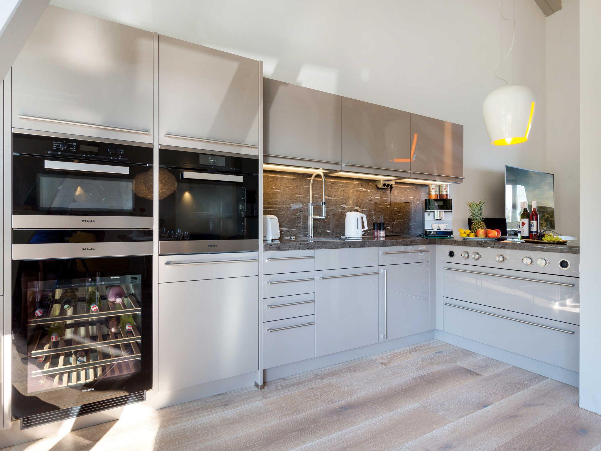 Küche mit Cerankochfeld, Mikrowelle, Geschirrspüler, Esspressomaschine (ganze Bohnen)