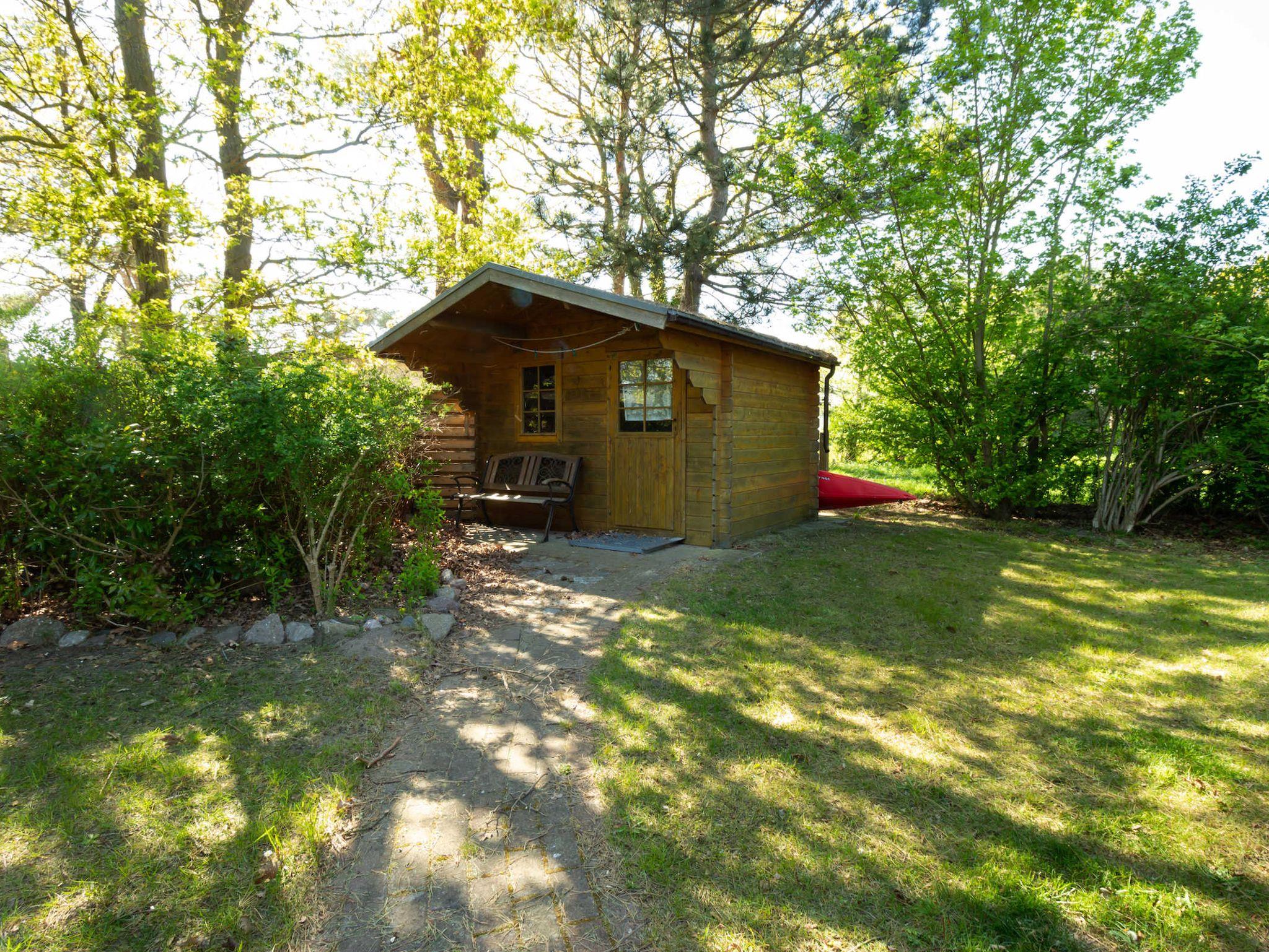 In Gartenhaus befinden sich Deichstühle, ein neues SUP, ein Grill, ein Sonnenschirm und ein Kajak, die für einen entspannten Sommerurlaub genutzt werden können.