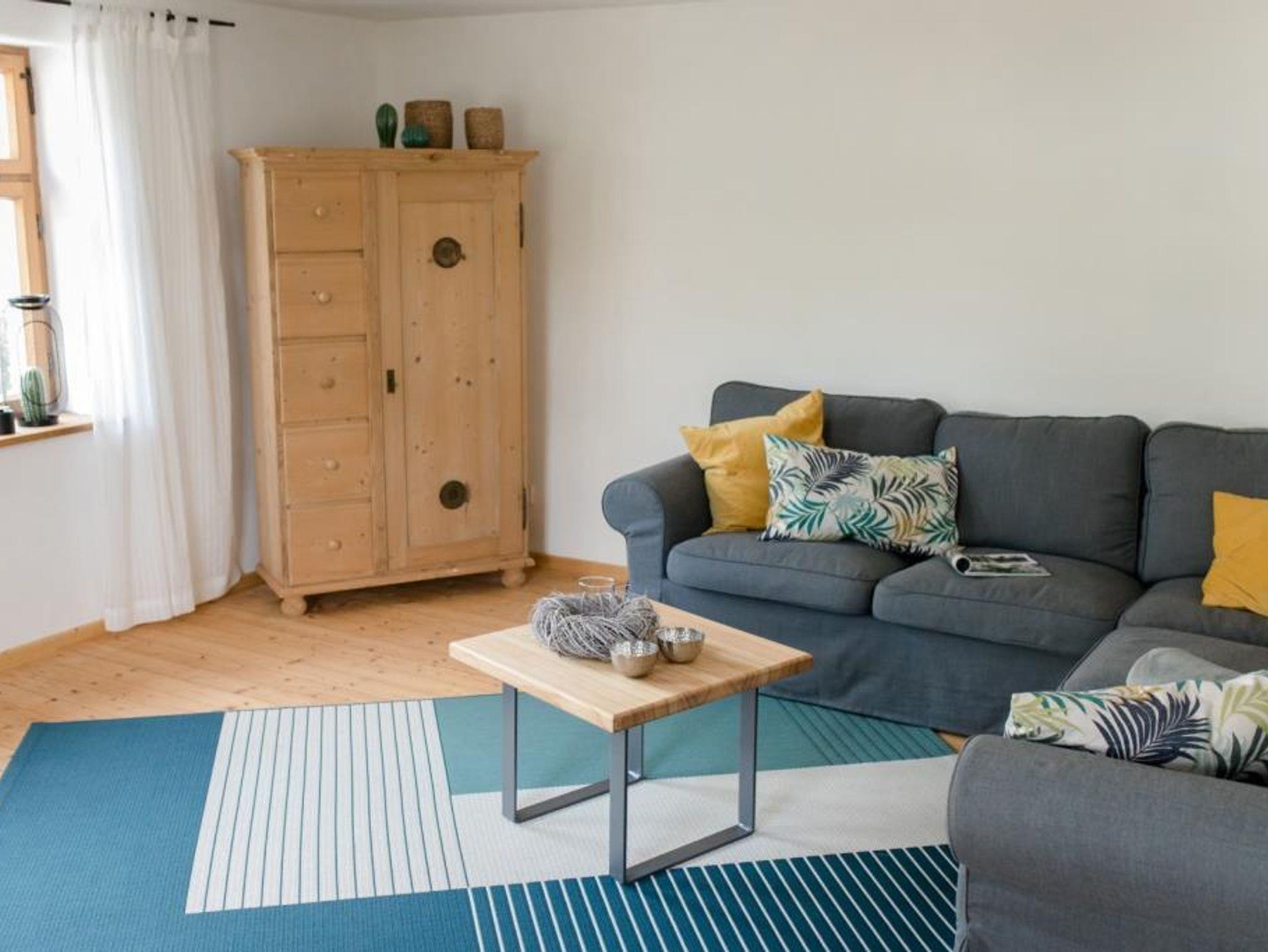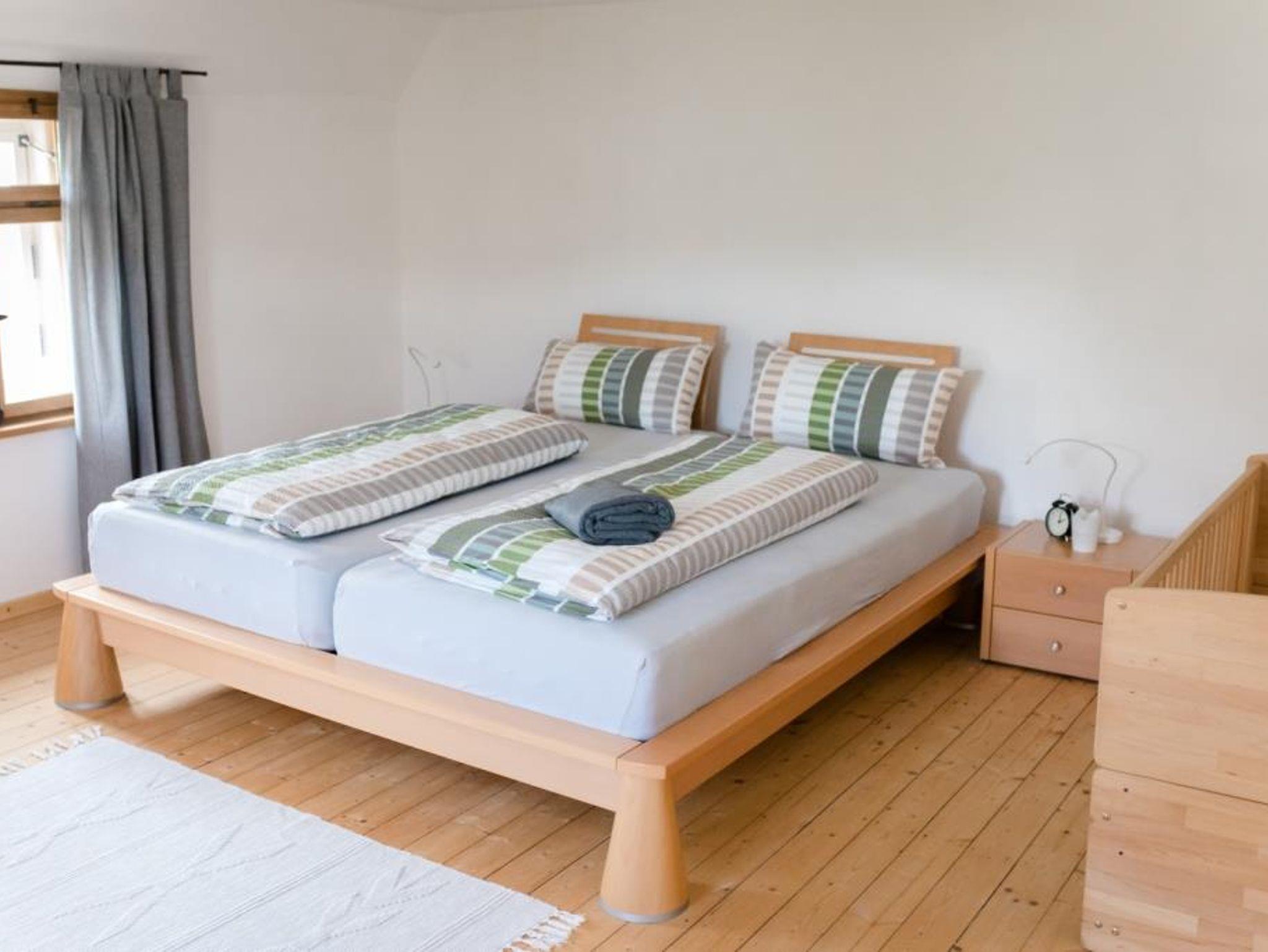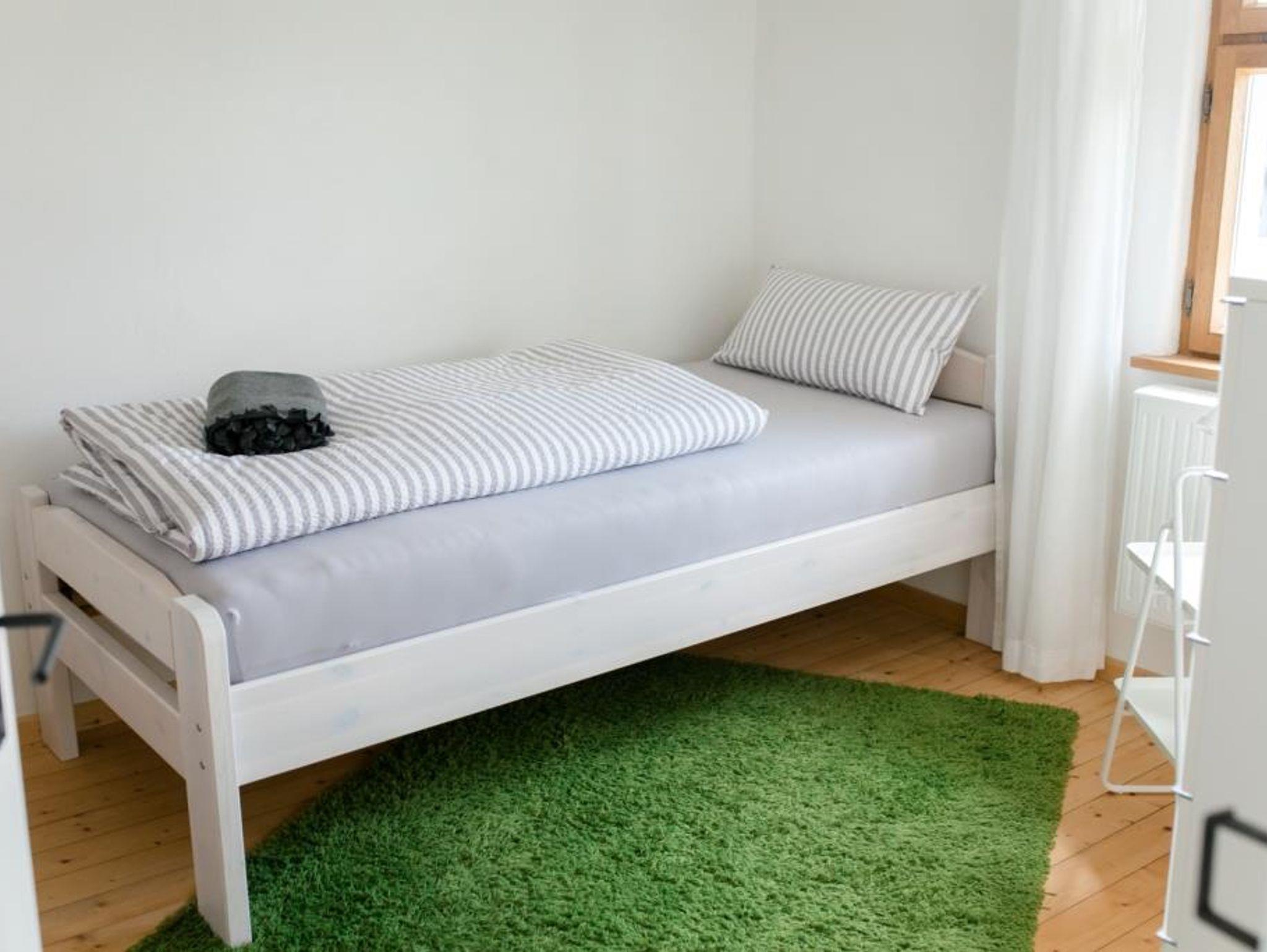 Durch 3 separate Schlafzimmer und 2 Badezimmer finden bei uns Familien mit Großeltern, Familien mit bis zu 4 Kindern und einem Baby, Ehepaare, Freunde oder auch zwei Familien gemeinsam genug Platz. Bis zu zwei Personen können im Erdgeschoss ebenerdig wohnen, denn dort befinden sich neben Küche, Esszimmer und Wohnzimmer auch eines der Schlafzimmer und ein Badezimmer.