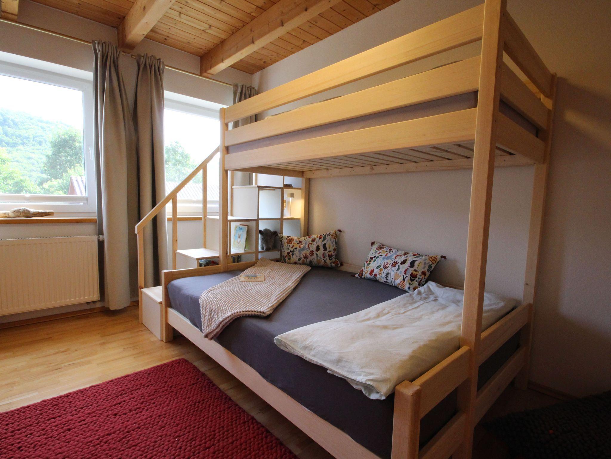 Das vom Schreiner angefertigte Hochbett im zweiten Schlafzimmer ist aus Zirbenkiefer und naturbelassen.