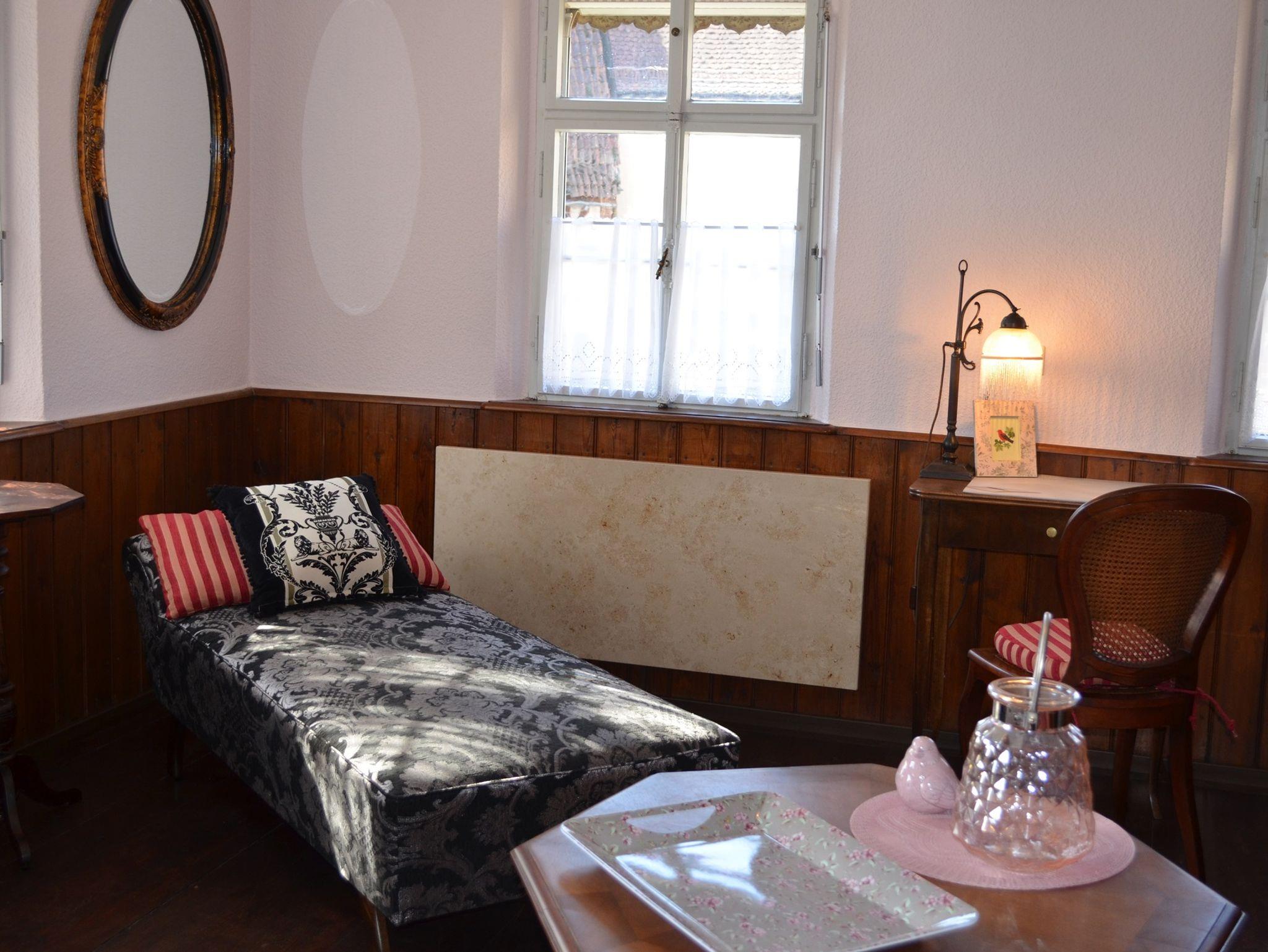 Suite Merzbach Erdgeschoß links: Nichtraucher, keine Haustiere. Heiter helle Atmosphäre in hinreißend eingerichteter Suite, im Haus aus dem 19. Jahrhundert, im dörflichen Ortskern. Schlafzimmer mit Boxspring-Doppelbett, historisch eingerichtetes Wohnzimmer. Duschbad im EG separat mit WC, Waschbecken, Waschmaschine, Fön, Kosmetikspiegel, Bademäntel, Handtücher. Die Wohnung ist außerdem mit einem Ventilator ausgestattet. Größe der Suite 37,7qm, separates Bad 4,47 qm. Vollwertige Landhausküche nebenan im EG (9,5qm), gemeinsam mit Gästen der gegenüberliegenden Suite nutzbar. Geeignet für Geschäftsreisende, Wanderer, Pilger, Radreisende, Erwachsene, Kinder willkommen, Bäcker, Dorfladen, Poststelle, Blumenladen, Rathaus, Kirche, Saal Gaststätte, Pizzeria/ Catering-Service sehr nahe bei. Babybett vorhanden.Die Küchennutzung ist grundsätzlich im Preis enthalten. Die Nichtbenutzung der Küche kann vom Preis nicht abgezogen werden.Ein kontinentales Frühstück ist im Preis inbegriffen. Kinder willkommen. Babybett vorhanden. Ottomane zum Schlafen für Kinder bis 12Jahre nutzbar.