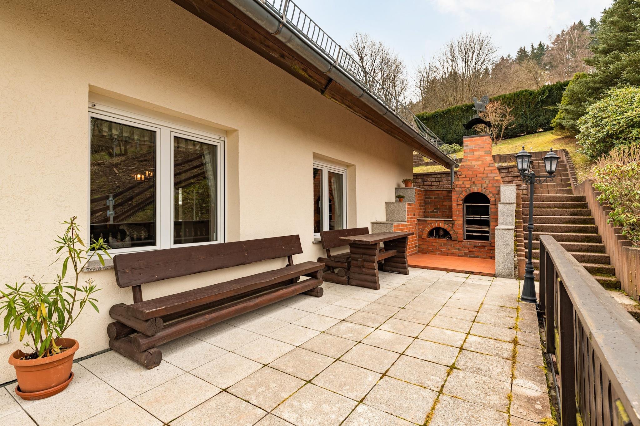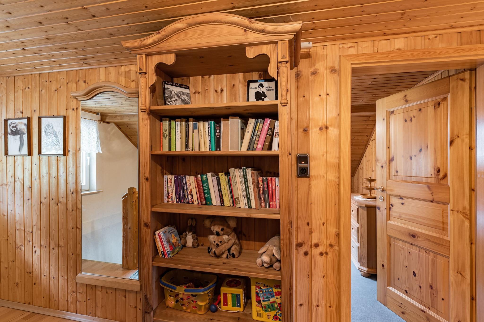 Beliggende på en fredelig sydvendt skråning tilbyder dette træferiehus en betagende panoramaudsigt over Thüringer Wald - en ideel tilflugtssted for naturelskere, vandrere og skientusiaster. Det er designet til store familier eller grupper og har et klassisk bibliotek, et wellness-område med boblebad og en rummelig have, der er perfekt til grillmad og udendørs afslapning. Parkering på stedet sikrer bekvemmelighed for alle gæster. Nærliggende attraktioner omfatter Pfanntalsteich-badesøen (17 km), Großer Beerberg-toppen (20 km) og den naturskønne Talsperre Heyda-sø, kun en times kørsel væk. Restauranter (2-4 km) og supermarkeder (3-5 km) er let tilgængelige, hvilket gør selvforplejning til en leg i det fuldt udstyrede køkken, som også inkluderer en vaskemaskine og en fold-away seng for ekstra fleksibilitet. Beliggende 70 km fra Erfurt Lufthavn, dette rolige tilflugtssted blander rustik charme med moderne komfort og tilbyder en foryngende base for at udforske Thüringens naturlige og kulturelle skatte.