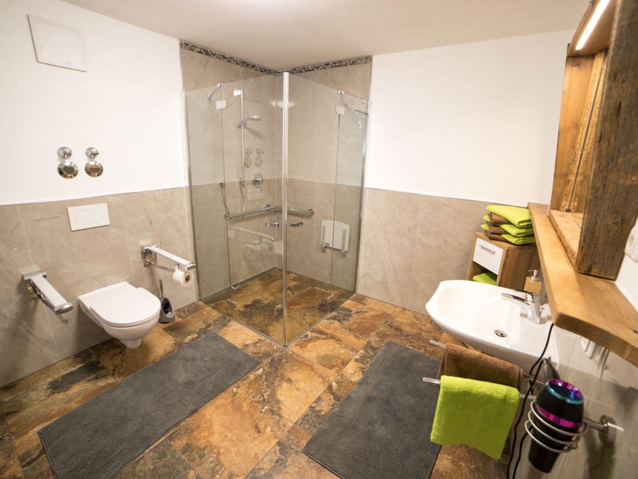 Großzügiges Appartment für bis 6 Personen ist bäuerlich exklusiv und großzügig eingerichtet. Es besteht aus einem Schlafzimmer mit TV, einem Schlafzimmer mit Wohnbereich, TV, elektrisch verstellbaren Lattenrost und begehbaren Kleiderschrank, einem großzügigen barrierefreien und behindertengerechten Bad und einer Küche mit Essbereich und Wohnraum mit Schlaf-Ausziehcouch.