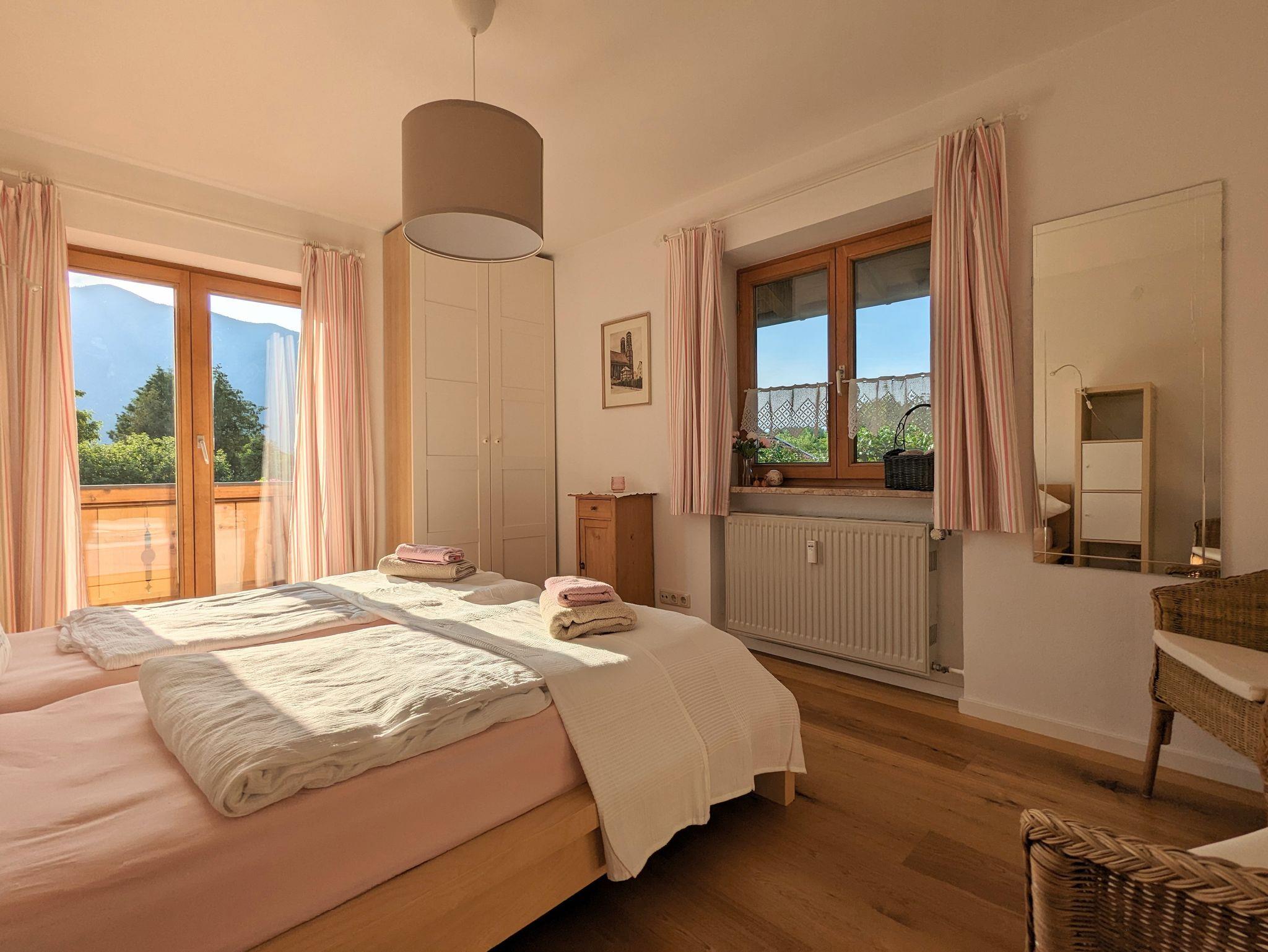 Von allen Zimmern haben Sie Zugang zu einem großen umlaufenden Süd-West-Balkon (22 qm) mit verschiedenen Sitzmöglichkeiten, Loungesofa und herrlichem Berg- und Gartenblick. Zusätzlich steht Ihnen ein eigener südseitiger Garten mit neuer Lärchenholzterrasse, Liegewiese, Gartenmöbeln, Grillmöglichkeit und Feuerschale zur Verfügung.