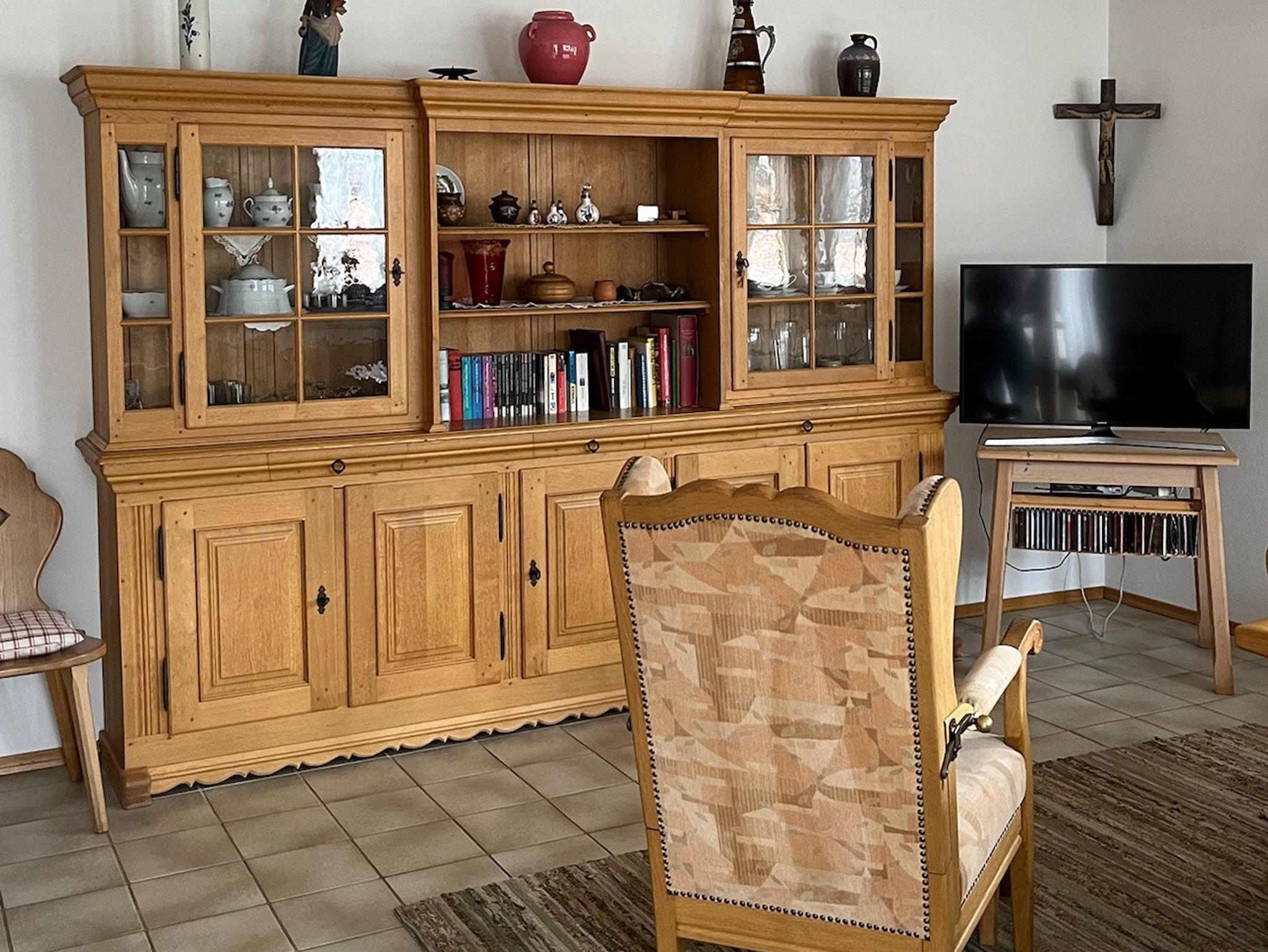 Die gemütliche Ferienwohnung ist gut ausgestattet und verfügt über ein Schlafzimmer mit Doppelbett, eine separate Küche, ein modern ausgestattetes Bad mit Dusche sowie ein großzügiges Wohnzimmer mit Bauernmöbeln, einer einladenden Eckbank, großem Tisch und Kachelofen. Der rundumlaufende Süd-/Ostbalkon lädt im Sommer zum Entspannen ein. Die Wohnung liegt im ersten Stock, und ist mit WLAN und Kabel-TV ausgestattet.