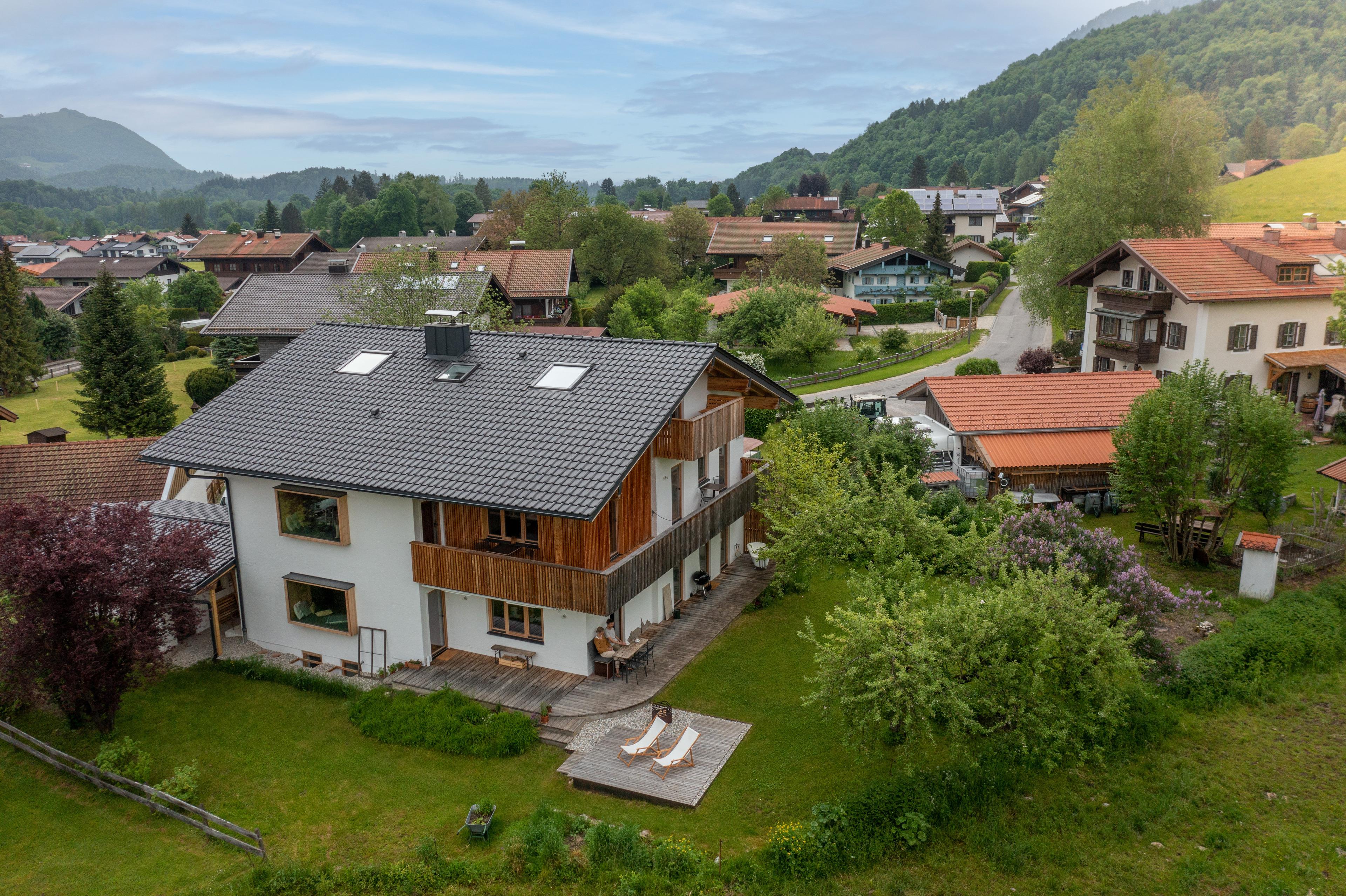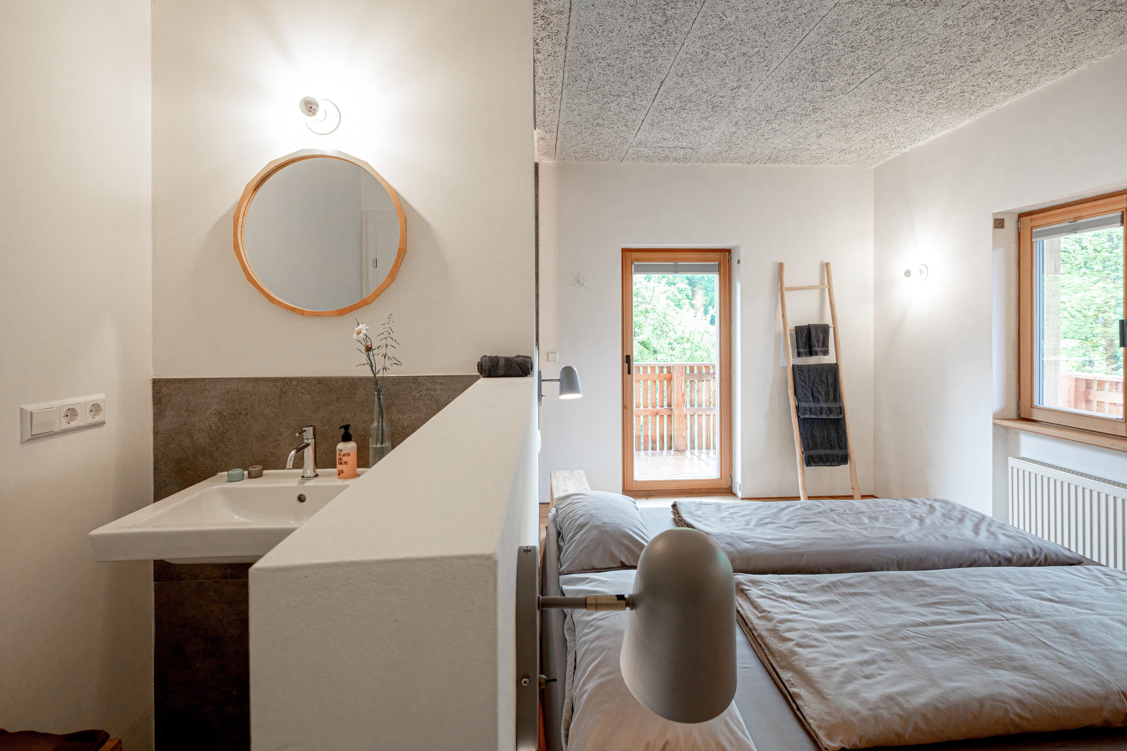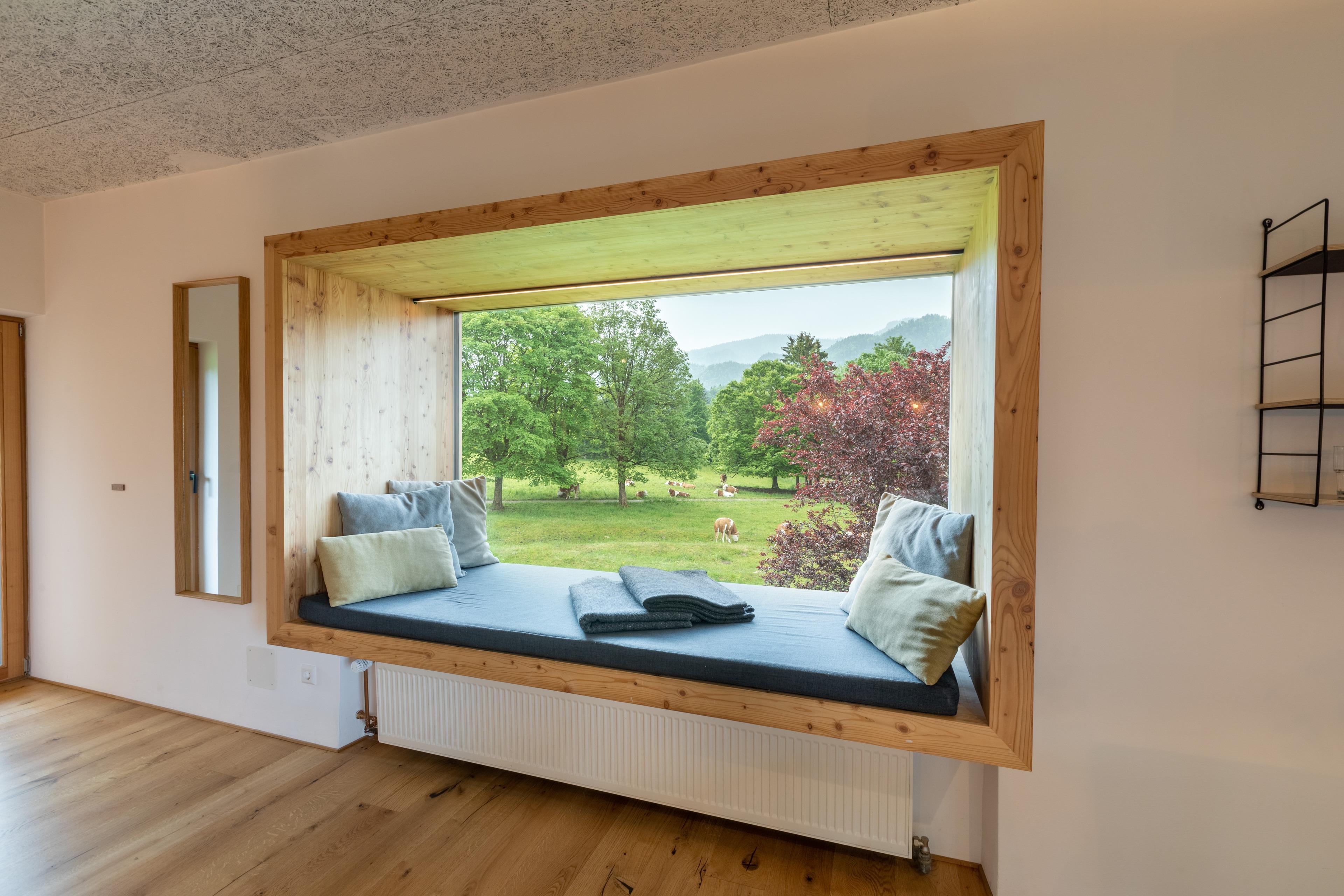 Nachhaltigkeit spielt eine zentrale Rolle: Die Wohnung wurde mit natürlichen Baustoffen saniert, beheizt wird sie mit einer Pelletheizung und Ökostrom. Die Außenanlage ist bienen- und insektenfreundlich gestaltet.