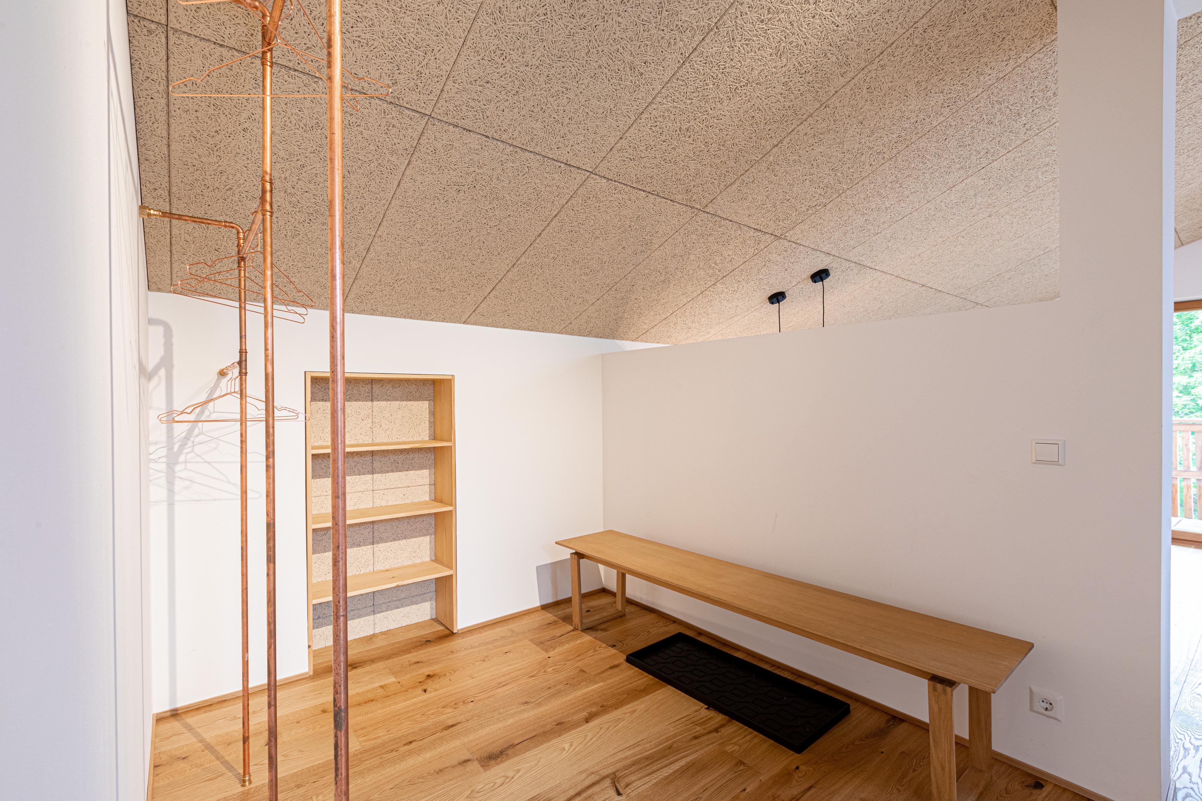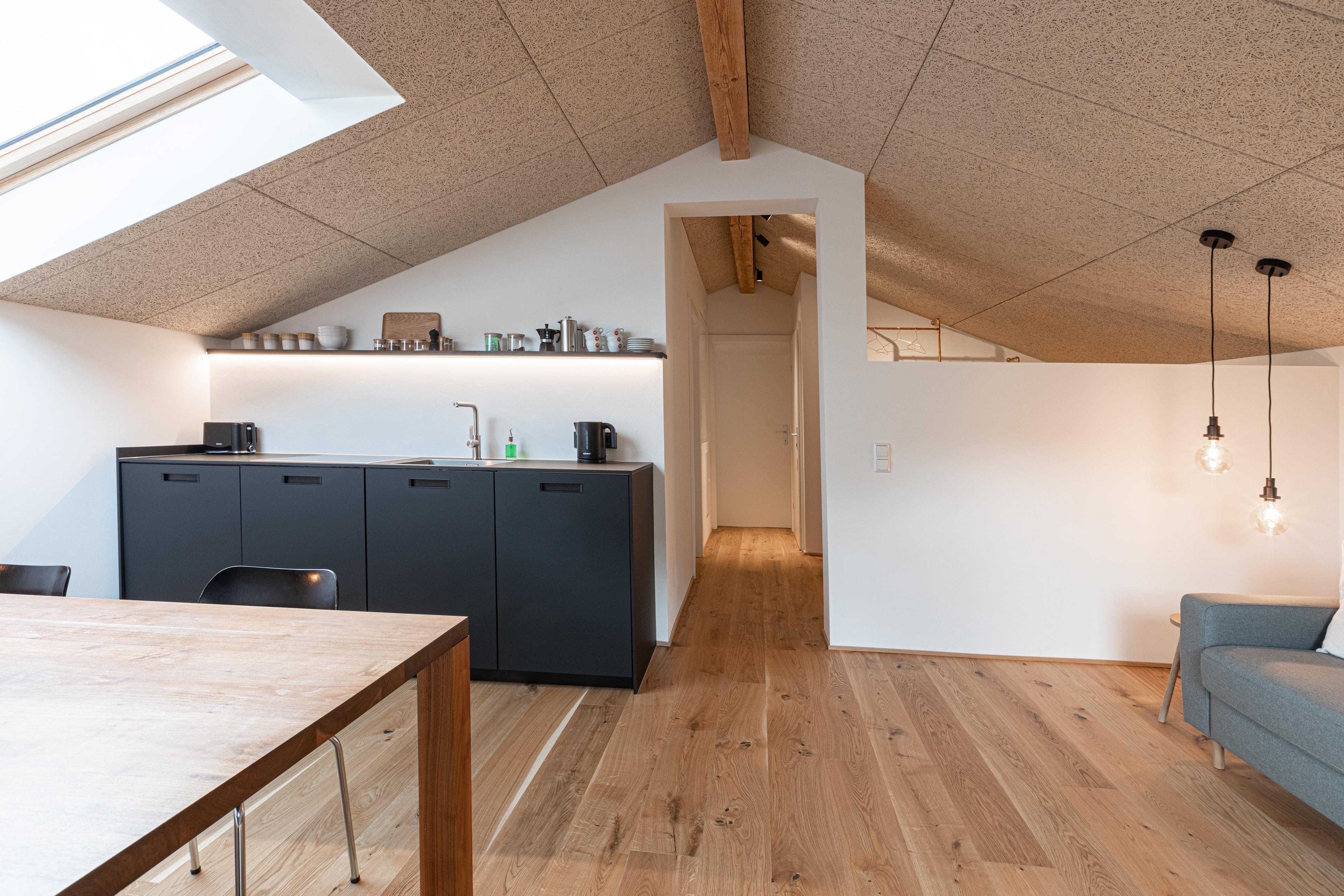 Nachhaltigkeit spielt eine zentrale Rolle: Die Wohnung wurde mit natürlichen Baustoffen saniert, nutzt Ökostrom sowie eine Pelletheizung. Die Außenanlage ist bienen- und insektenfreundlich gestaltet.