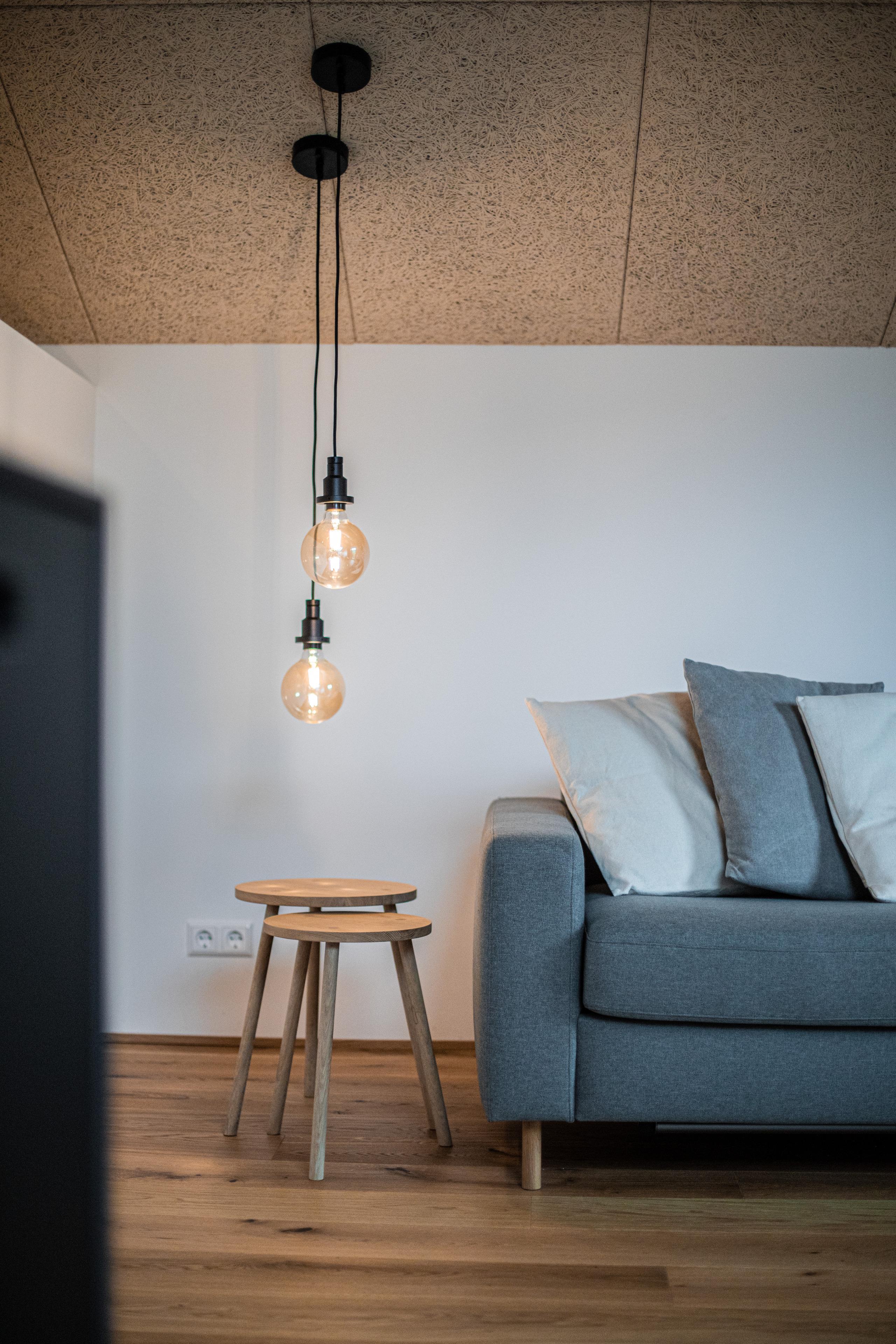 Die Wohnung "Weitblick" im 2. Obergeschoss besticht durch lichtdurchflutete Räume und einen unvergleichlichen Ausblick auf das Bergpanorama, insbesondere die Hochplatte. Auf 70 m² bietet sie Platz für bis zu vier Personen – ideal für Paare oder Familie.