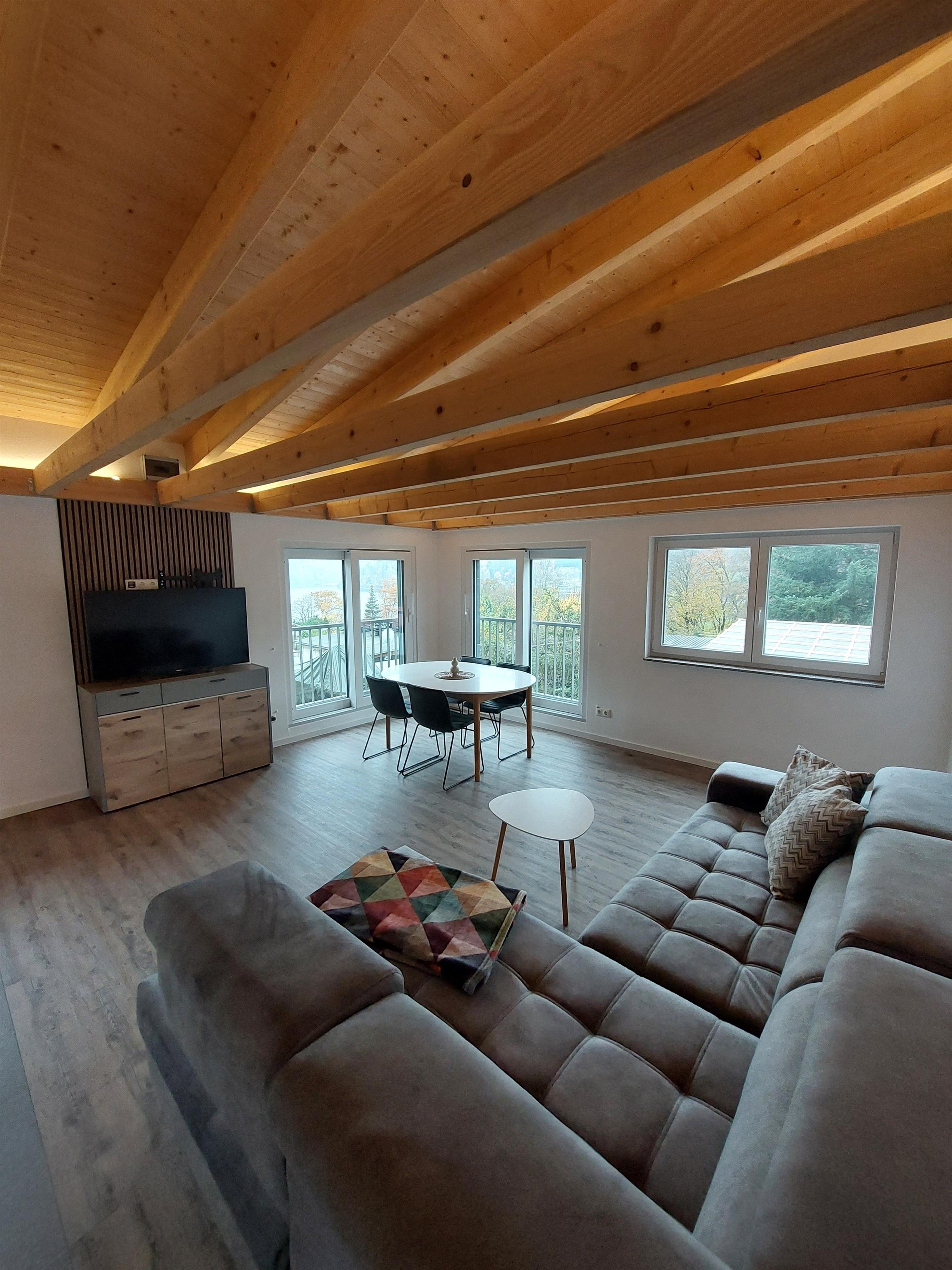 Willkommen im Saale-Panorama! Dieses moderne Ferienhaus bietet Ihnen auf 86 m² alles, was Sie für einen unvergesslichen Aufenthalt direkt am Hohenwarte-Stausee brauchen. Das Herzstück ist das offene, lichtdurchflutete Wohnzimmer mit fantastischem Panoramablick auf das Wasser.