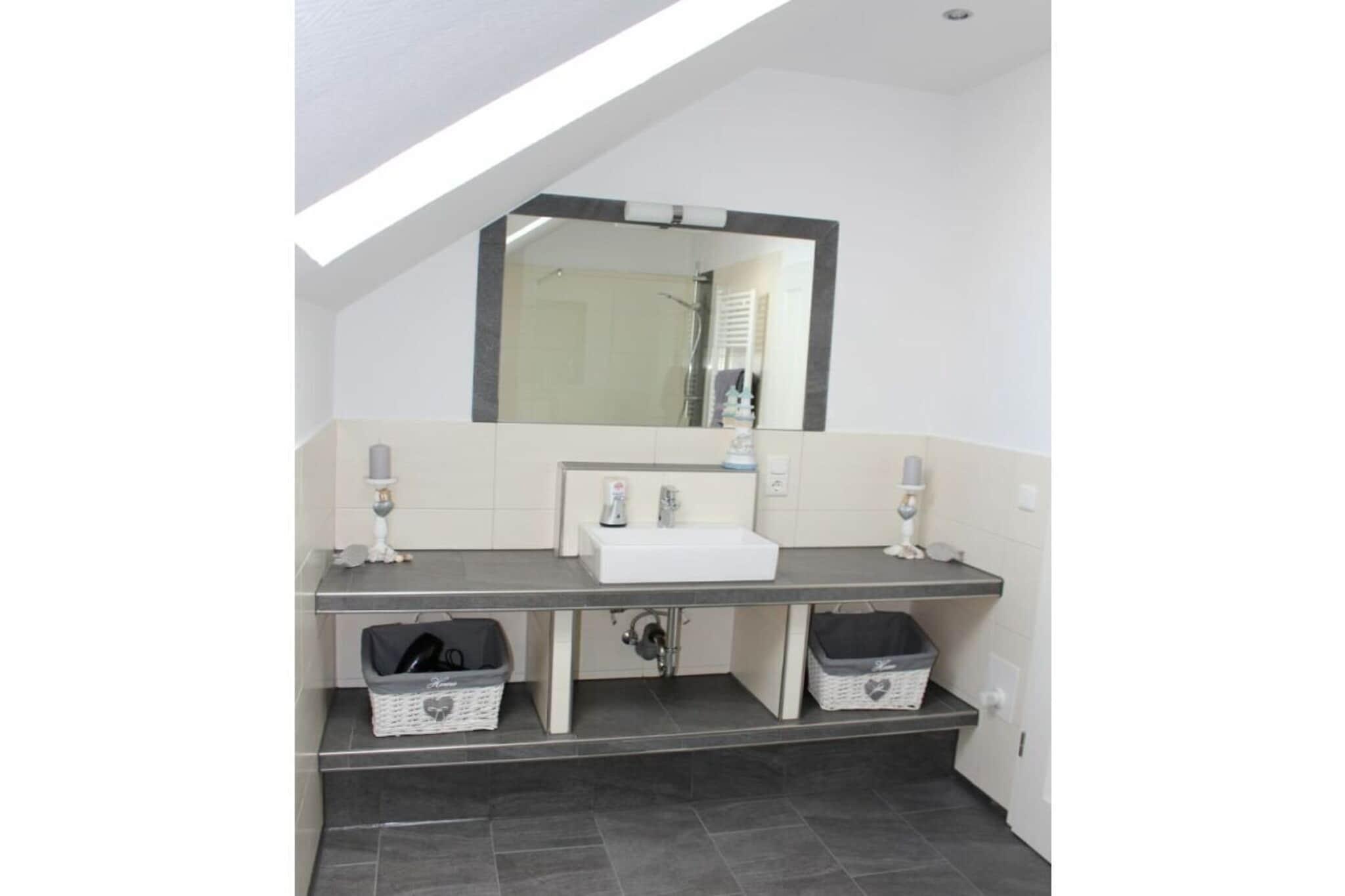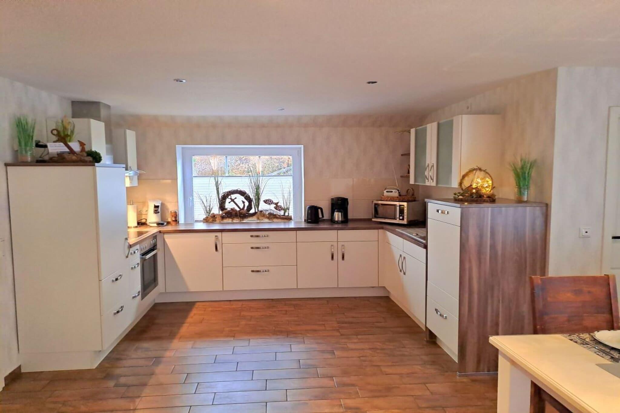 Nyd din ferie i vores kærligt renoverede landsted, Lüttje Nüst. Huset har et boligareal på cirka 120 kvadratmeter og er designet til maksimalt fire personer. I stueetagen, der er udstyret med gulvvarme, finder du et fuldt udstyret køkken med pejs, en stue, et badeværelse med bruser, et separat toilet, et bryggers med vaskemaskine og to opbevaringsrum. Ovenpå finder du et soveværelse med en dobbeltseng og et andet soveværelse med to enkeltsenge samt et badeværelse med toilet. Den smukke have med et lysthus, havemøbler og en grillplads med grill inviterer dig til at slappe af eller spille spil.