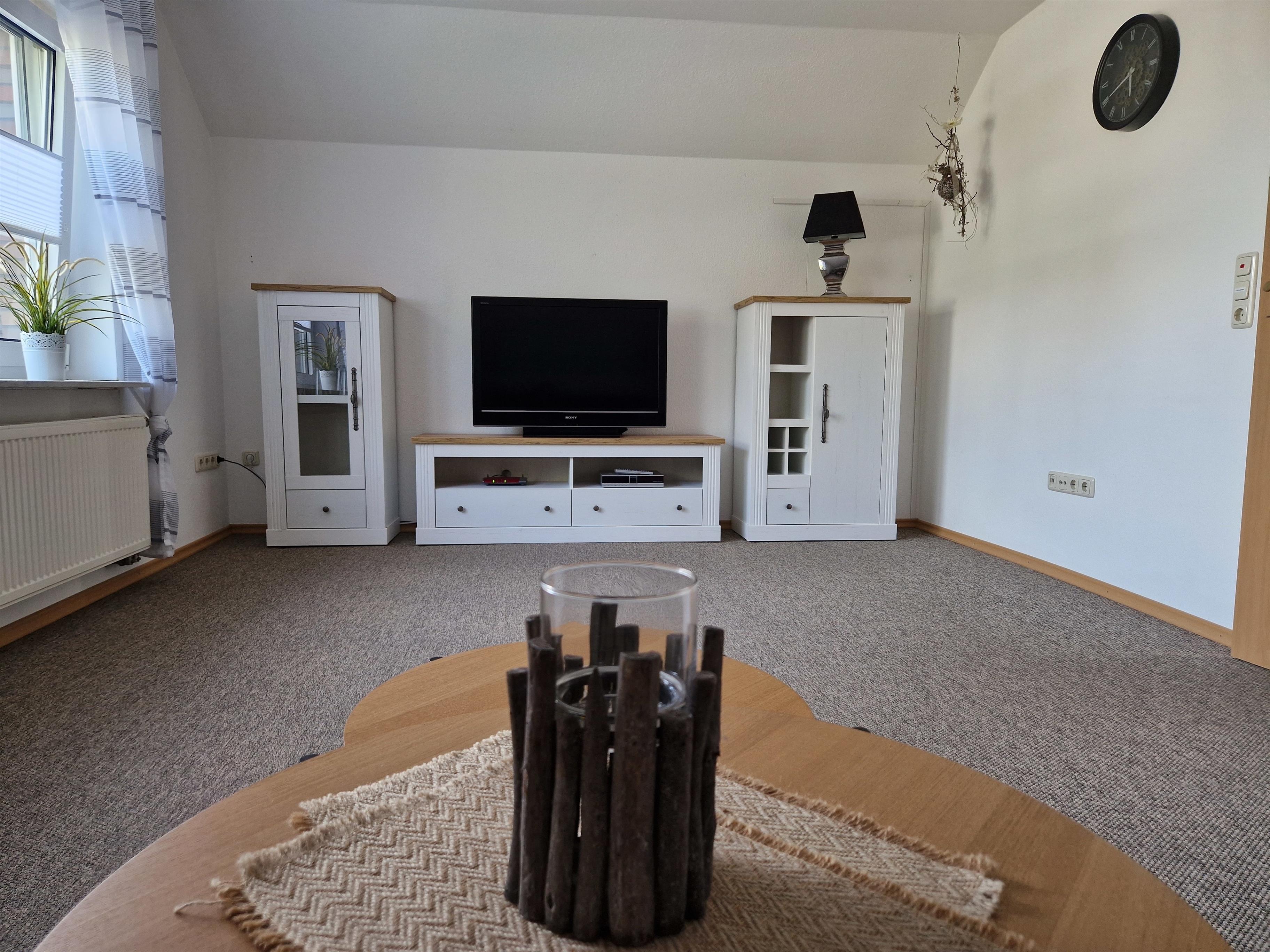 In unserer Ferienwohnung erwartet Sie außerdem eine voll ausgestattete Küche mit Backofen, Kühlschrank, Ceran-Kochfeld und gemütlicher Essecke. Im Wohnzimmer läd die Couchgarnitur mit Couchtisch zum gemütlichen Verweilen ein und verschiedene indirekte Lichtquellen sorgen für behagliche Stimmung. Ein TV Flatscreen ist ebenso vorhanden, wie ein Wohnzimmerschrank. Die Fenster der Ferienwohnung Renken sind größtenteils mit Fliegengittern und Jalousien, bzw. Verdunklungsrollos versehen und sorgen so für noch mehr Komfort. Dank vieler Ablageflächen, einer gut sortierten Gläserauswahl und liebevoll ausgewählter Dekorationen fühlen Sie sich schnell wie zu Hause. Einem angenehmen Aufenthalt steht nun nichts mehr im Wege.