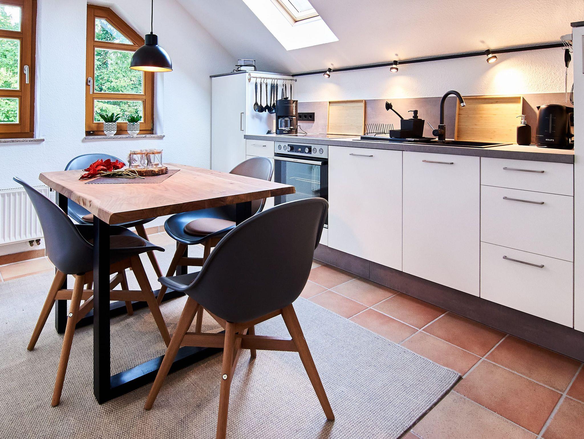 Die Wohnung liegt im 1. Obergeschoss und hat einen separaten Eingang, der durch eine außenliegende Wendeltreppe zu erreichen ist. Vom Flur erreichen Sie die vollausgestattete Küche, das Wohnzimmer mit Smart-TV, das Schlafzimmer mit Doppelbett und einem Schlafplatz im Hochbett sowie das geräumige Badezimmer mit ebenerdiger Dusche. Eine Kinderbett kann auf Anfrage kostenlos angefragt werden. Im Außenbereich steht Ihnen eine Sitzgelegenheit für lauschige Sommerabende.
