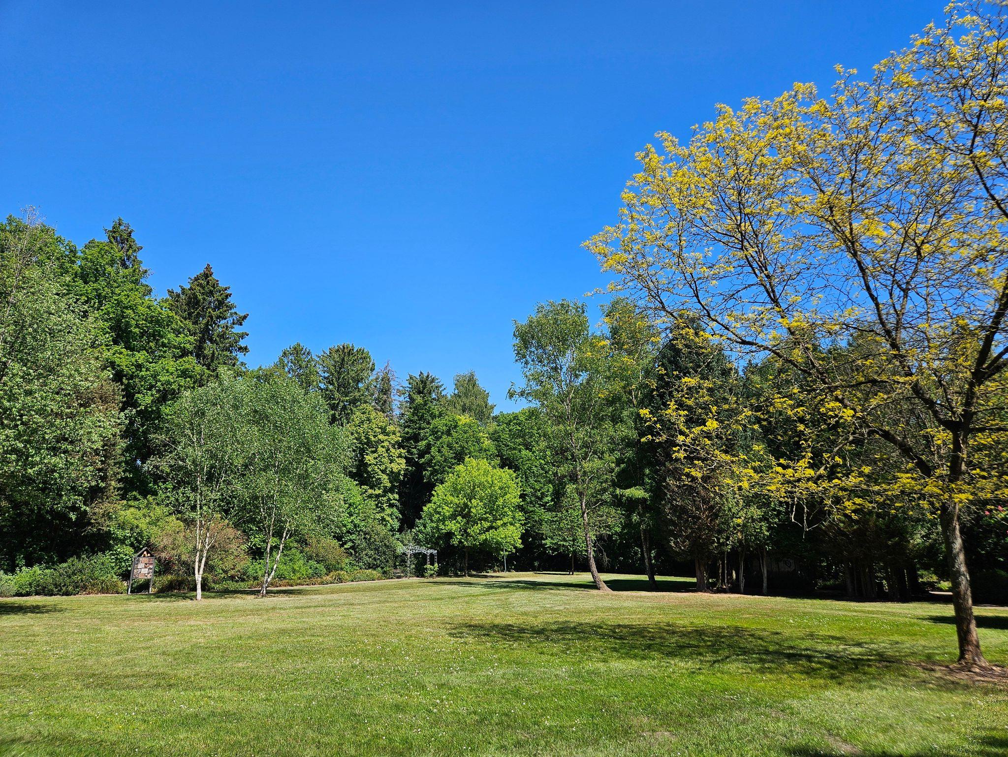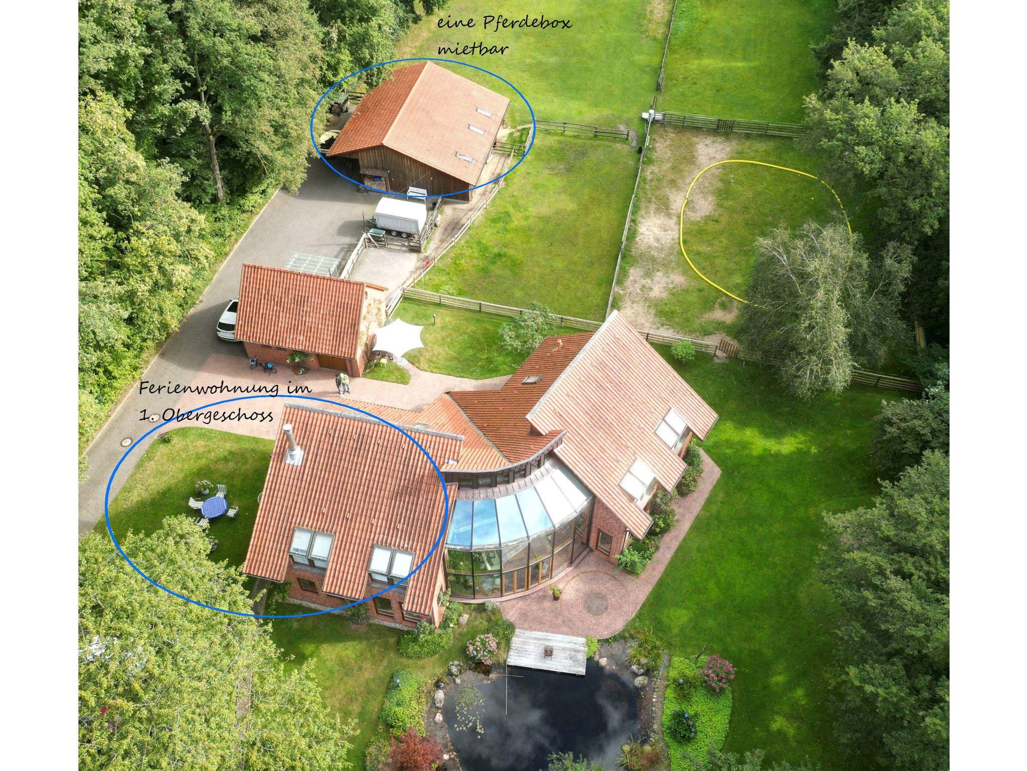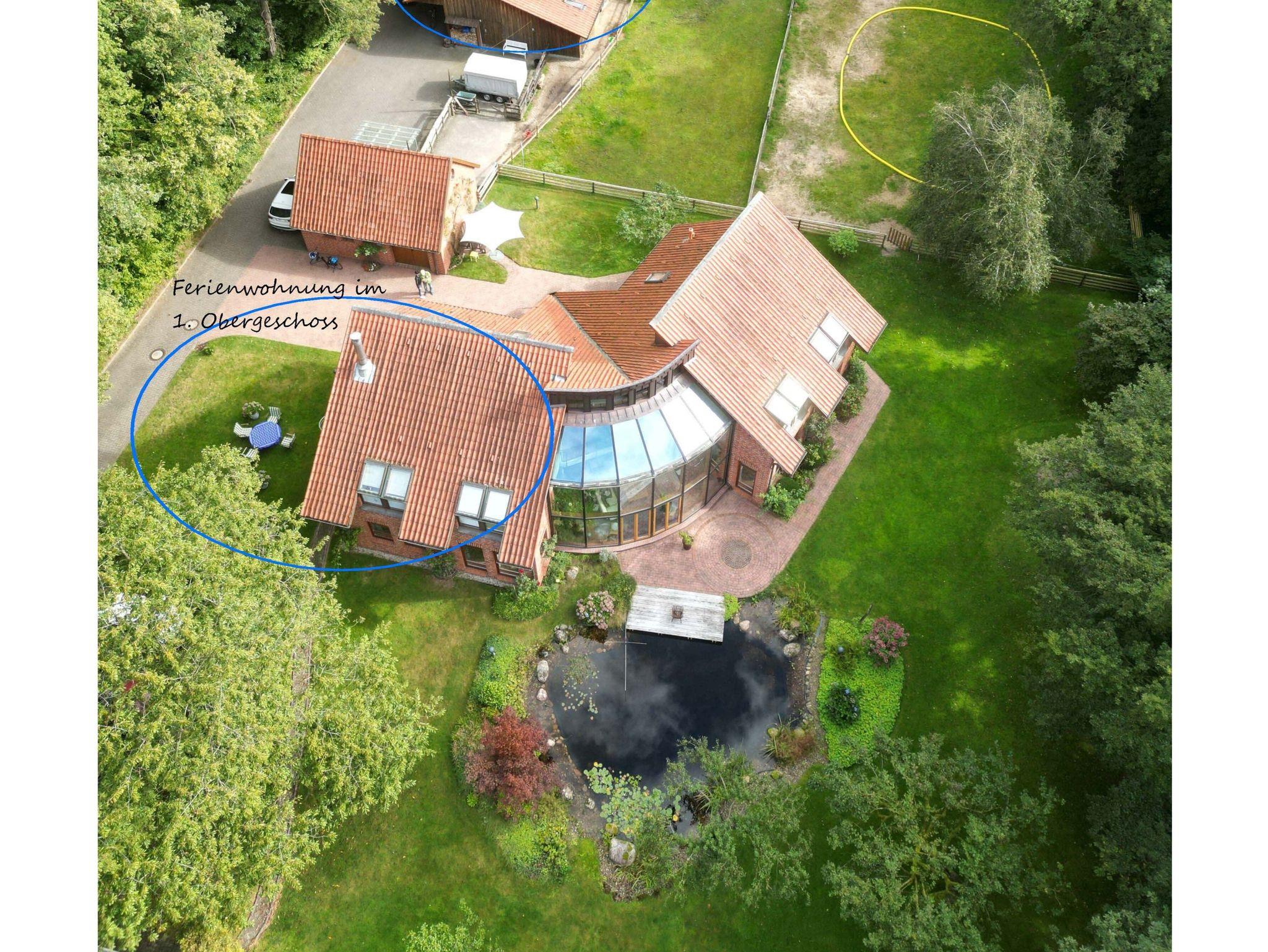 Die Ferienwohnung liegt auf einem parkähnlichen Grundstück im 1.Obergeschoss eines Wohnhauses mit vorgelagertem eigenen Zugang mit zugeordneter Grünfläche mit Sitzplatz.