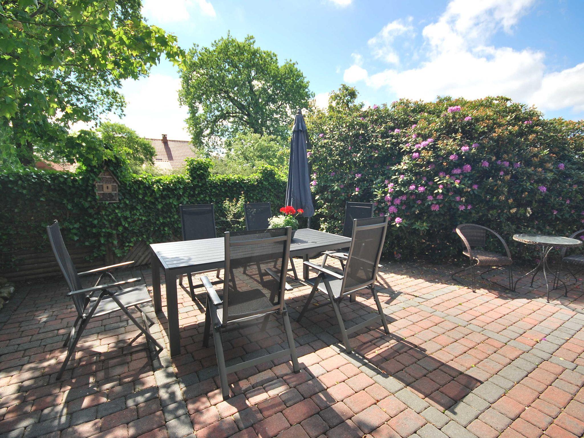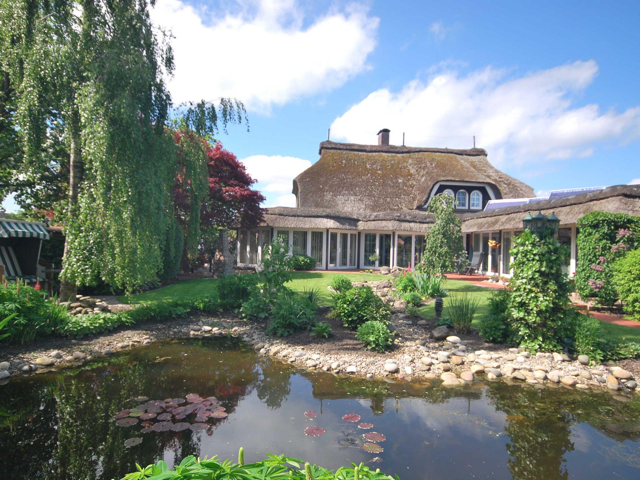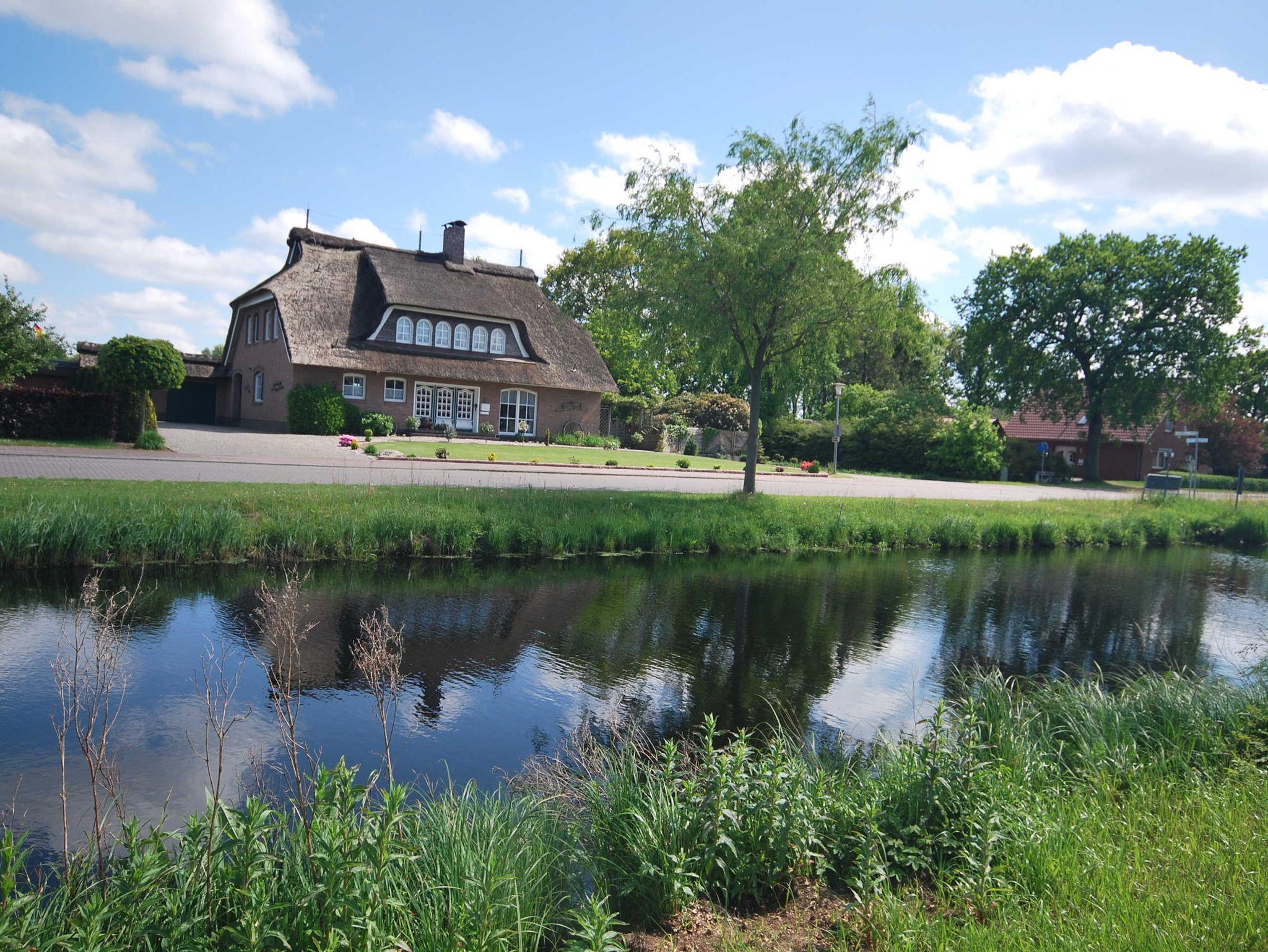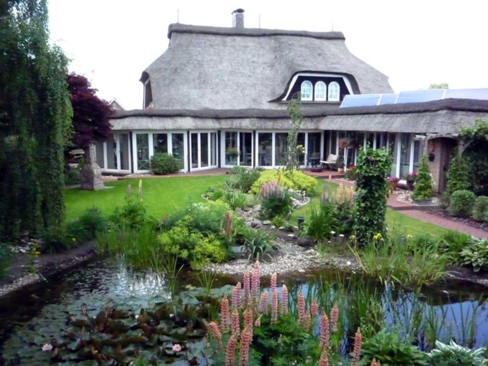 Im Garten finden Sie zur Mitbenutzung zwei Grillplätze,Terrassen und Sitznieschen.Eine idylische kleine Teichanlage mit Bachlauf runden das Gesamtbild ab. Auch die Kinder kommen hier nicht zu kurz: Ihnen steht eine Kinderrutsche, eine Schaukel, Tischtennis, Tischfußball und vieles weitere zur Verfügung. Auch für Angler ist unsere Ferienwohnung bestens geeignet. Angelrouten können gerne kostenlos bereit gestellt werden. Ideal an der Deutschen Fehnroute gelegen und Radfahrer können sich hier richtig austoben.