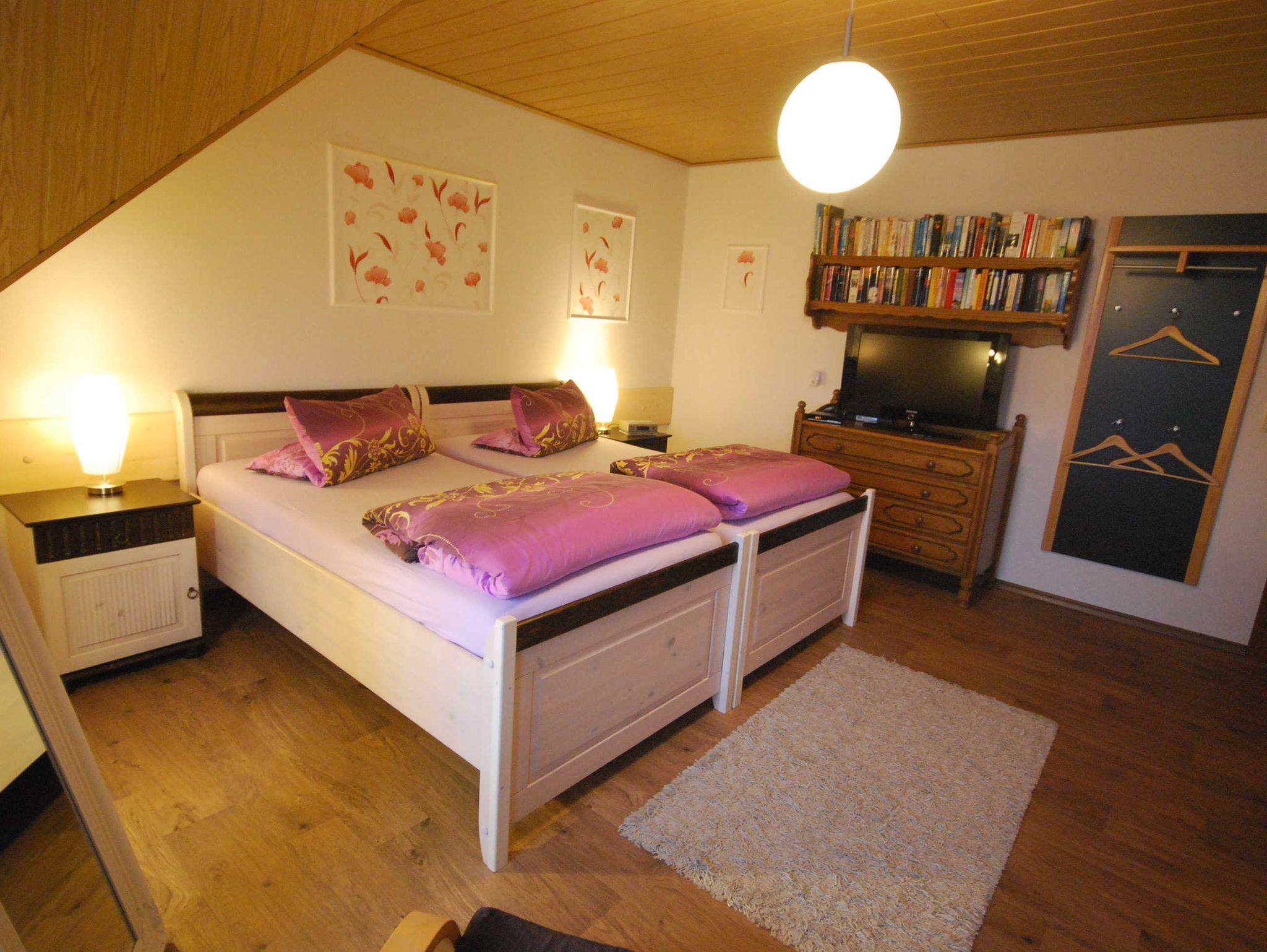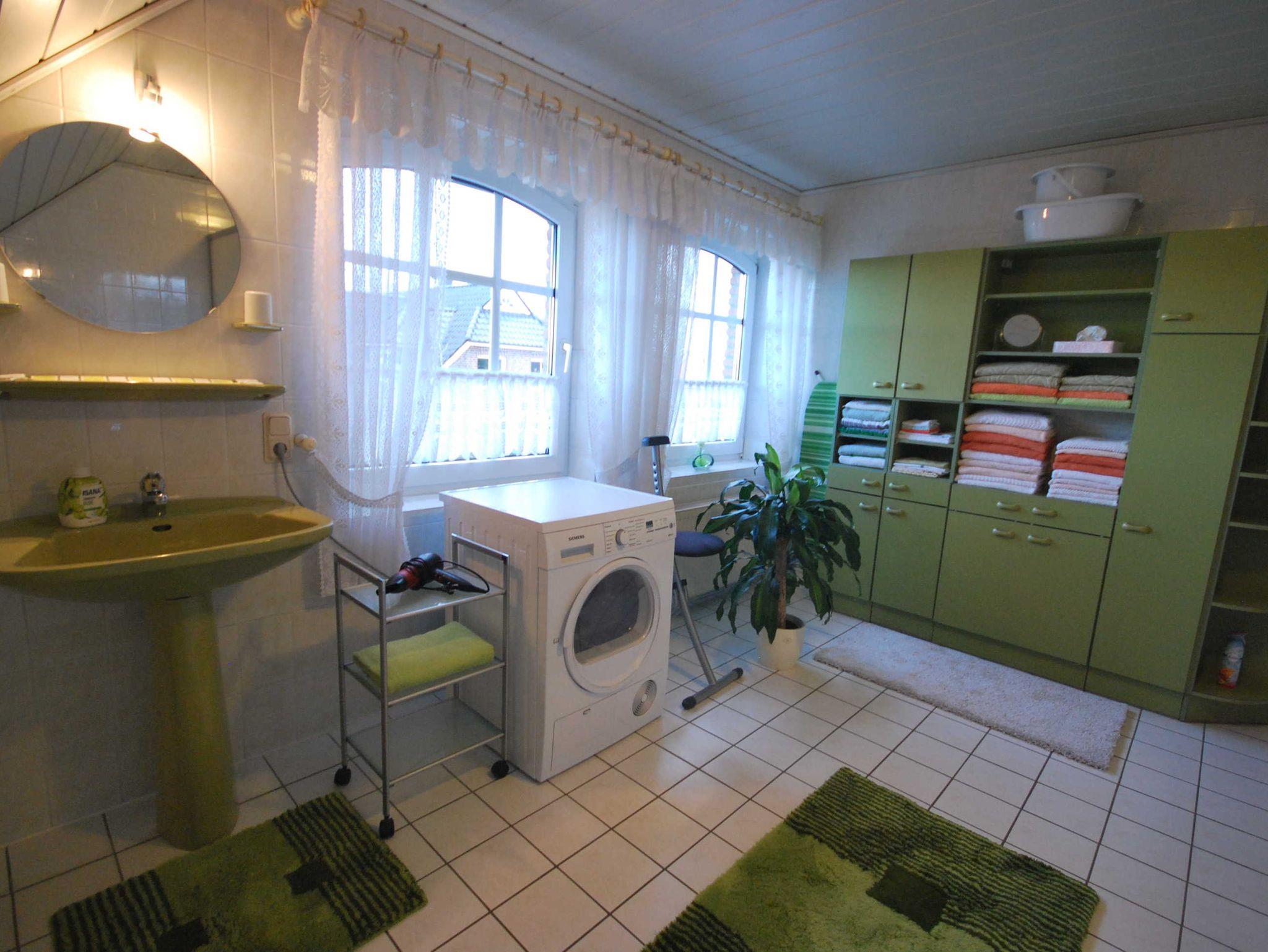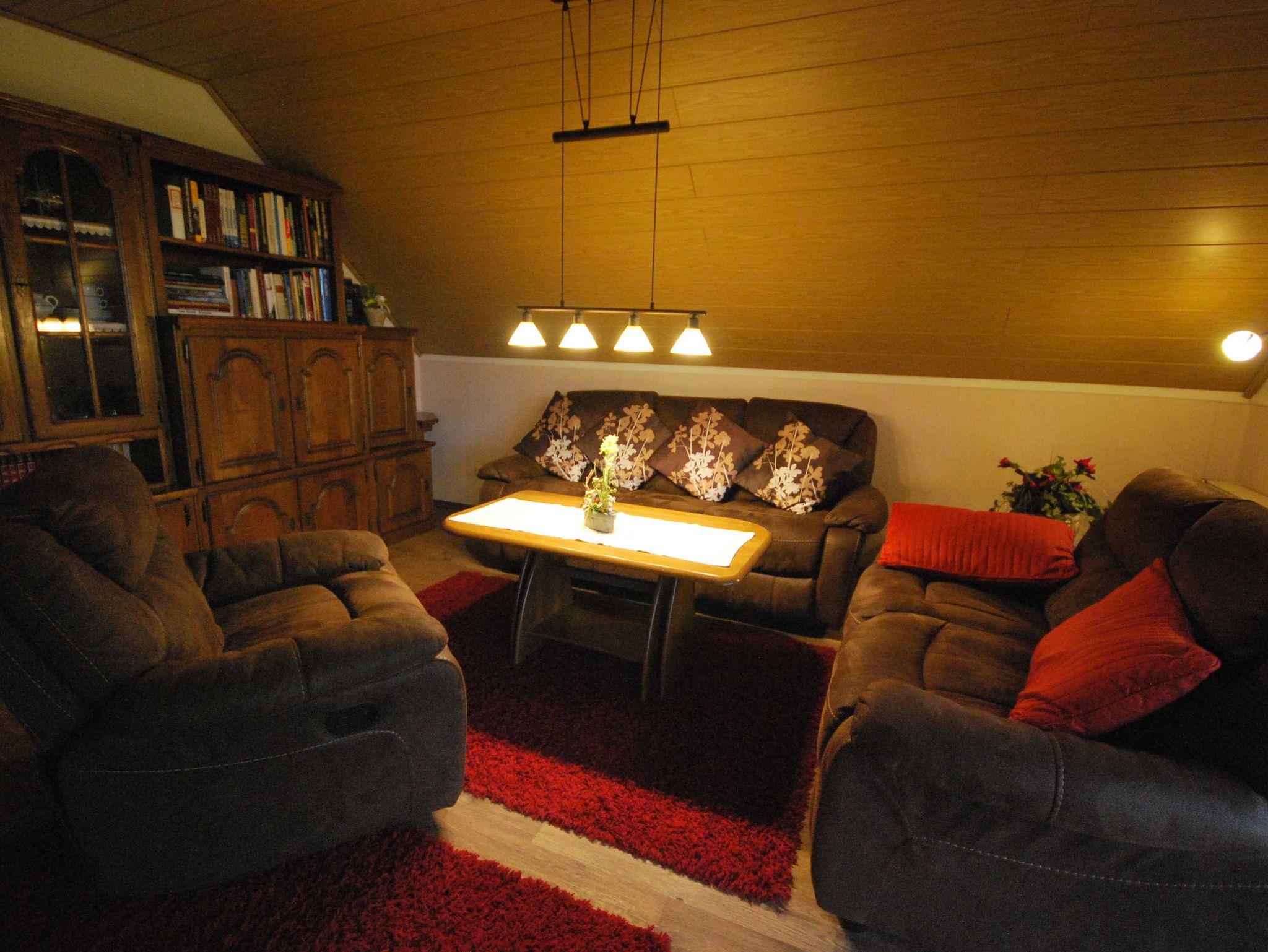 Sie verfügen über ein großes Wohnzimmer mit Schreibtisch und Sat-TV. Von hier aus kommen Sie auf den bedachten Balkon und können hier die Natur genießen. Zwei Schlafzimmer mit jeweils einem Doppelbett (ein Schlafzimmer zusätzlich mit Kinderbett und zweiten Flachbildfernseher), sowie eine komplett eingerichtete Küche gehören ebenfalls zur Ferienwohnung. Zum großzügigen Badezimmer gehört eine Badewanne, eine Dusche, ein WC sowie eine Waschmaschine und einen Trockner. Zusätzlich gibt es ein separates WC.