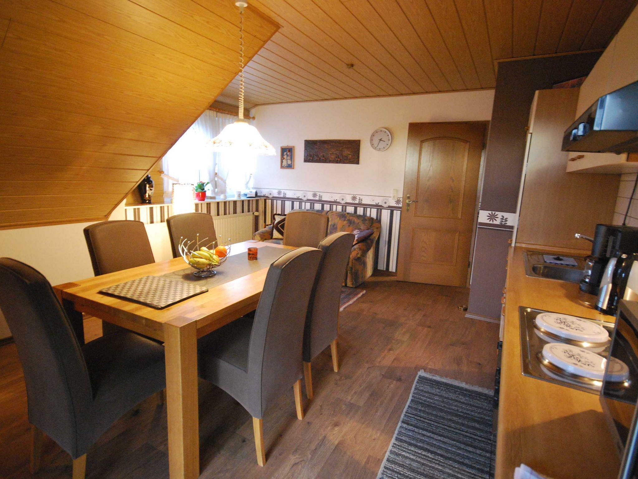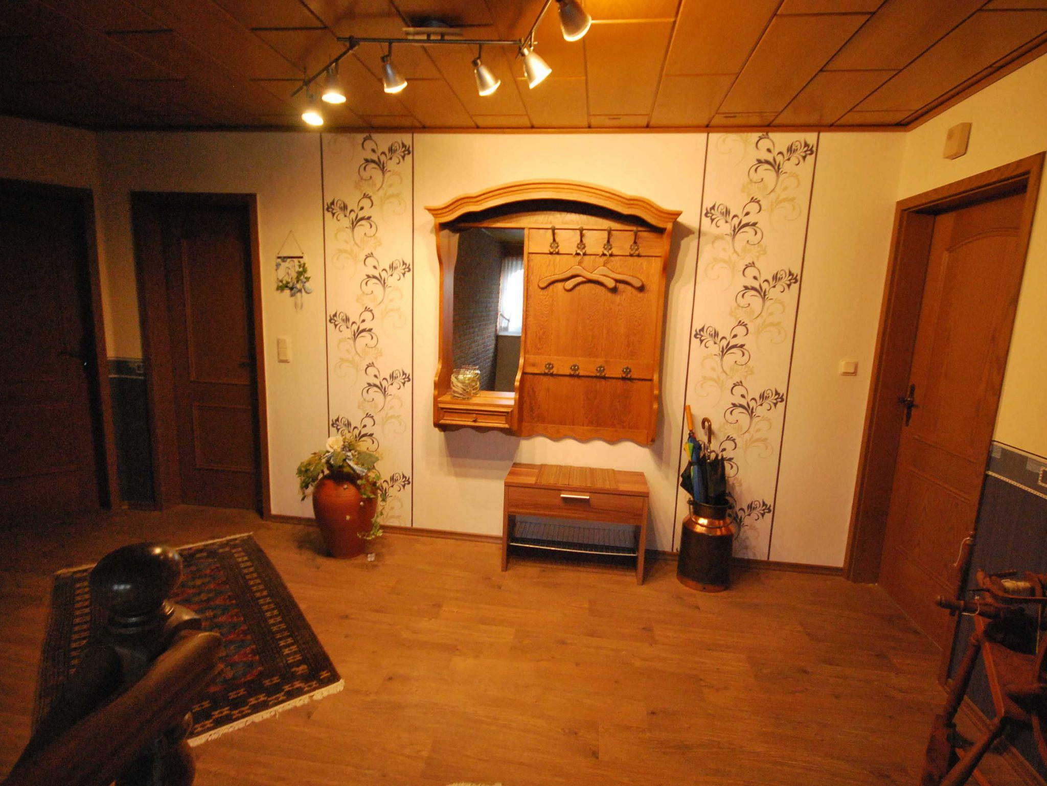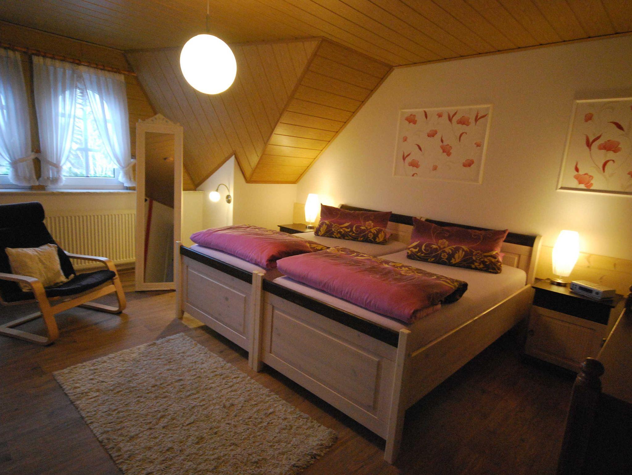 Sie verfügen über ein großes Wohnzimmer mit Schreibtisch und Sat-TV. Von hier aus kommen Sie auf den bedachten Balkon und können hier die Natur genießen. Zwei Schlafzimmer mit jeweils einem Doppelbett (ein Schlafzimmer zusätzlich mit Kinderbett und zweiten Flachbildfernseher), sowie eine komplett eingerichtete Küche gehören ebenfalls zur Ferienwohnung. Zum großzügigen Badezimmer gehört eine Badewanne, eine Dusche, ein WC sowie eine Waschmaschine und einen Trockner. Zusätzlich gibt es ein separates WC.