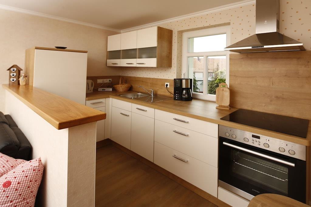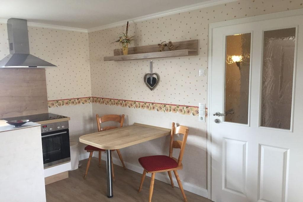 Da vi planlagde og byggede den nye ferielejlighed, Bauernstube, lagde vi stor vægt på en harmonisk, landlig indretning. Komfort var også vigtigt for os. Vi ønsker, at vores gæster skal føle sig hjemme – i deres midlertidige hjem. Her finder to til tre personer en lille, men perfekt udformet, hyggelig indkvartering, der fungerer som den perfekte base for en aktiv ferie med vandreture, cykling, svømning, ridning og meget mere, samt for udflugter i det omkringliggende område. Du vil bemærke, at vi altid er optaget af dit velbefindende. Ved siden af ligger feriehuset Bauernhäuschen og landhotel Zur Grünen Kutte, der tilbyder fremragende regional mad og en bred vifte af tjenester, såsom brødlevering om morgenen, sauna på hotellet og meget mere.