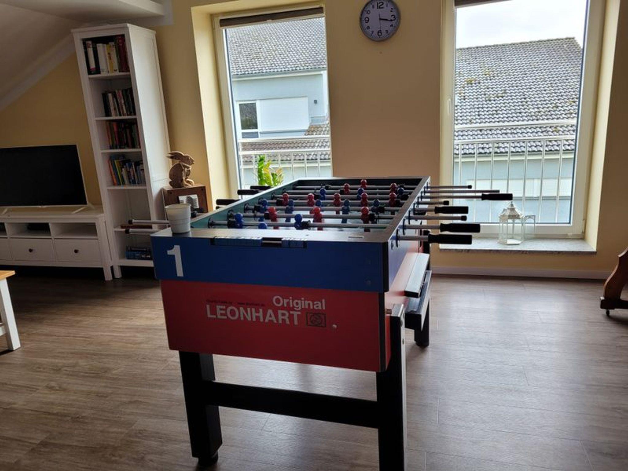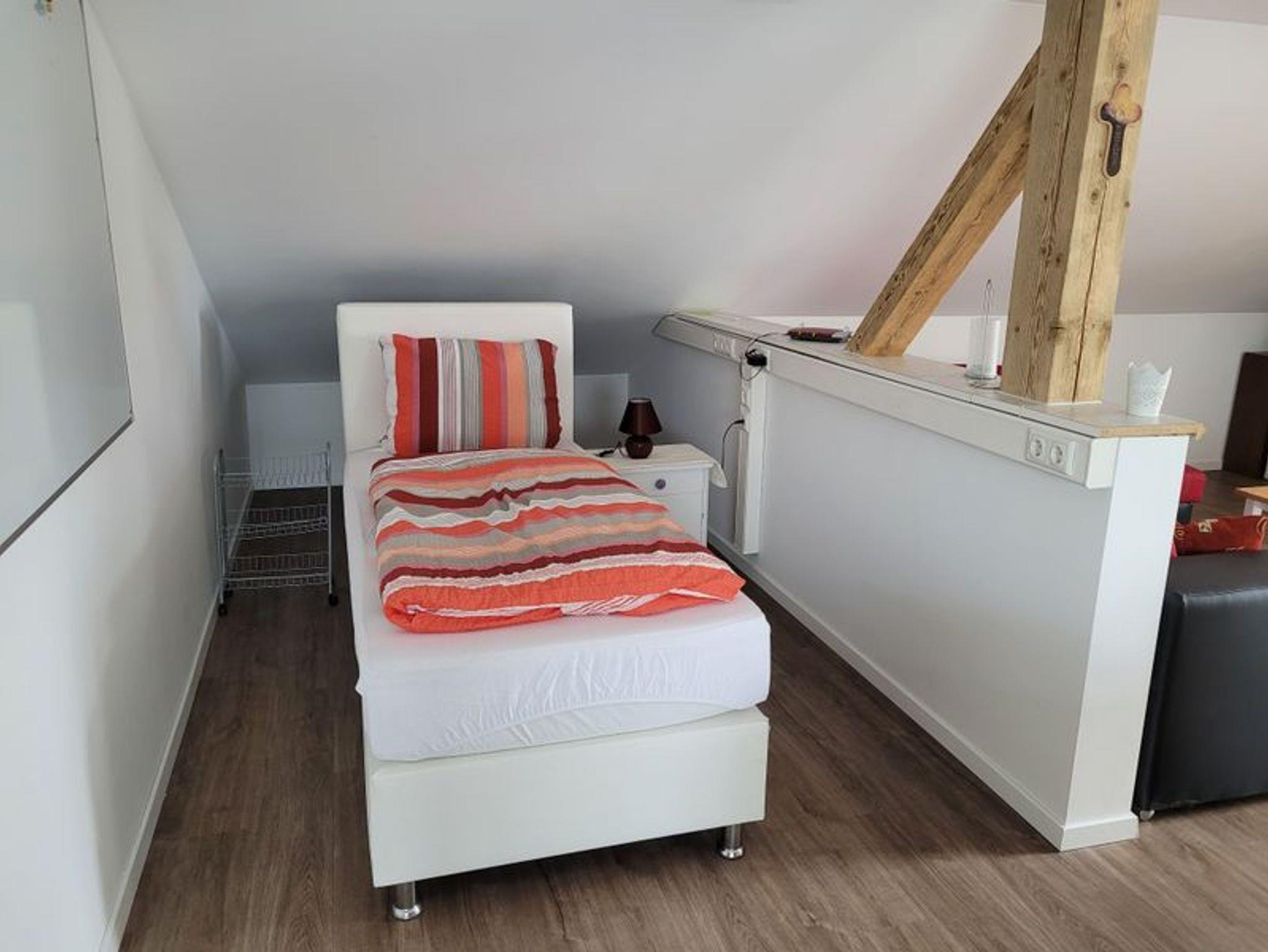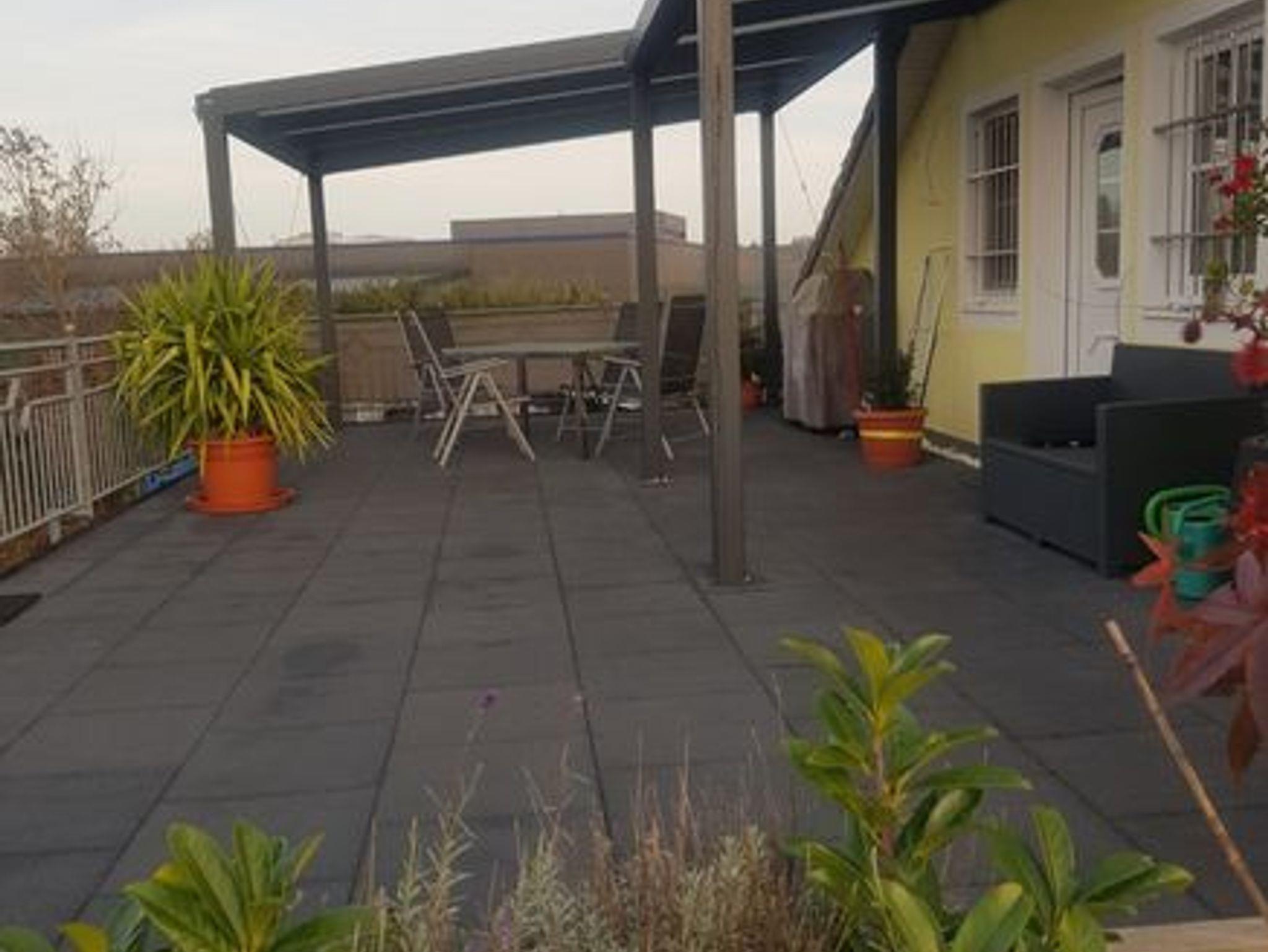 Wir vermieten eine schöne ca. 85 qm große Ferienwohnung mit einer ca. 60 qm großen Dachterrasse zur Eigennutzung. Durch die 5 separaten Schlafmöglichkeiten ist sie auch bestens für Monteure geeignet. Die moderne Wohnung ist ausgestattet mit einer großen komfortablen Einbauküche, incl. Geschirrspüler sowie einer Mikrowelle und Kaffeemaschine. Es ist ein großzügiges neues Bad mit Dusche vorhanden. Das Schlafzimmer ist mit 2 Einzelbetten ausgestattet sowie einer großen Ankleide. Im großen offenen Wohnraum befinden sich 3 weitere Einzelbetten, eine gemütliche Wohnecke mit TV sowie eine große Sitzecke. Außerdem befindet sich in der Wohnung ein großer Kickertisch. Handtücher, Bettwäsche, ein Parkplatz sowie WLAN werden kostenfrei zur Verfügung gestellt.
