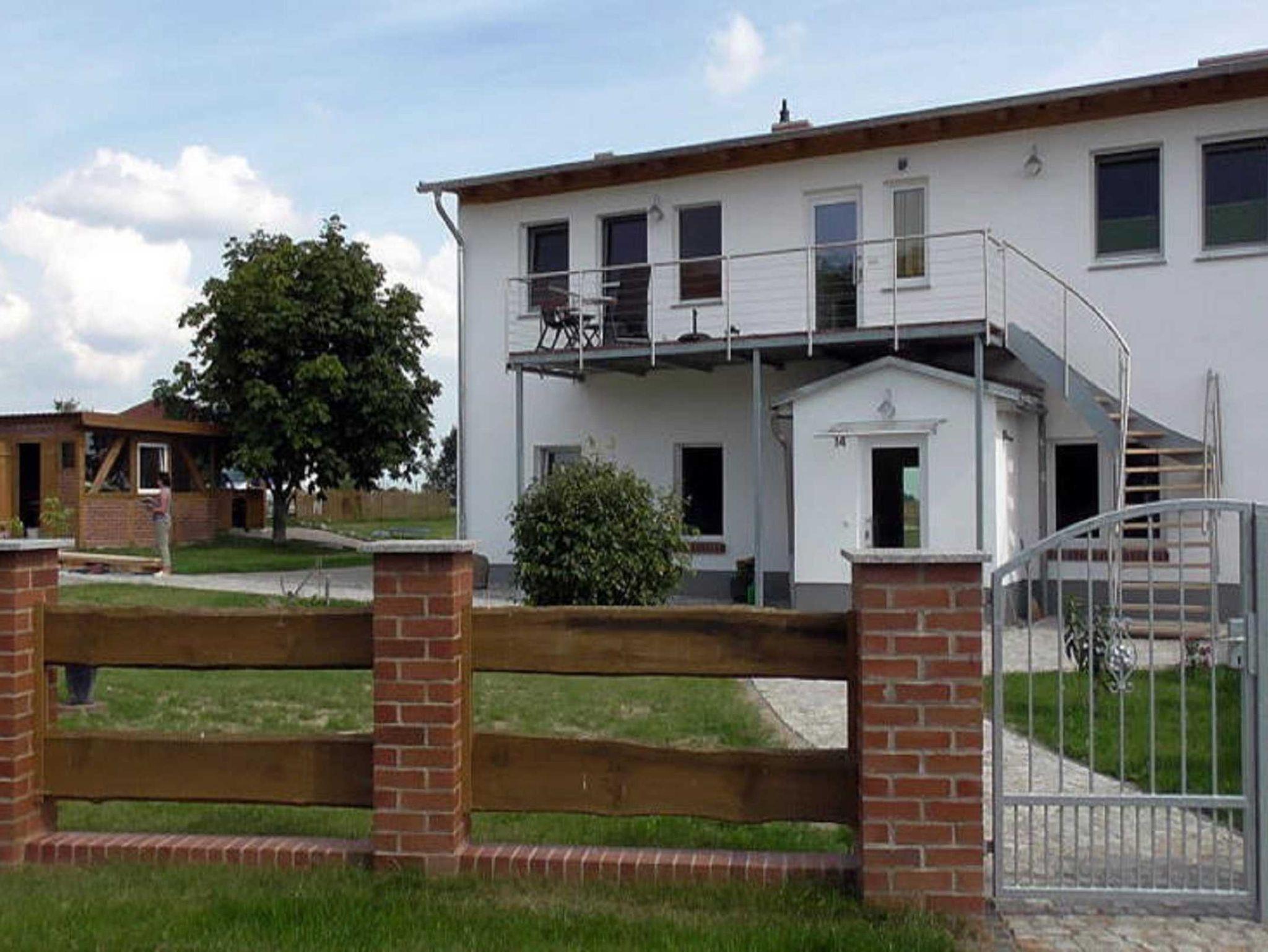 Die Ferienwohnung befindet sich im 1. Obergeschoss (rechts) des Hauses und ist über eine Außentreppe erreichbar. Genießen Sie vom Balkon aus einen herrlichen Ausblick über das Haff. Sonnige Stunden können Sie hier von vormittags bis mittags genießen.