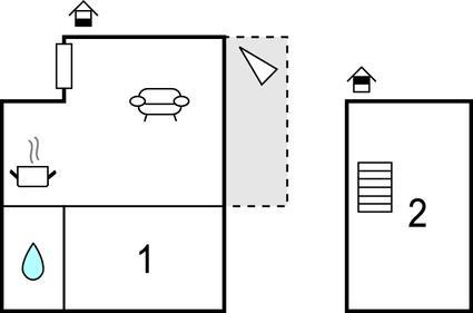 Stuen med minikøkken har dør ud til terrassen og den lille have. Herfra kan I hoppe lige i vandet og køle af på hede dage. Det første soveværelse ligger i stueplan og er indrettet med dobbeltseng (190x180 cm). På første sal med skråvægge ligger det andet soveværelse med to enkeltsenge (190x90 cm) med adgang af en stejl trappe. Både ejer og flere udlejningsboliger ligger også på grunden, hvor ejers venlige labrador tager imod jer. Til børnene er der en fælles legeplads med gynge og legehus.