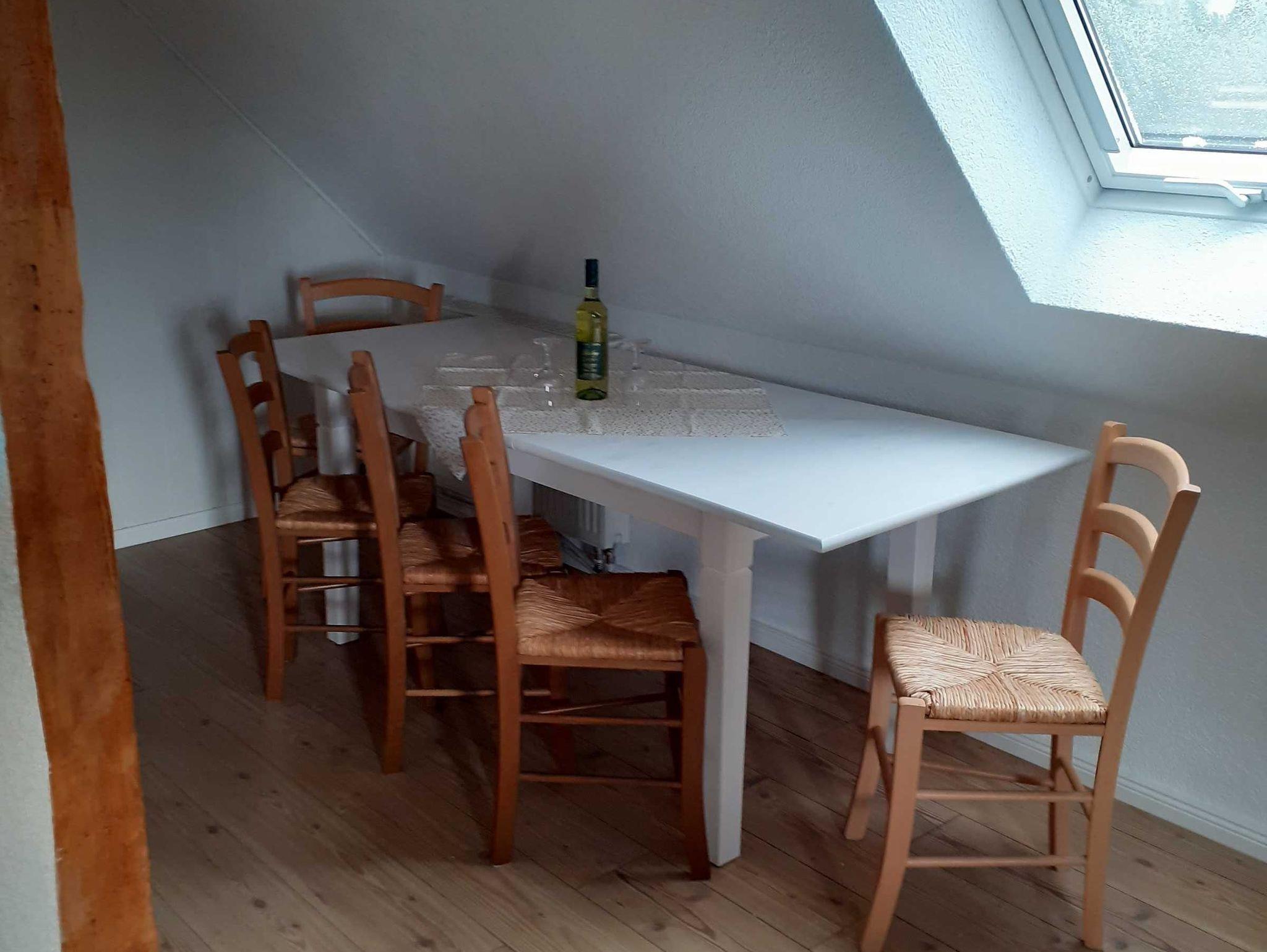 Die Fewo 1 (WZ, SZ, Kü, Bad, Kinderzimmer) befindet sich im Dachgeschoss unserer alten Schule. Das Auto kann direkt am Haus geparkt werden, eine gemütliche Sitzecke befindet sich im Hof. Fewo 2 (komb. WZ/SZ, Kü, Bad) liegt im Obergeschoss unseres Nebengebäudes, erreichbar über eine Wendeltreppe. Nächste Einkaufsmöglichkeiten finden Sie in der Stadt Usedom (4 km). Die Ostsee ist 22 km entfernt, aber auch in unserem Dörfchen gibt es schöne Badegelegenheiten und super Möglichkeiten für Radfahrer (Fahrradverleih möglich). Kinderbett und -stuhl sind vorhanden.