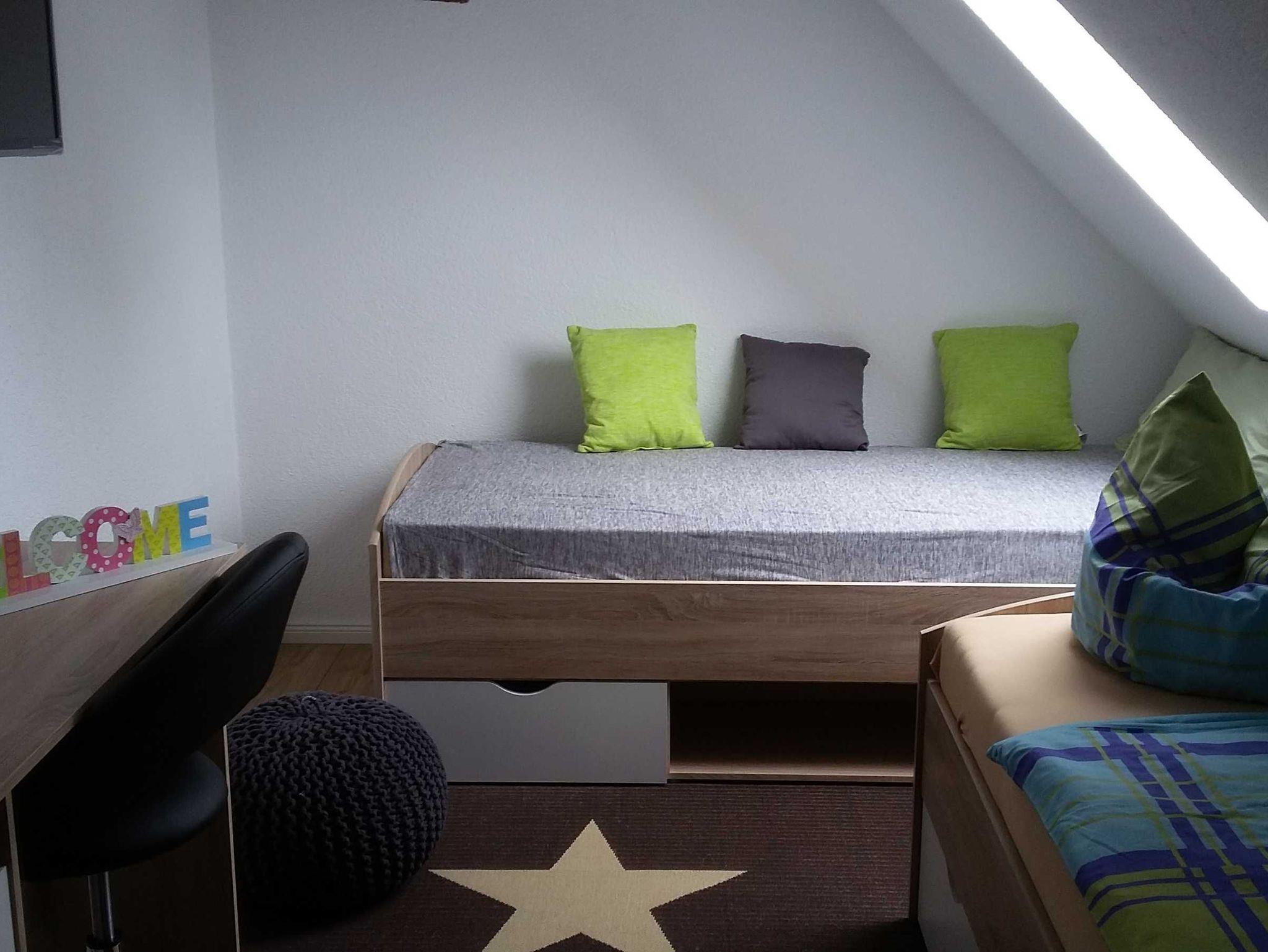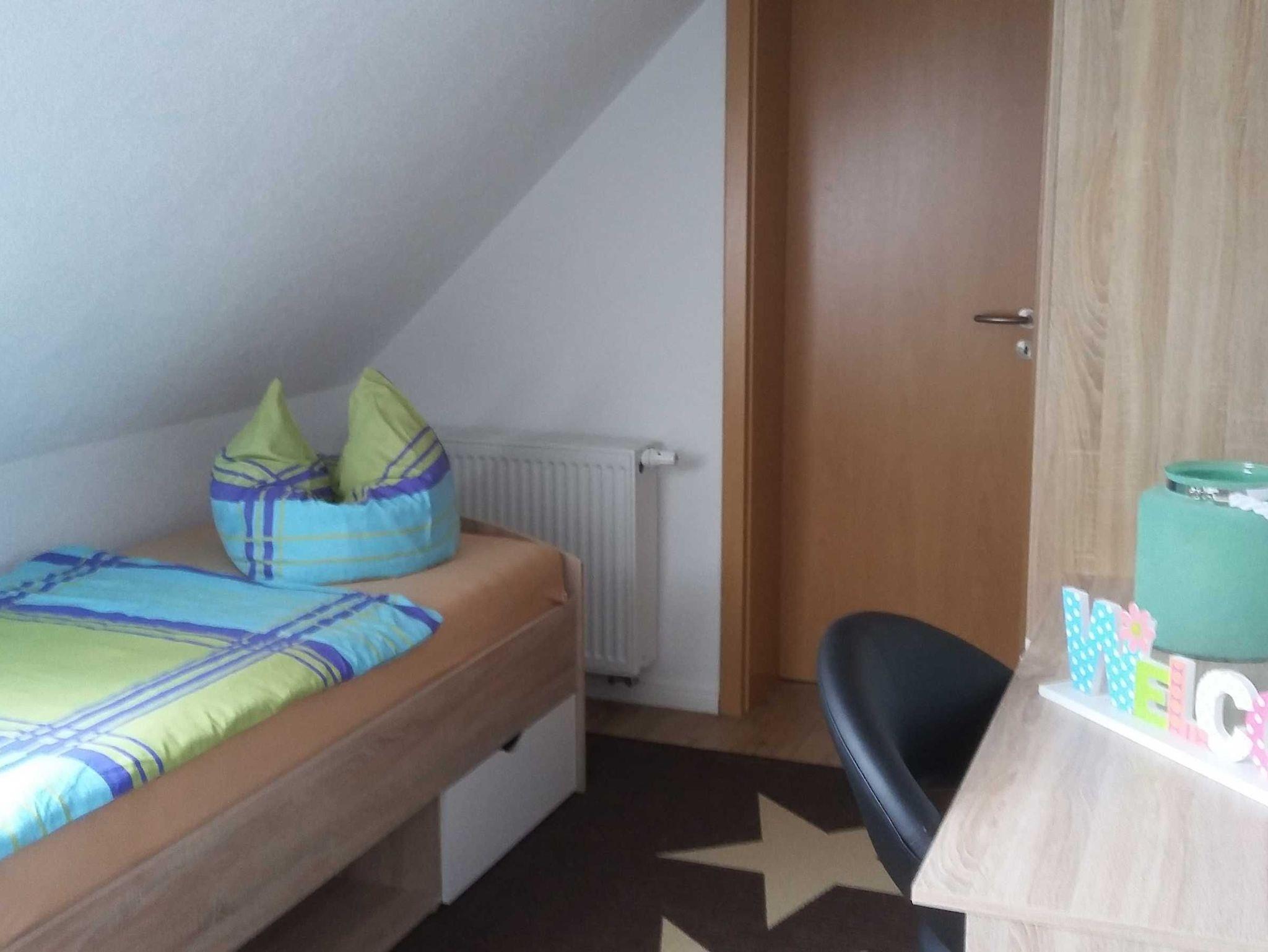 Das Schlafzimmer ist ausgestattet mit einem Doppelbett u. einem Einzelbett fürs Kind. Bettwäsche ist im Preis enthalten, Handtücher bringen Sie bitte mit.