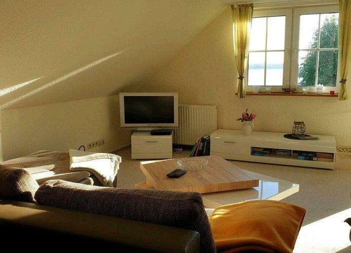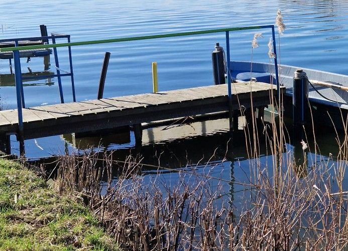 Die Außenbereiche der Ferienwohnung sind ebenso beeindruckend. Ein Boots- und Badesteg lädt dazu ein, die Tage am Wasser zu verbringen, sei es beim Schwimmen, Angeln oder Bootfahren. Die großzügige Liegewiese von etwa 1900 m² bietet reichlich Platz zum Sonnenbaden und Entspannen. Auf dem Balkon, der mit Gartenmöbeln ausgestattet ist, können Sie die frische Luft und die herrliche Aussicht genießen.