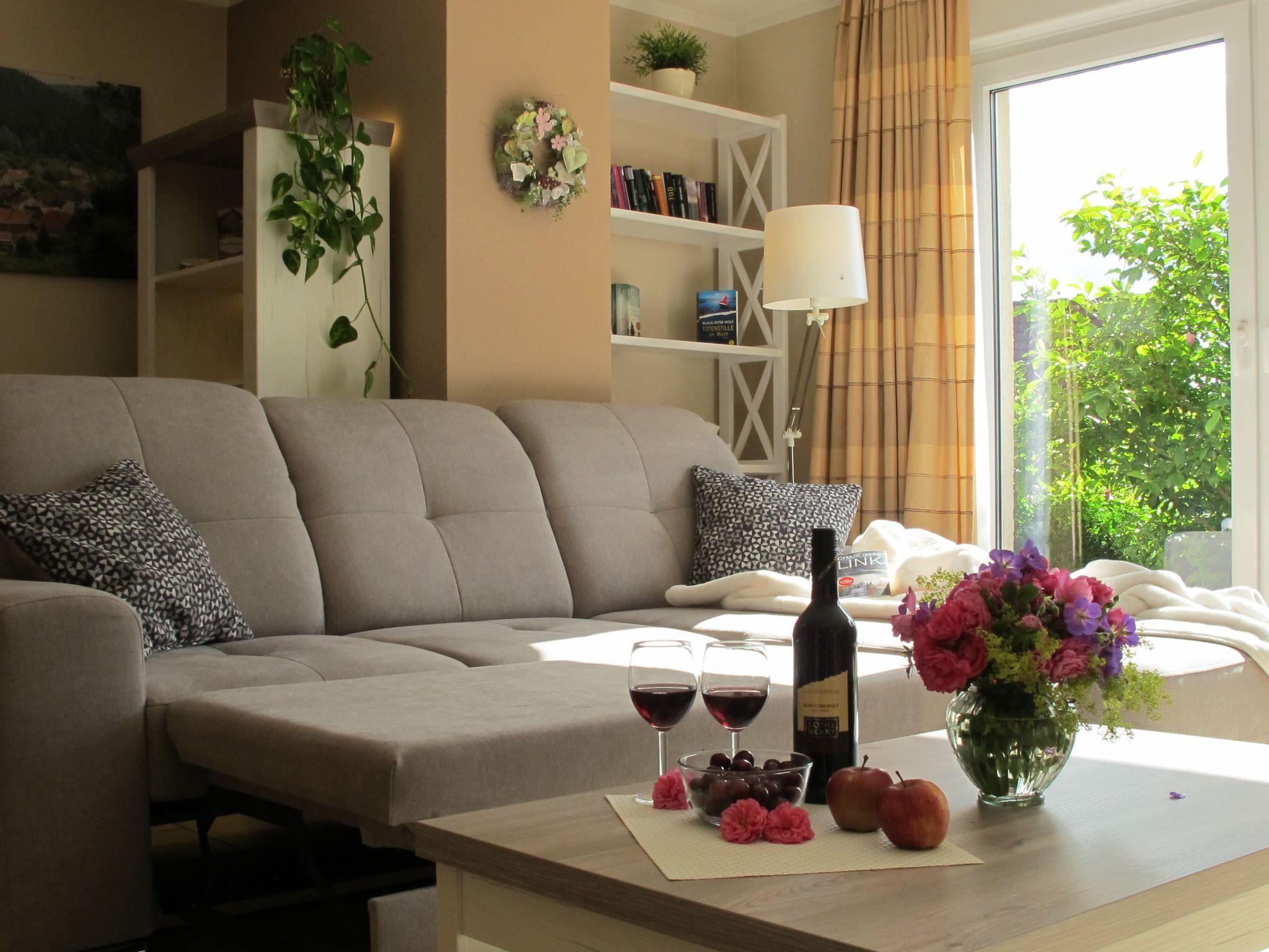 The Fasse holiday flat offers around 60 square metres of space for 2 people. Pets are not allowed. The non-smoking flat is located on the ground floor of our detached house with a separate, step-free entrance. It impresses with its quiet and idyllic location right next to the forest. The high-quality furnishings in a modern country house style and the extensive equipment ensure that you will want for nothing.