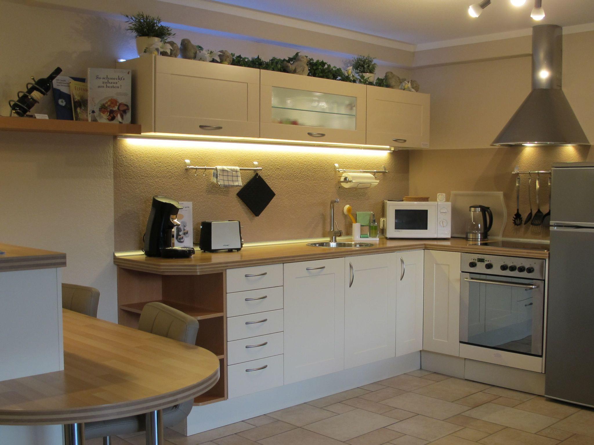 The flat has a fully equipped open-plan kitchen with dishwasher and a living area with pull-out couch, cable TV and DVD player as well as a dining area for 2 people. The bedroom with box-spring bed (180 x 200 cm) and Meos gel foam topper offers direct access to the terrace. The bathroom has a spacious shower, a wide washbasin, a towel radiator, a seating area and underfloor heating. You can store your suitcases in the utility room. There is a washing machine and another washbasin.
