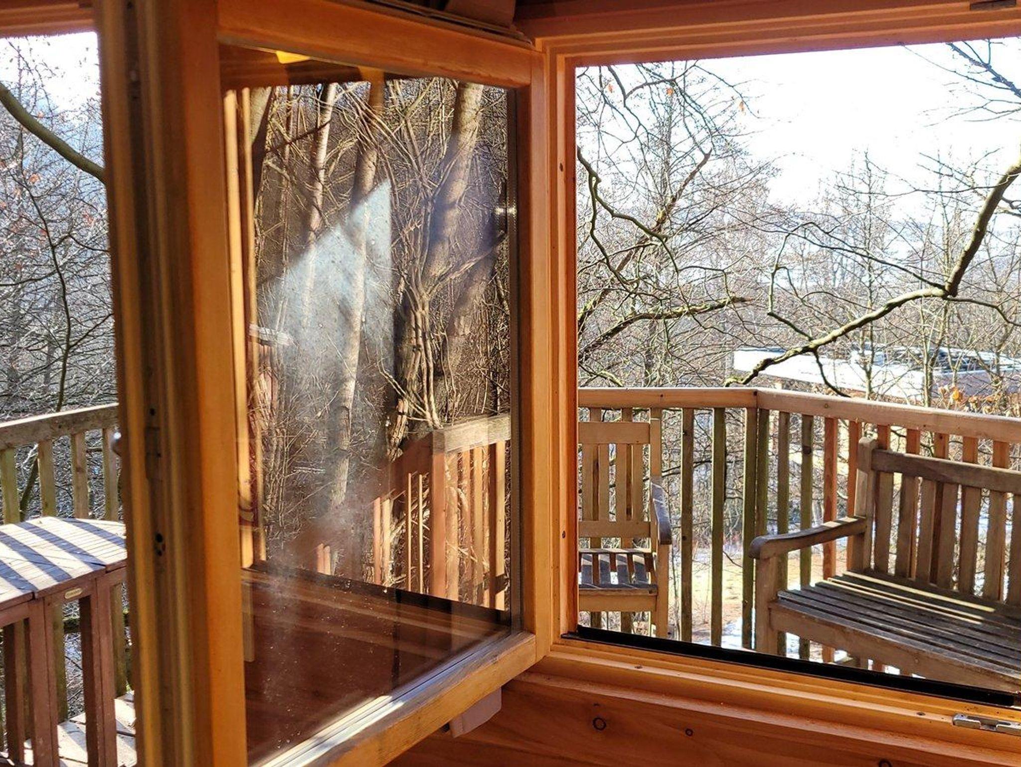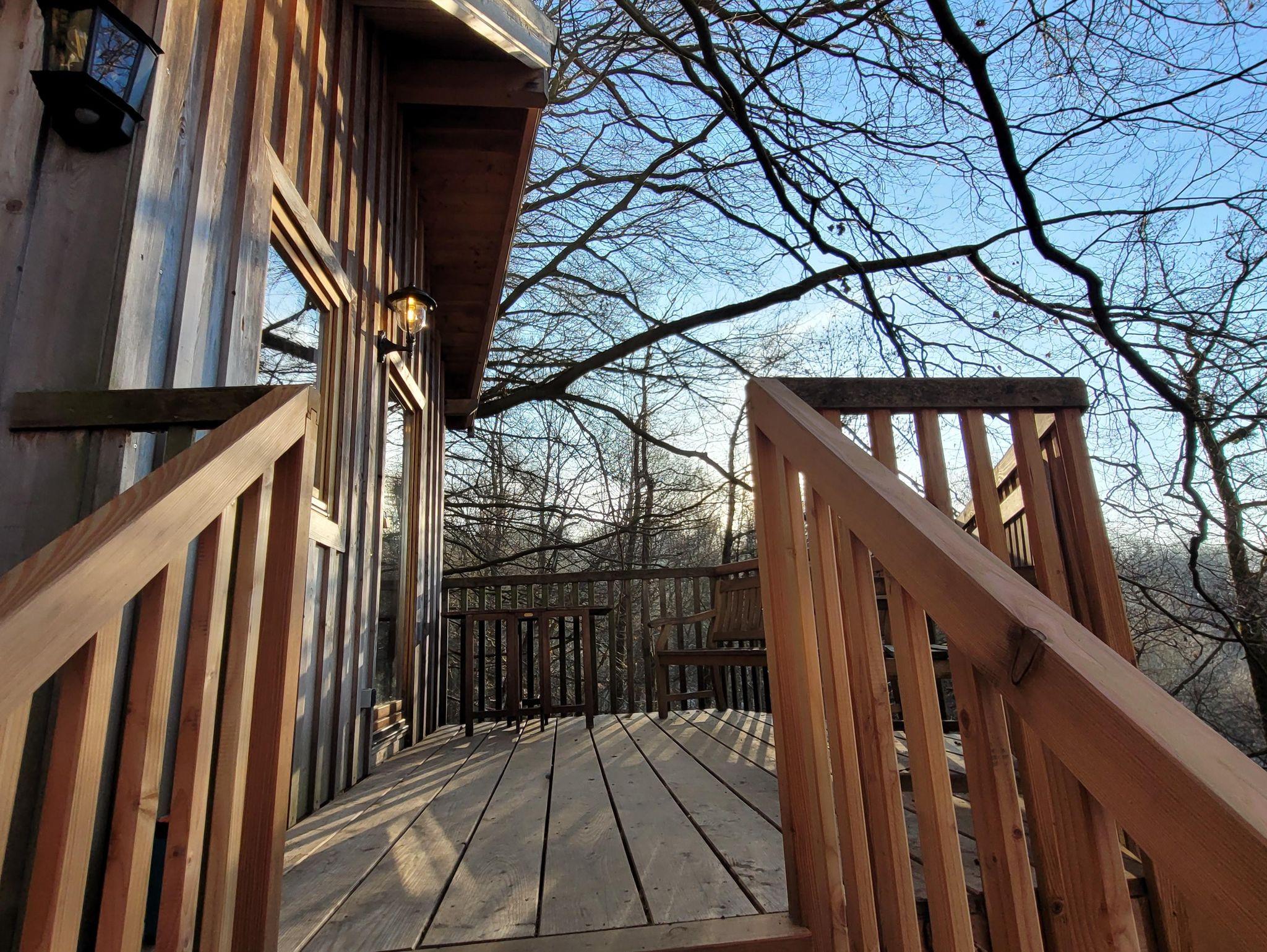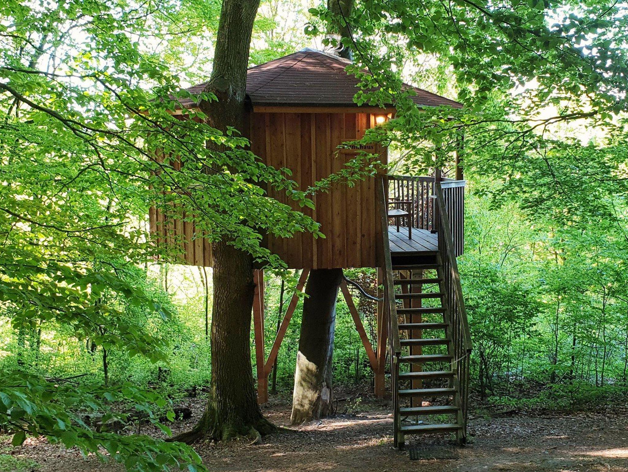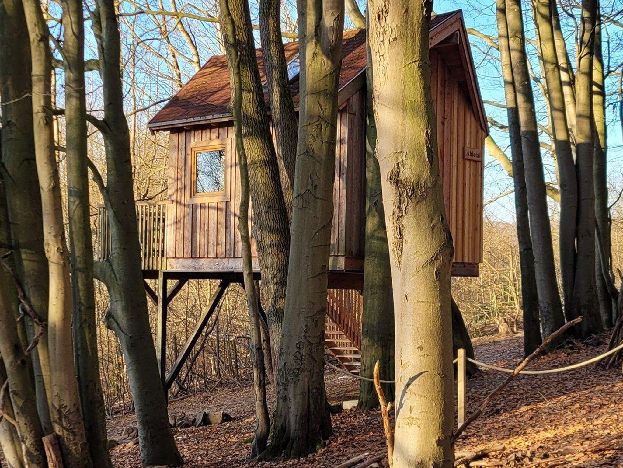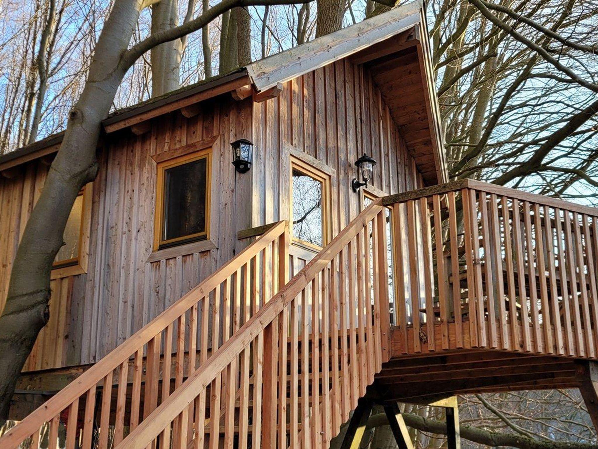 Dieses Baumhaus wurde bereits 2010 errichtet. Im Dezember 2025 erfolgten umfangreiche Umbaumaßnahmen, das Baumhaus hat jetzt ein schickes Bad mit Dusche und WC. Weiterhin wurde der Balkon vergrößert, ein weiteres Fenster installiert, im Haus gibt es nun einen kleinen Kühlschrank und kostenfreies WLAN.