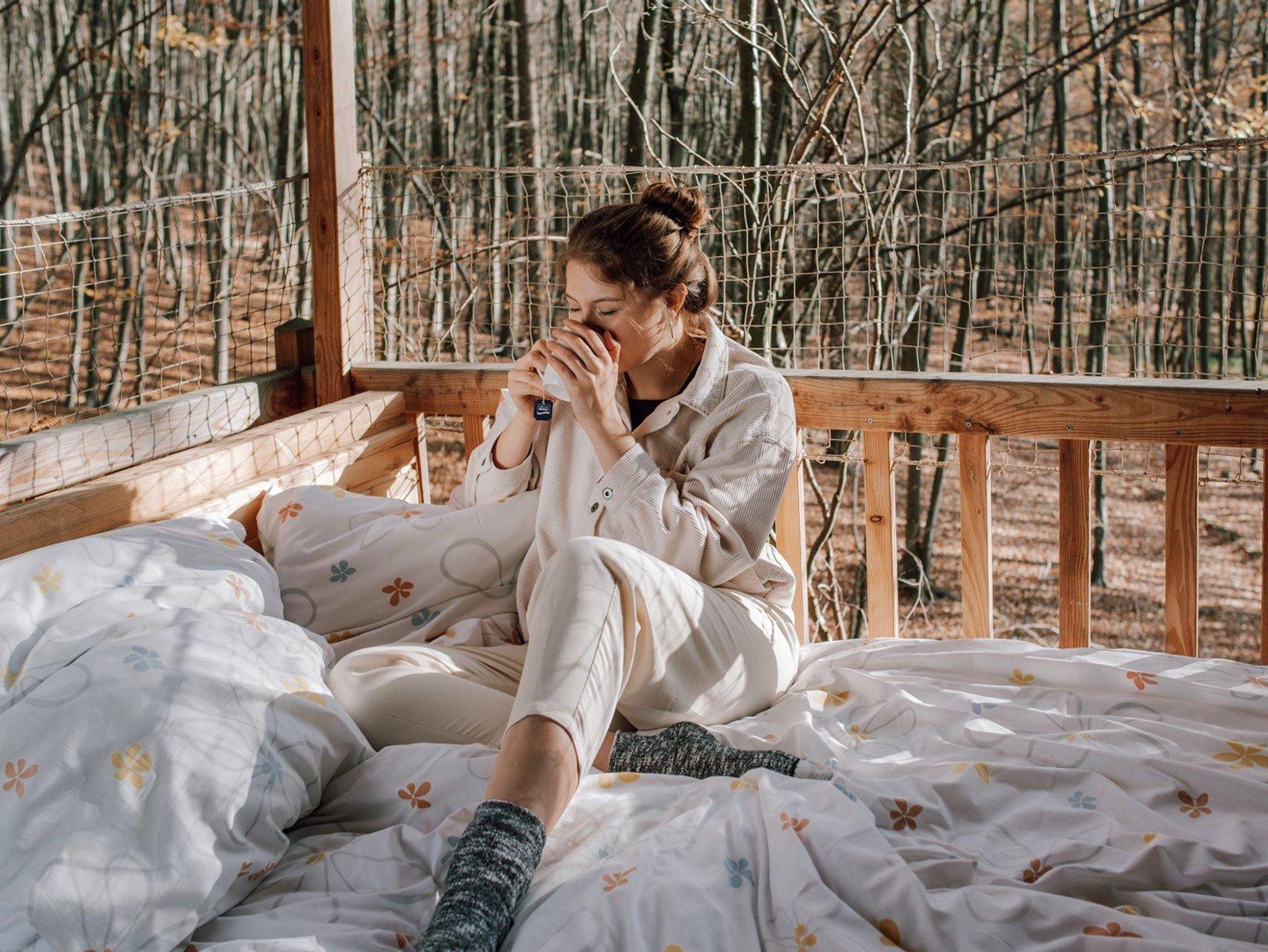 Baumhaushotel Solling, Baumhaus Rundhaus, Wohn-/Schlafraum