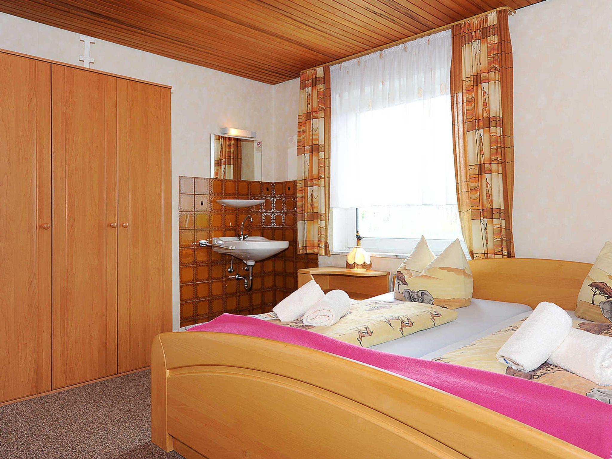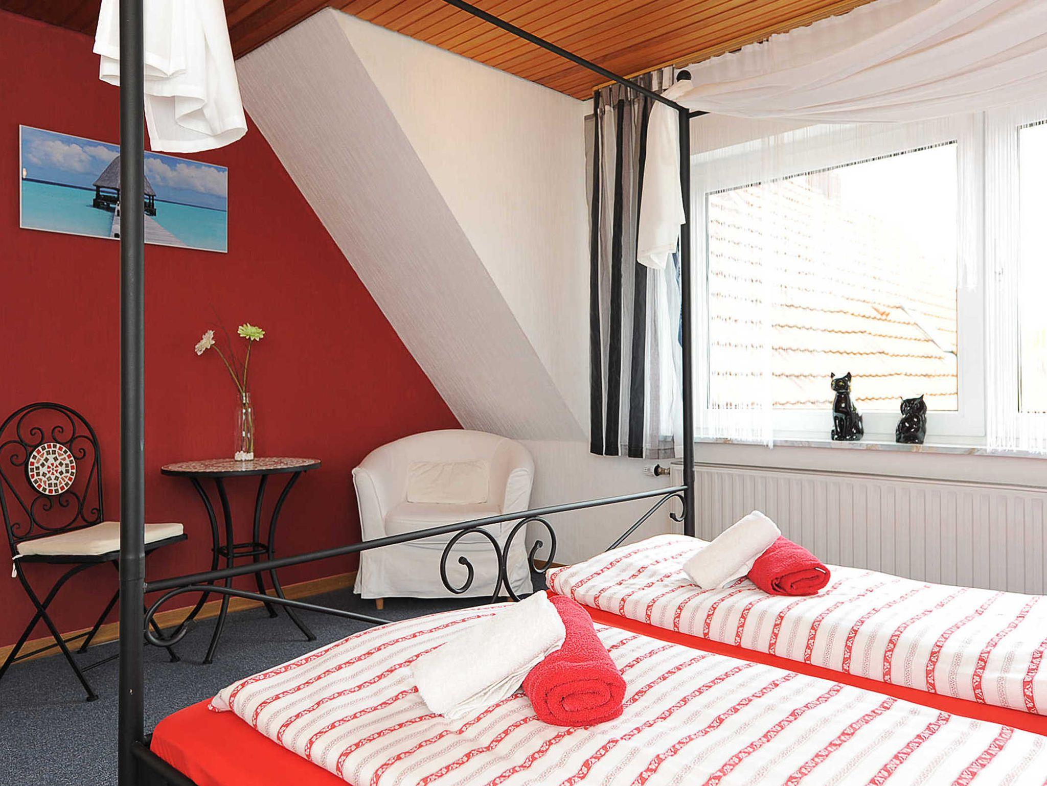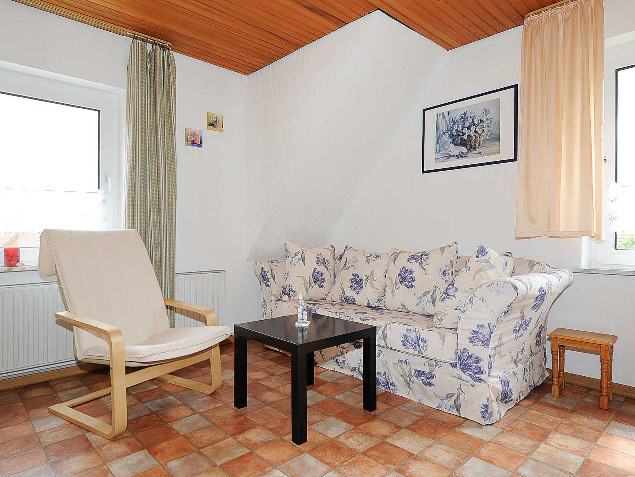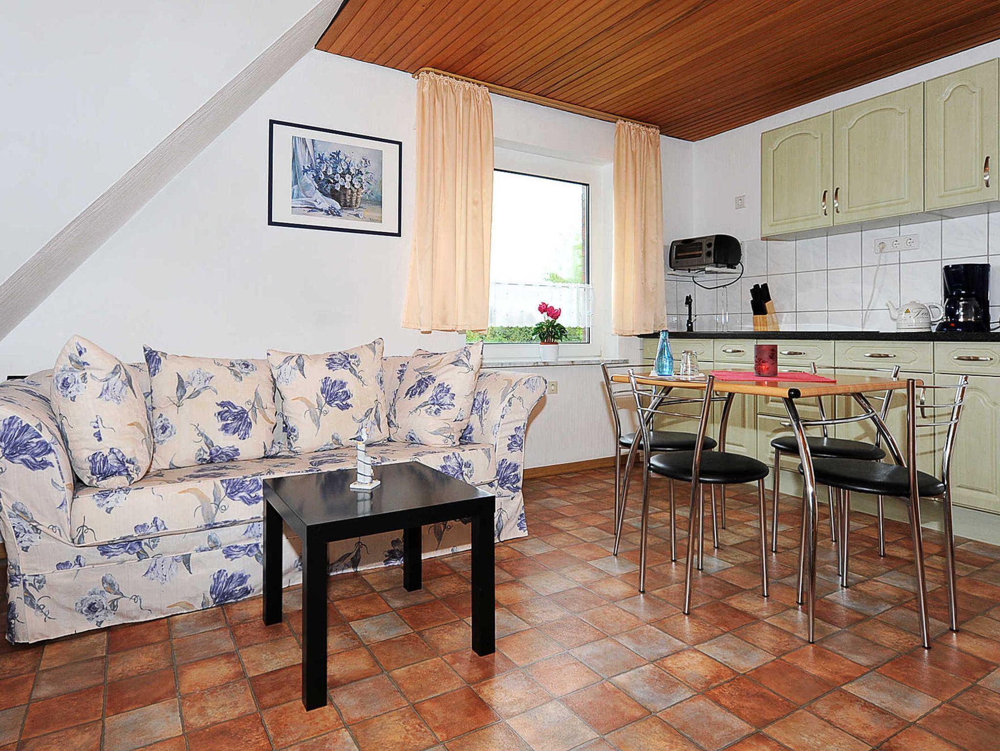 Größe ca. 55 Quadratmeter, Wohnraum mit integrierter Küche, Schlafzimmer, zweites separates, Schlafzimmer/Kinderzimmer, Badezimmer mit Dusche, Waschtisch und WC, Obergeschoss, optimal für 2 bis 4 Personen.
