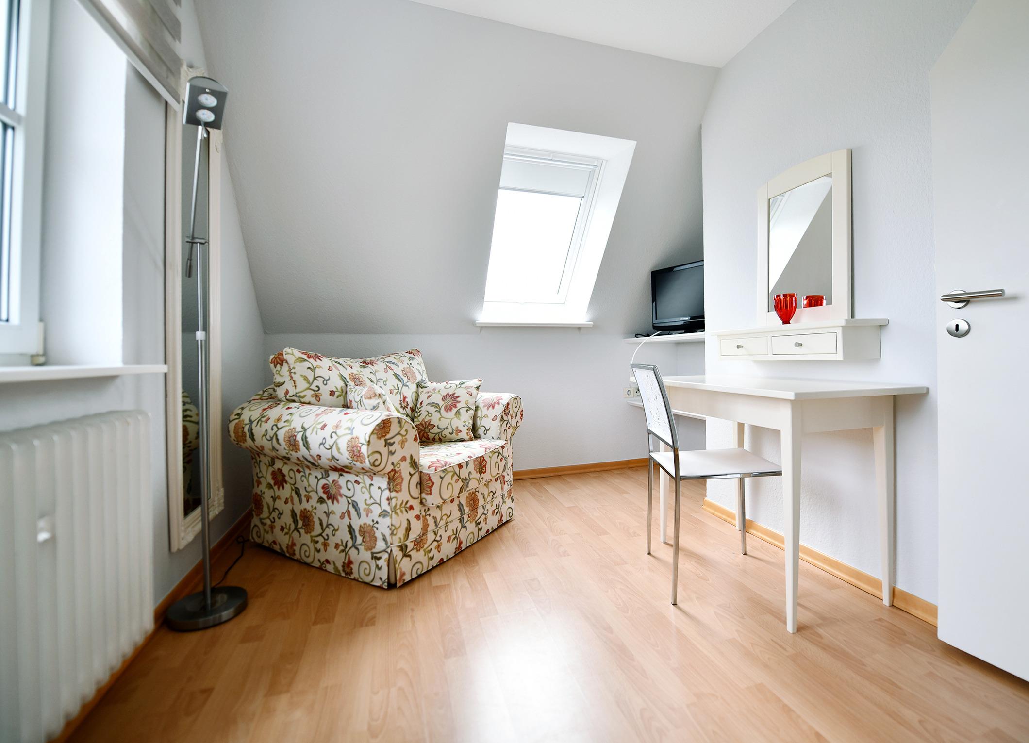 Diese Obergeschosswohnung mit sonnigem Balkon bietet Platz für vier Personen.
