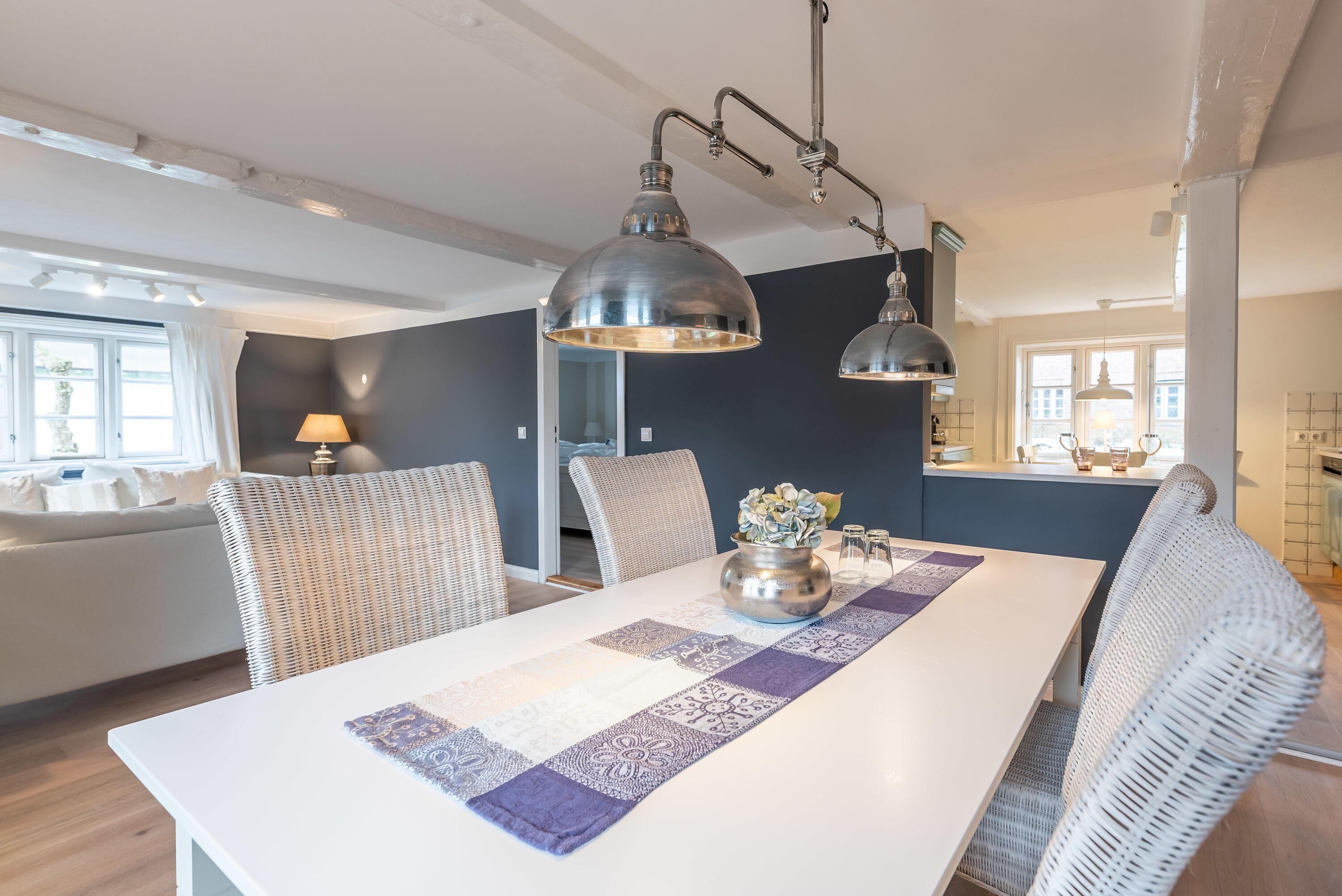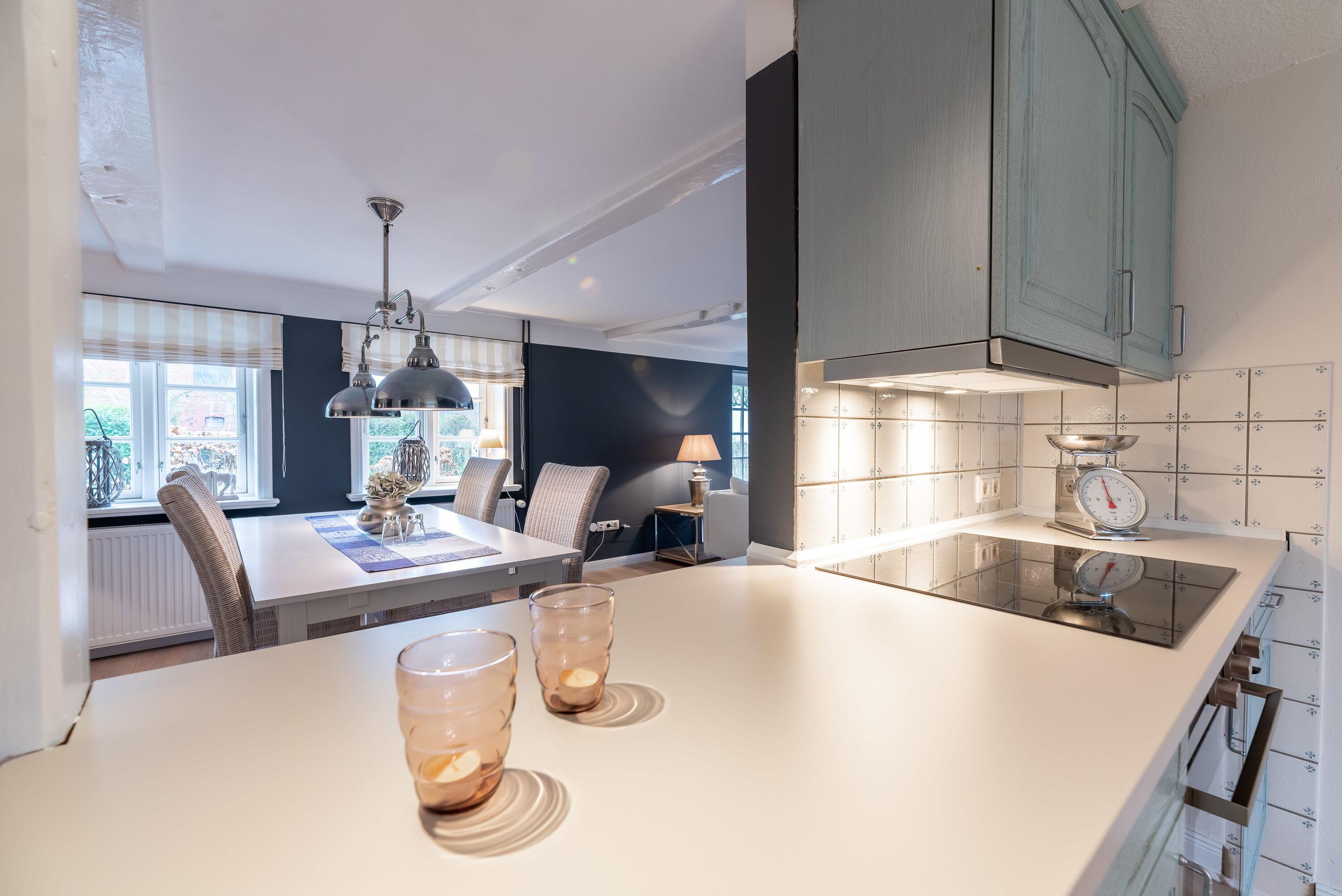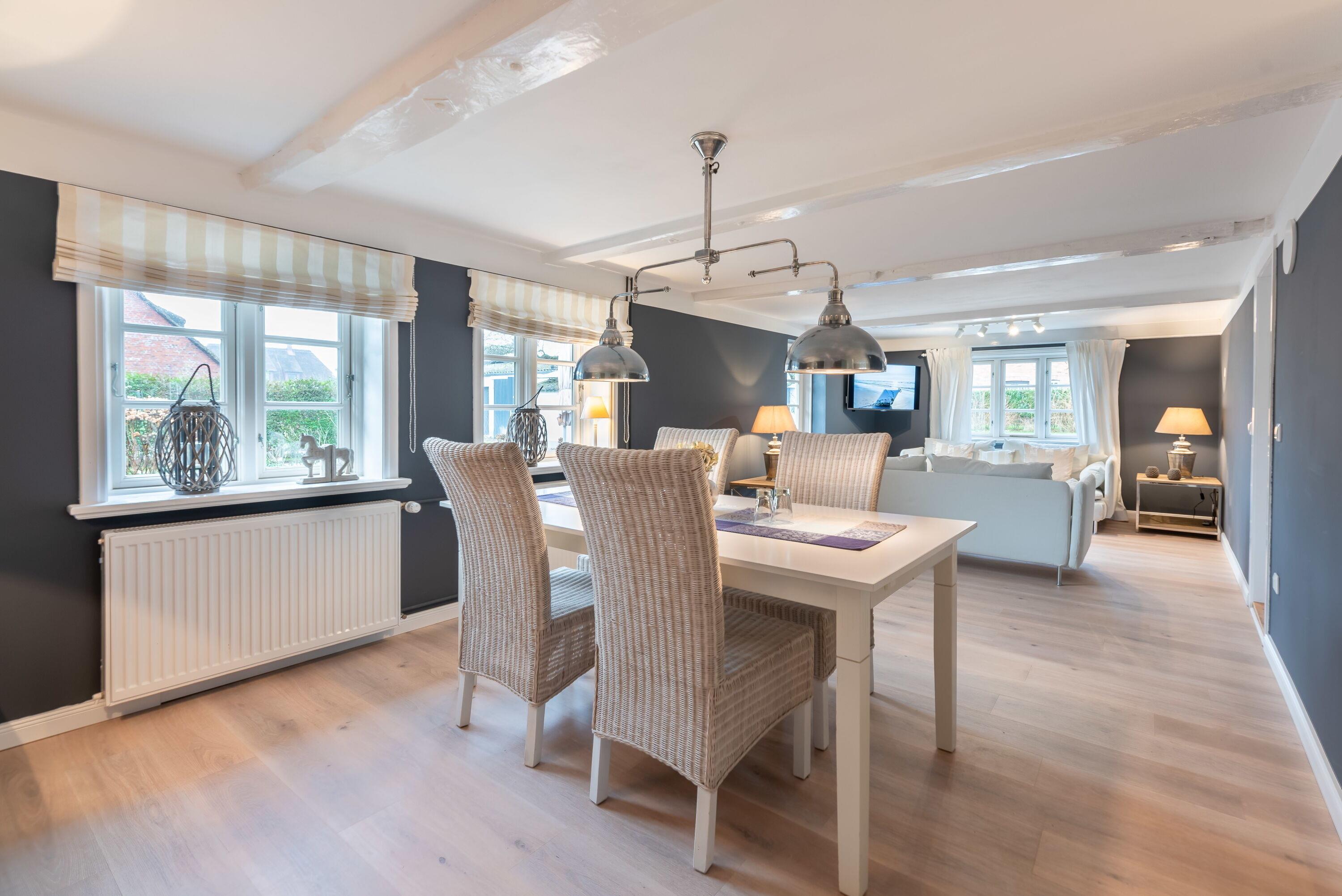 In diesem gemütlich, im nordischen Landhausstil eingerichteten Friesenhaus (ca. 75 qm), steht Ihnen ein heller geräumiger Wohn- und Essbereich mit angegliederter Küche zur Verfügung.