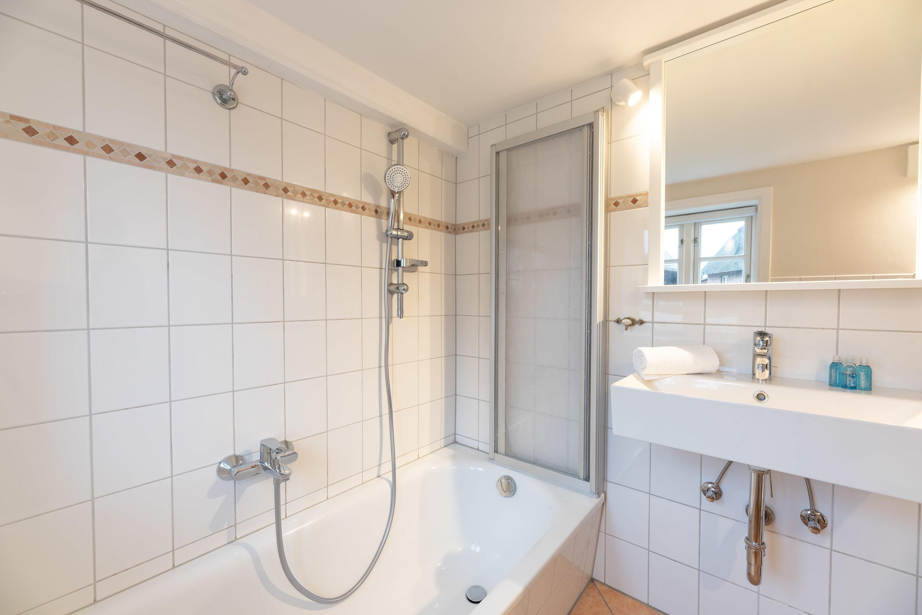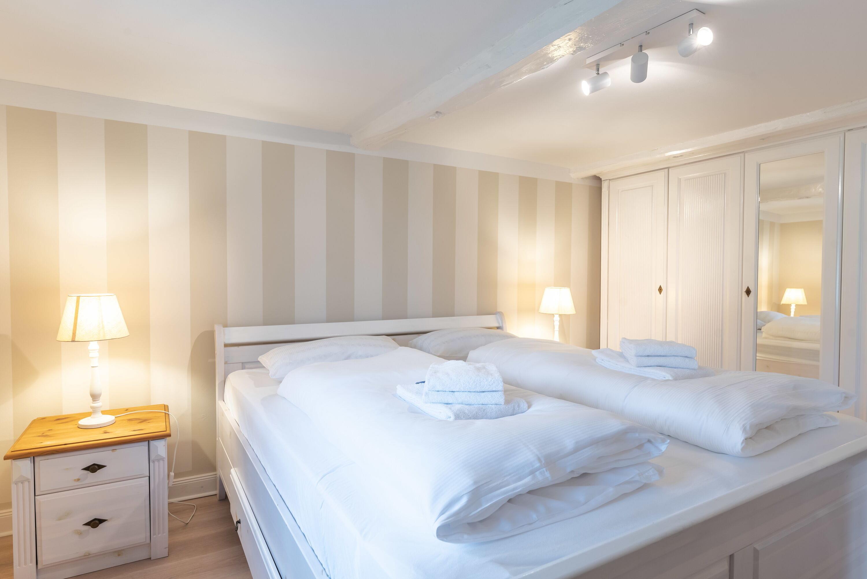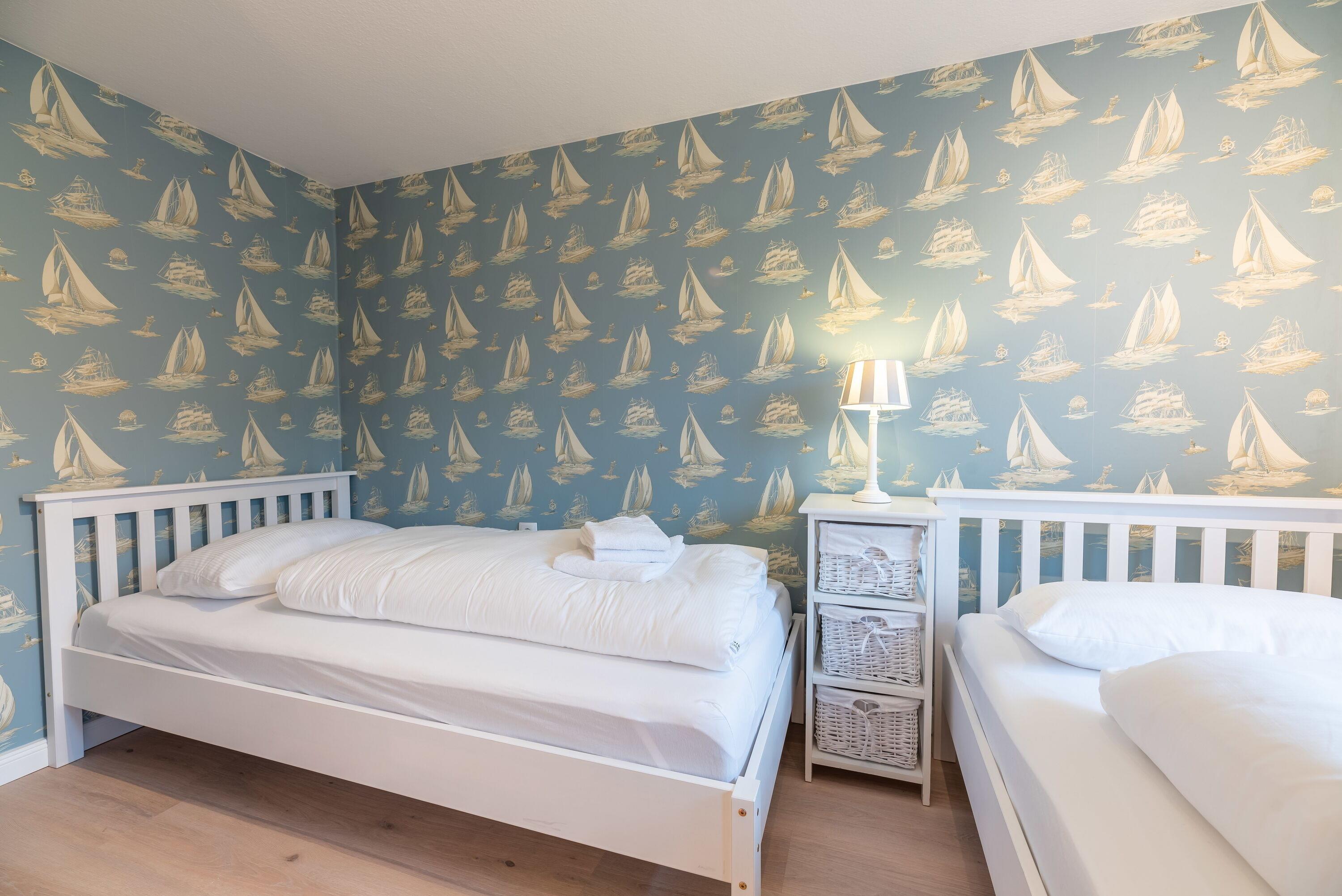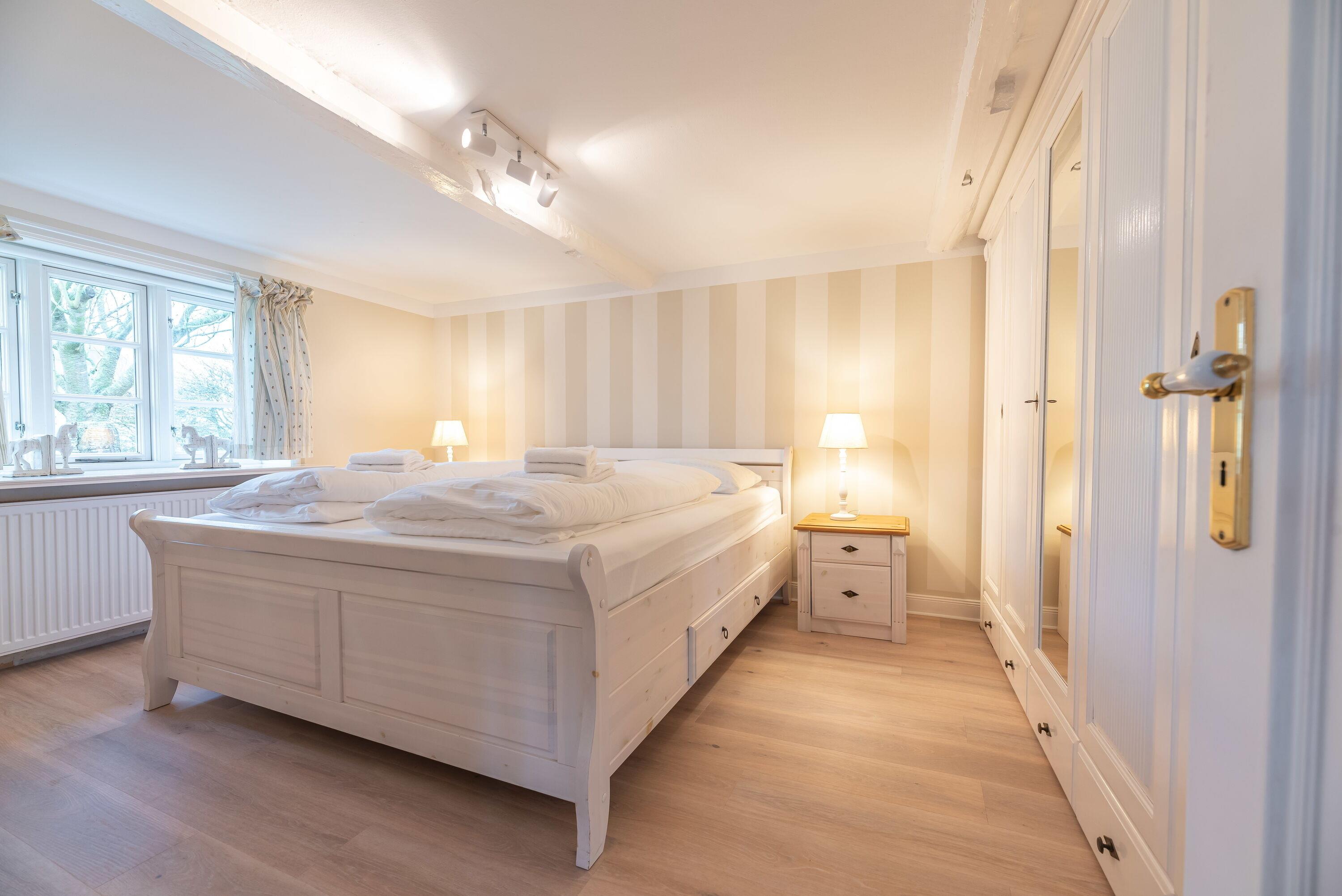 Das Haus verfügt über zwei Schlafzimmer. Ein Schlafzimmer mit Doppelbett (180×200) sowie ein weiteres Schlafzimmer mit zwei Einzelbetten (jeweils 90×200). Das Bad mit Badewanne/Dusche und WC ist hell und lichtdurchflutet und zusätzlich mit einer Fußbodenheizung ausgestattet.