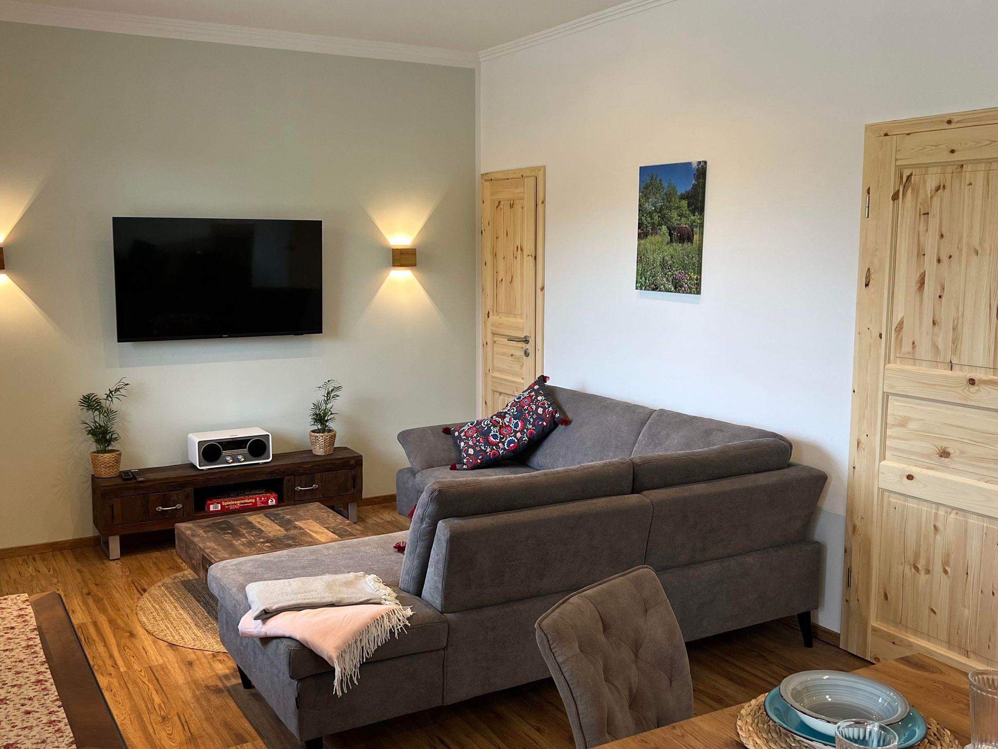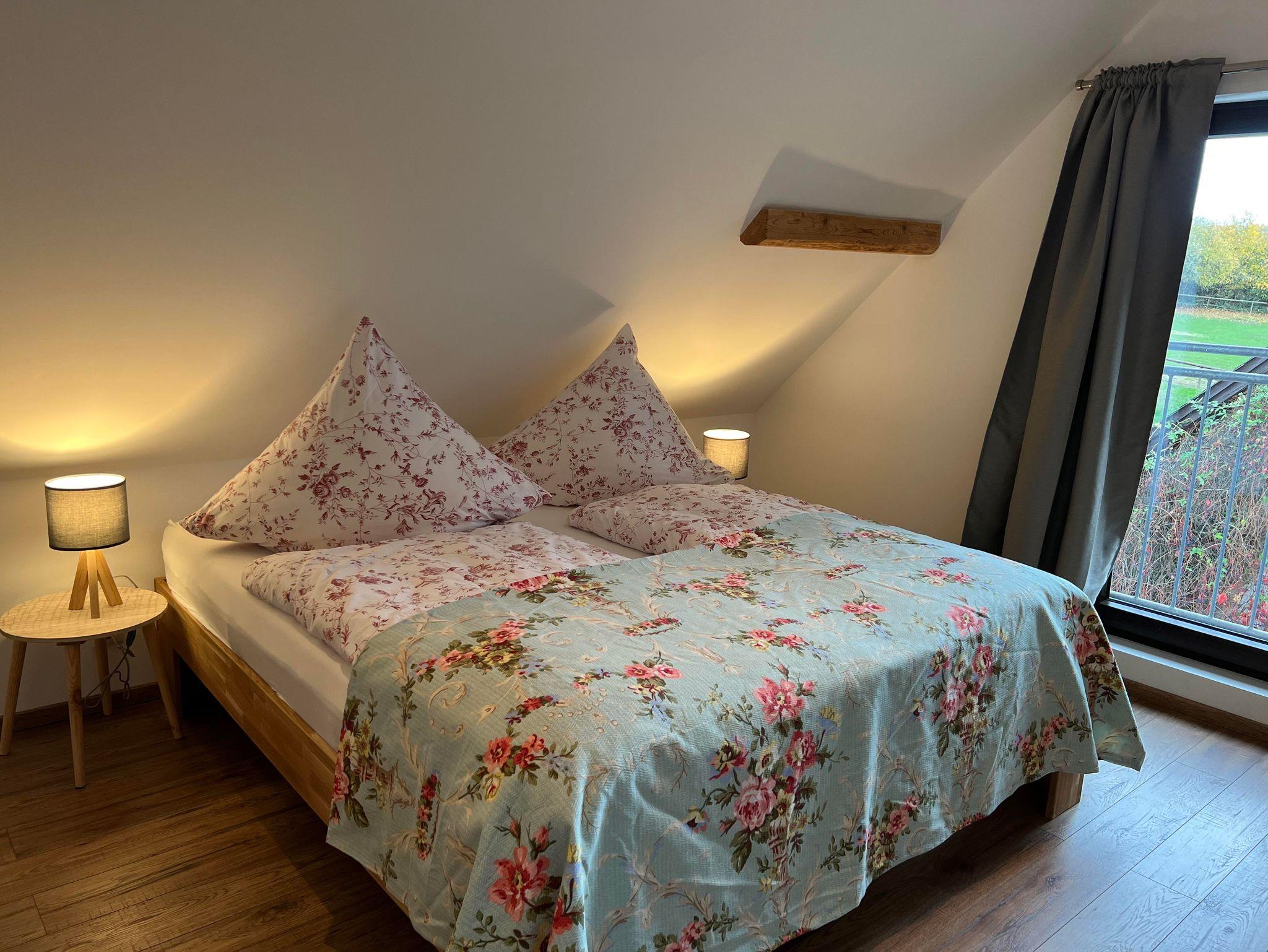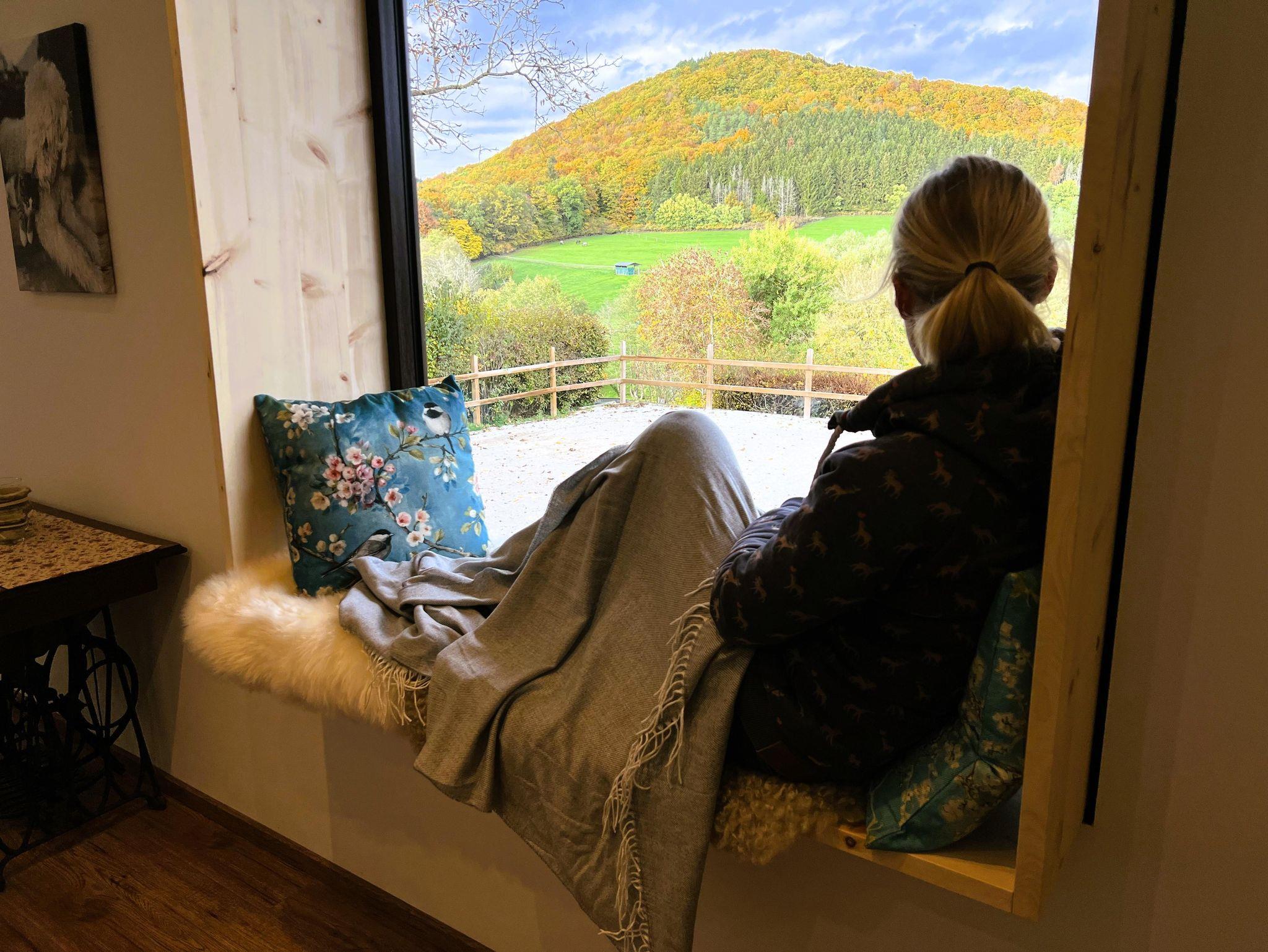 Auf 90m² kannst Du mit bis zu sechs Personen das Landleben in der Vulkaneifel und einen herrlichen Ausblick auf den Hummerich genießen.