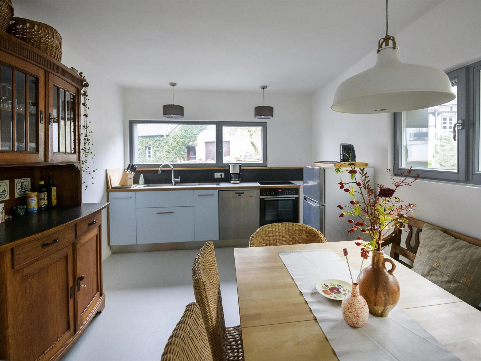 Ein ökologisch saniertes Bauernhaus aus dem 18. Jahrhundert mit einem modernisierten Anbau bietet Raum und Ambiente für einen entspannten und zugleich komfortablen Urlaub. Eine zeitgemäße moderne Küche mit Sitzecke und Wandheizung steht im schönen Kontrast zu der restaurierten Treppenanlage, den alten Türen mit Kastenschlössern und alten Holzböden.