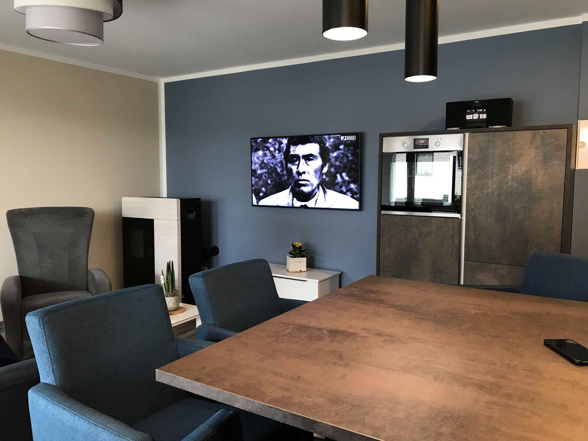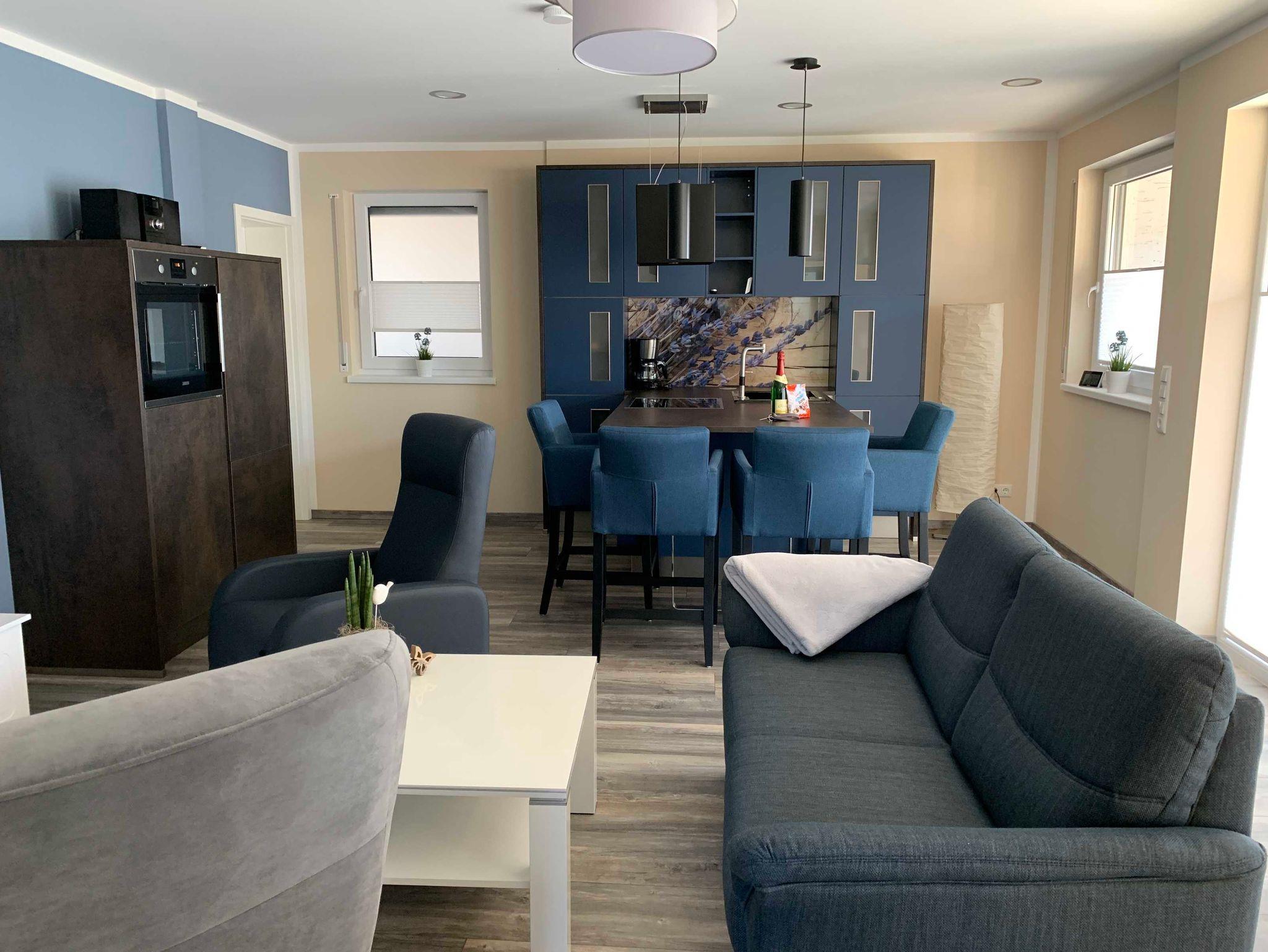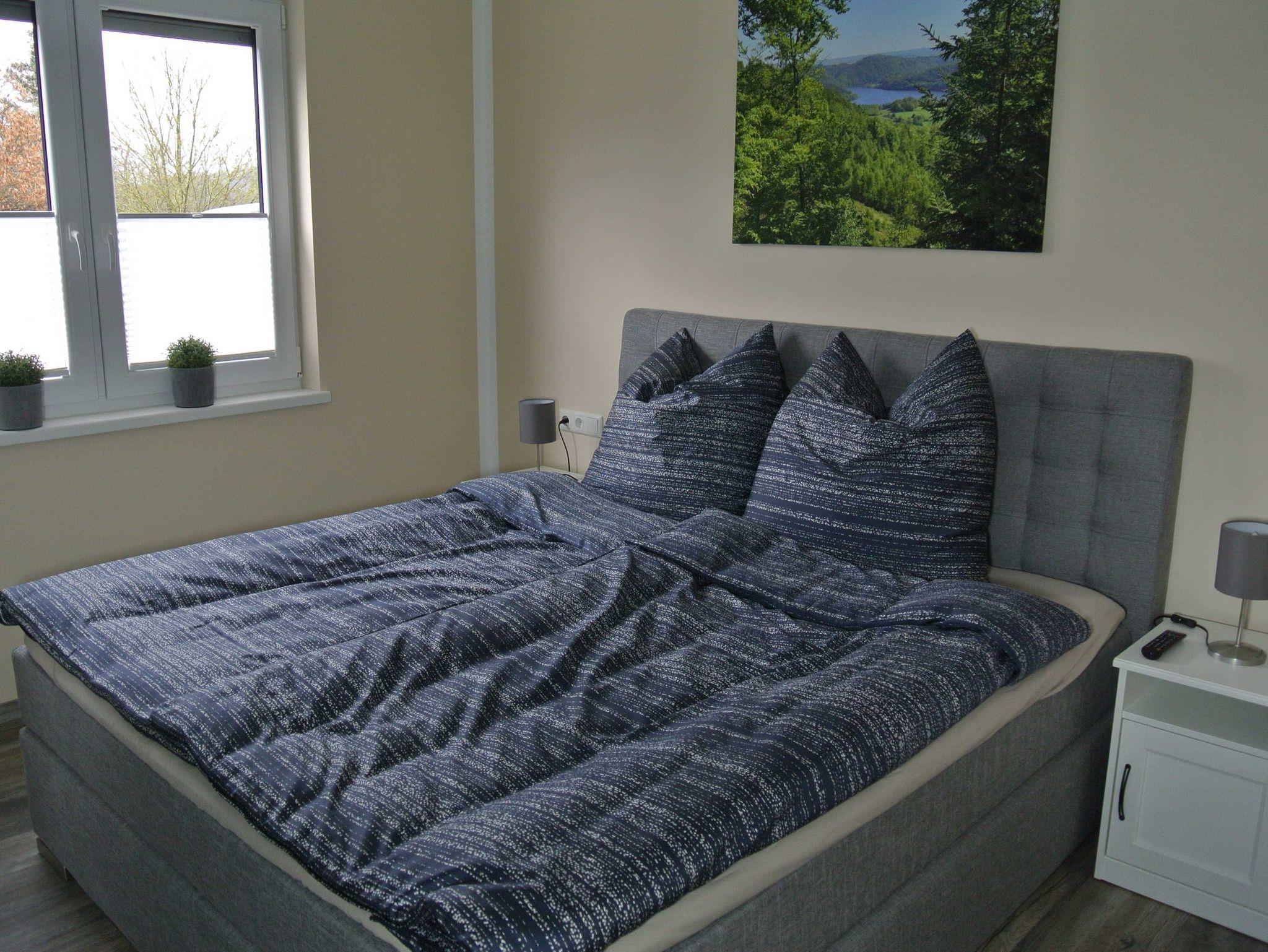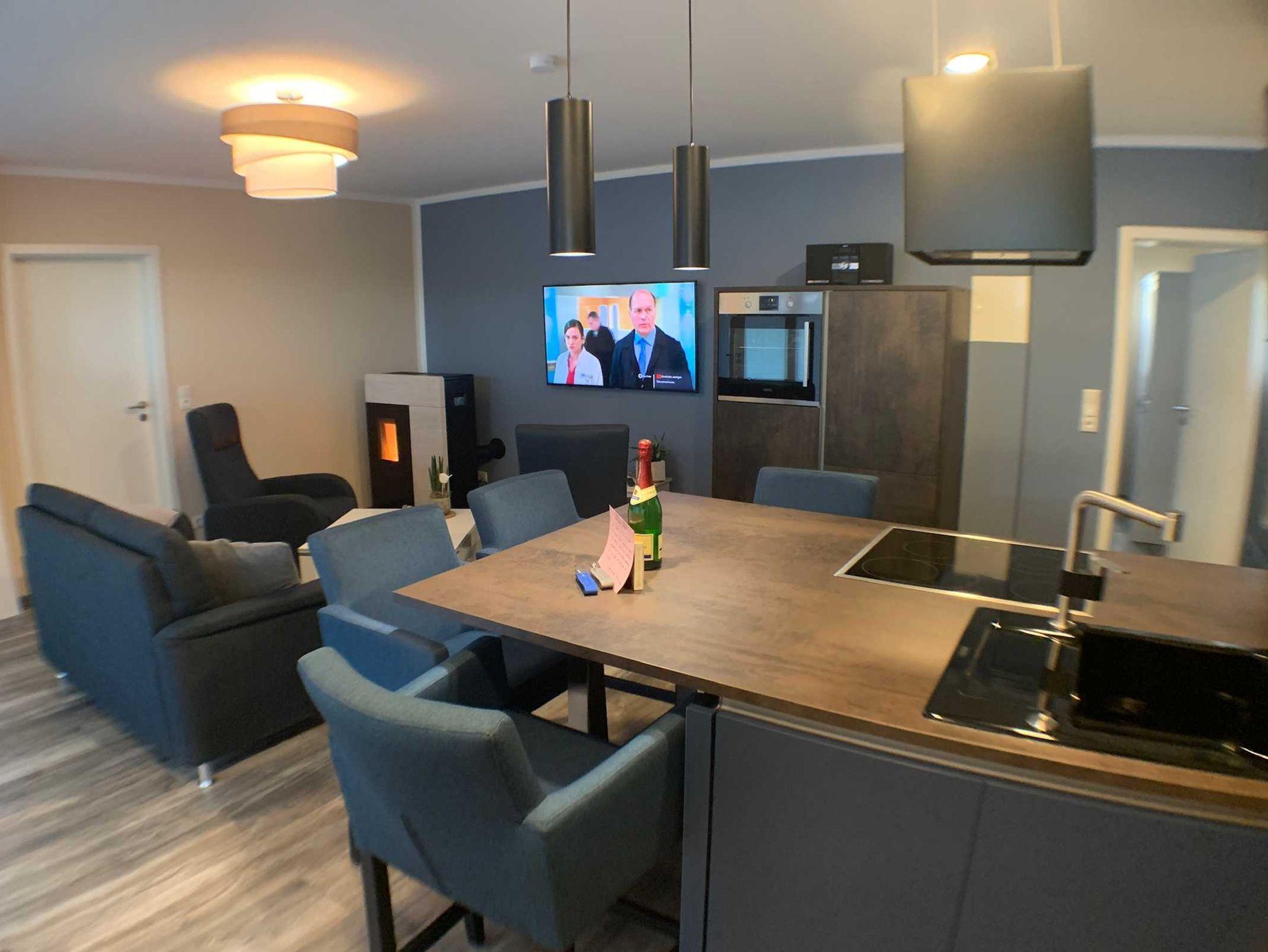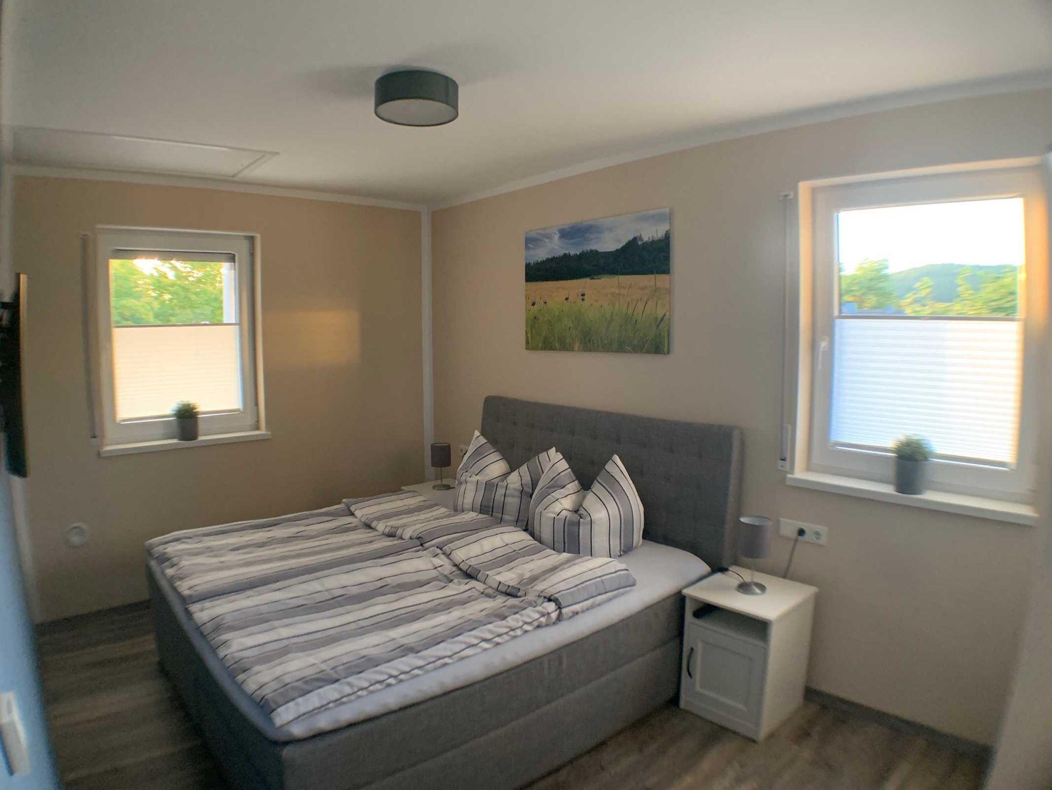 Das geschmackvoll und modern eingerichtete Ferienhaus (Nichtraucherhaus) ist geeignet für bis zu vier Personen. Es verfügt über zwei getrennte Schlafzimmer, ausgestattet mit Boxspringbetten(180x200) und Tv. Bad mit DU/WC. In dem Wohnbereich befindet sich ein Pelletofen, TV/Stereoanlage und ein offener Bereich mit einer voll ausgestatteten Küche.