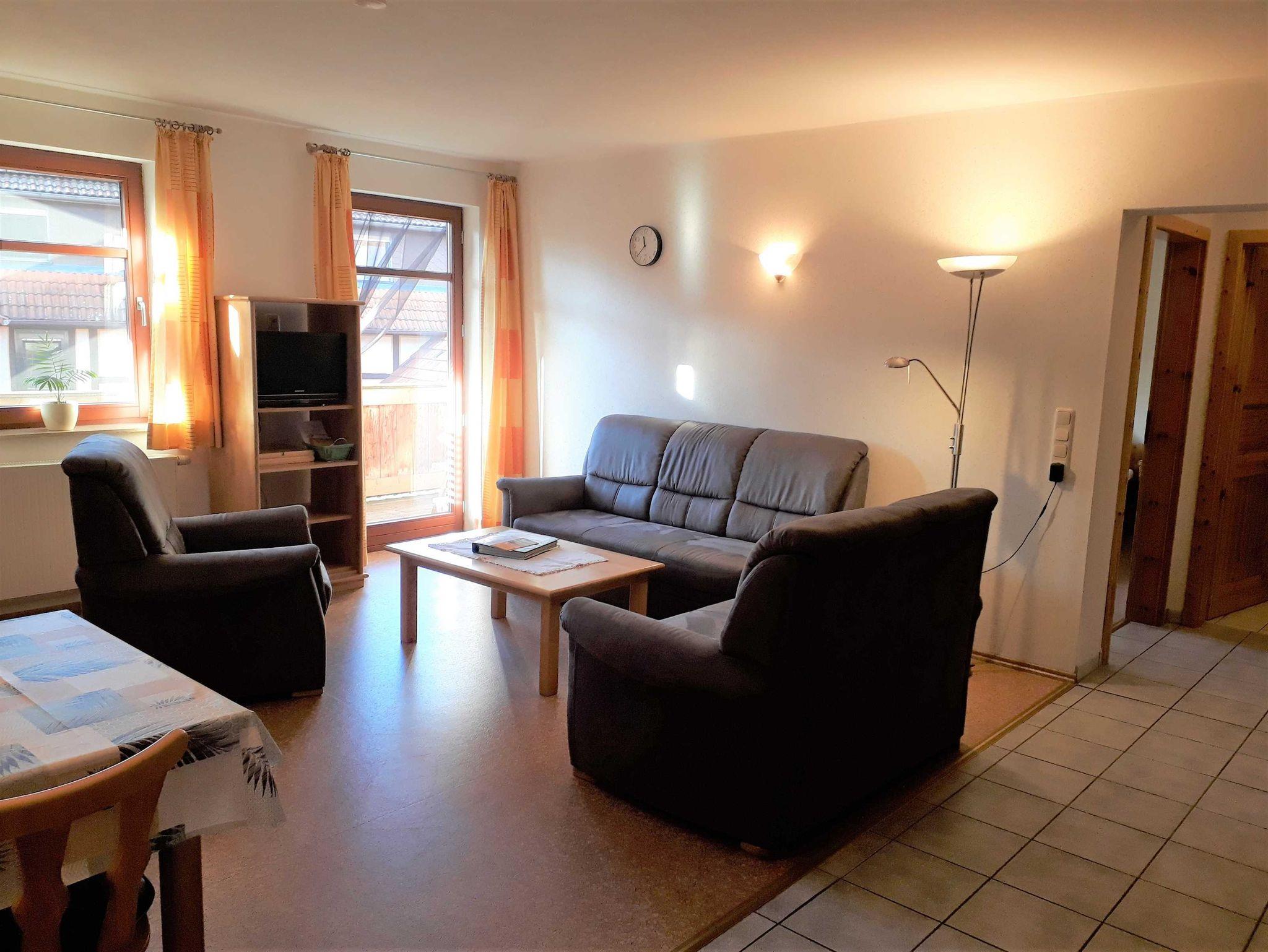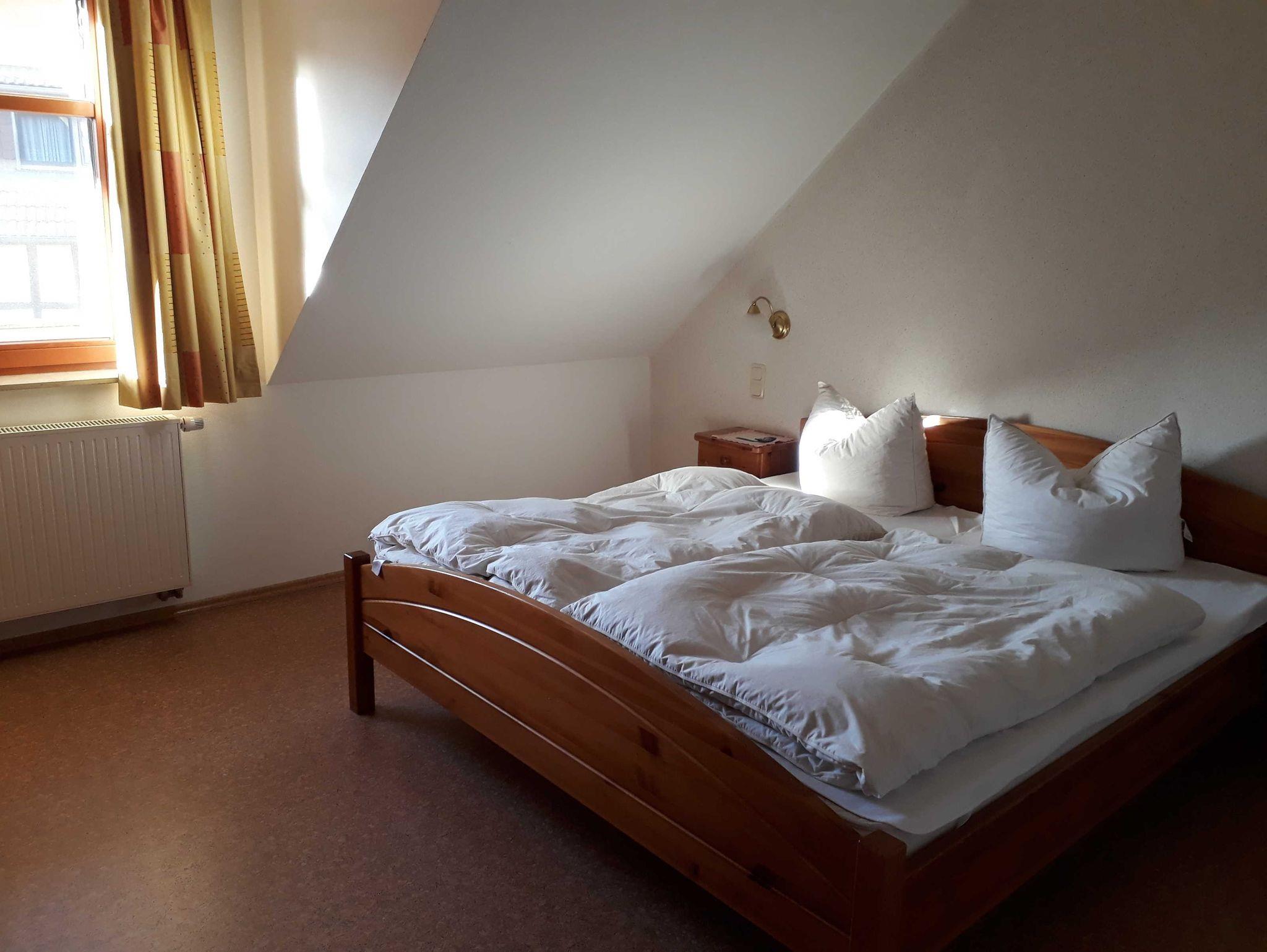 Gemütliche Ferienwohnung im II. OG mit Wohnküche, zwei Schlafräumen, DU/WC mit ebenerdiger Dusche und überdachtem Balkon, Größe ca. 64qm, geeignet für bis zu 6 Personen.