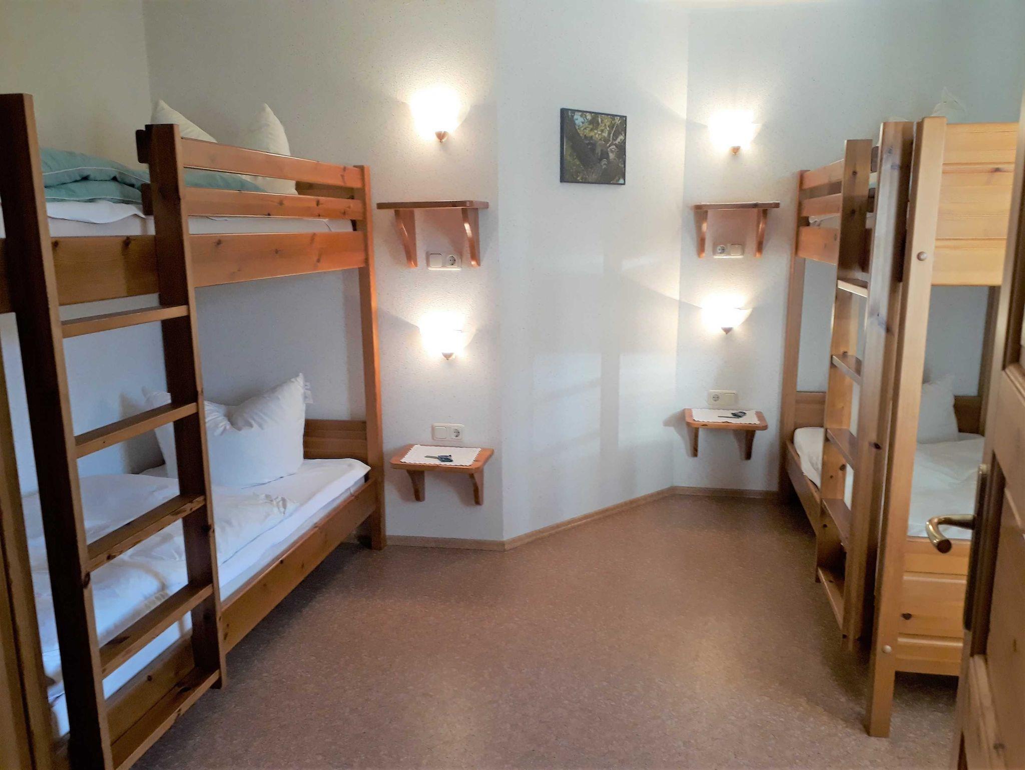 1 Schlafzimmer mit Doppelbett, 1 Schlafzimmer mit zwei Etagenbetten.