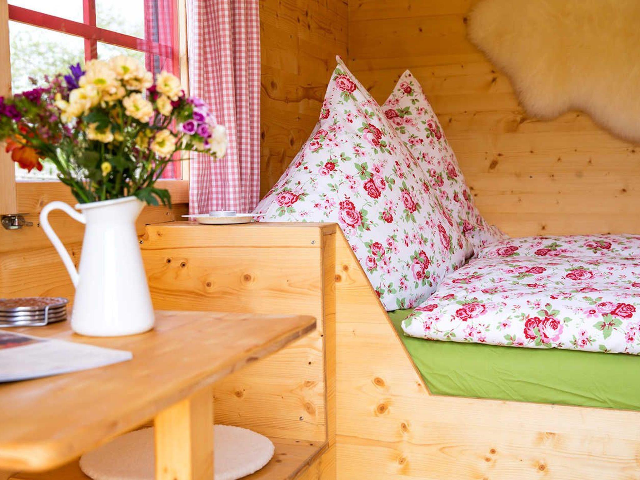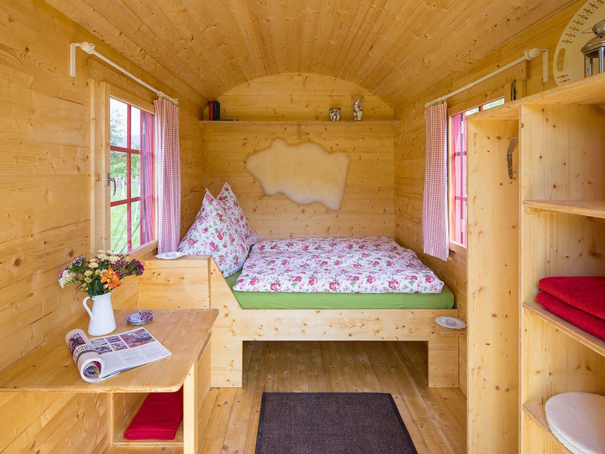 Der Schäferwagen ist auch als 5. Zimmer in Kombination mit einem Ferienhaus buchbar, in diesem Fall kann Küche und Bad im entsprechenden Ferienhaus genutzt werden und der Preis reduziert sich etwas. Bitte wenden Sie sich in diesem Fall direkt an uns oder besuchen unsere Homepage.