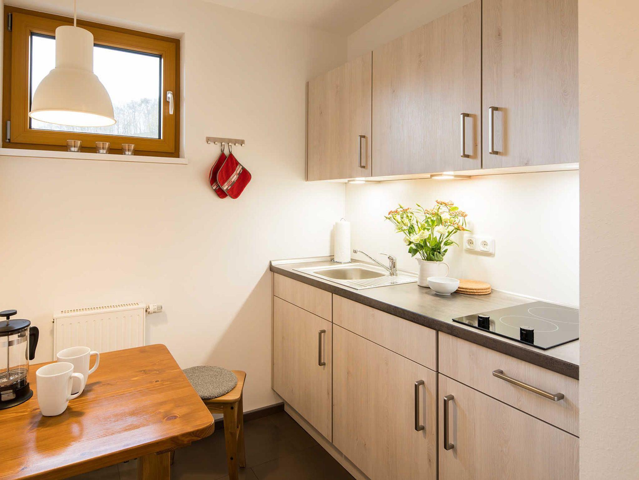 Die modernen Ferienhäuser bieten Platz für jeweils 8 Personen. Sie sind familienfreundlich und mit Kleinkindausstattung eingerichtet. Haus Grünspecht und Haus Rotmilan sind zudem im Erdgeschoß für Senioren gut geeignet und rollstuhlfreundlich konzipiert. Die Räume verteilen sich in allen Häusern auf 2 Etagen, das Obergeschoss ist über eine Wendeltreppe erreichbar.
