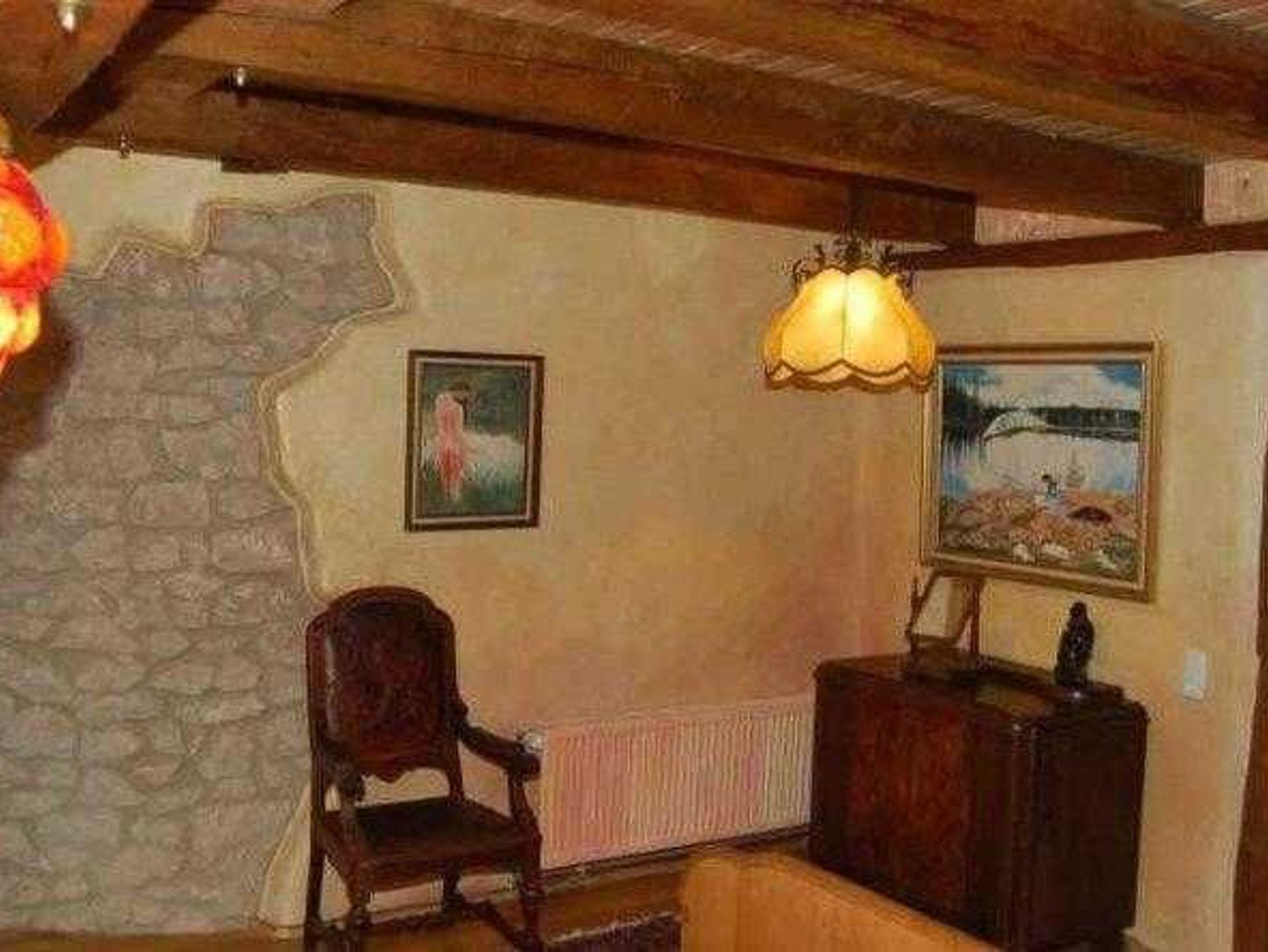 bietet als Grundausstattung eine Musikanlage, TV-Flachbild, Stühle, Tische und Kaminofen.