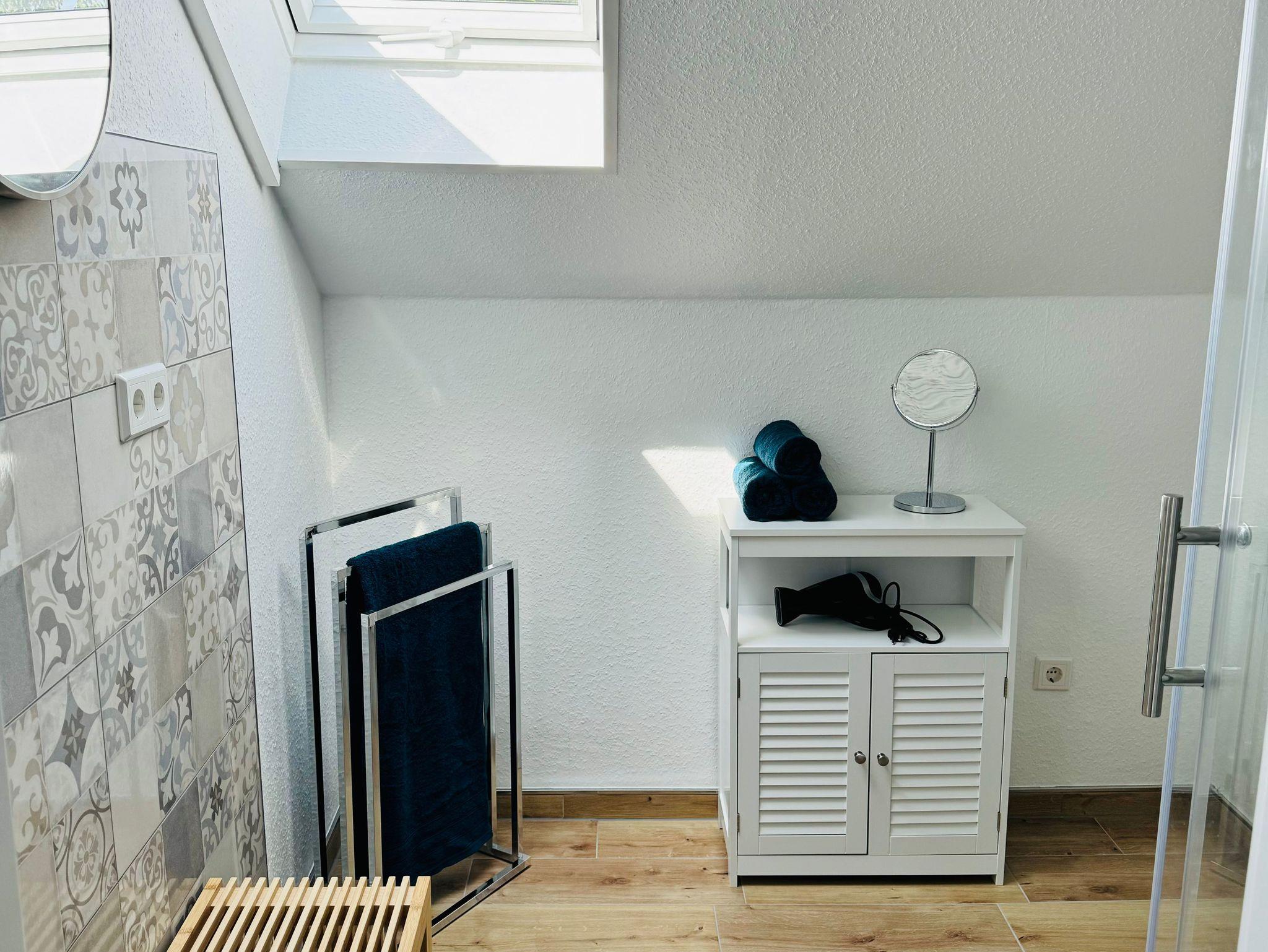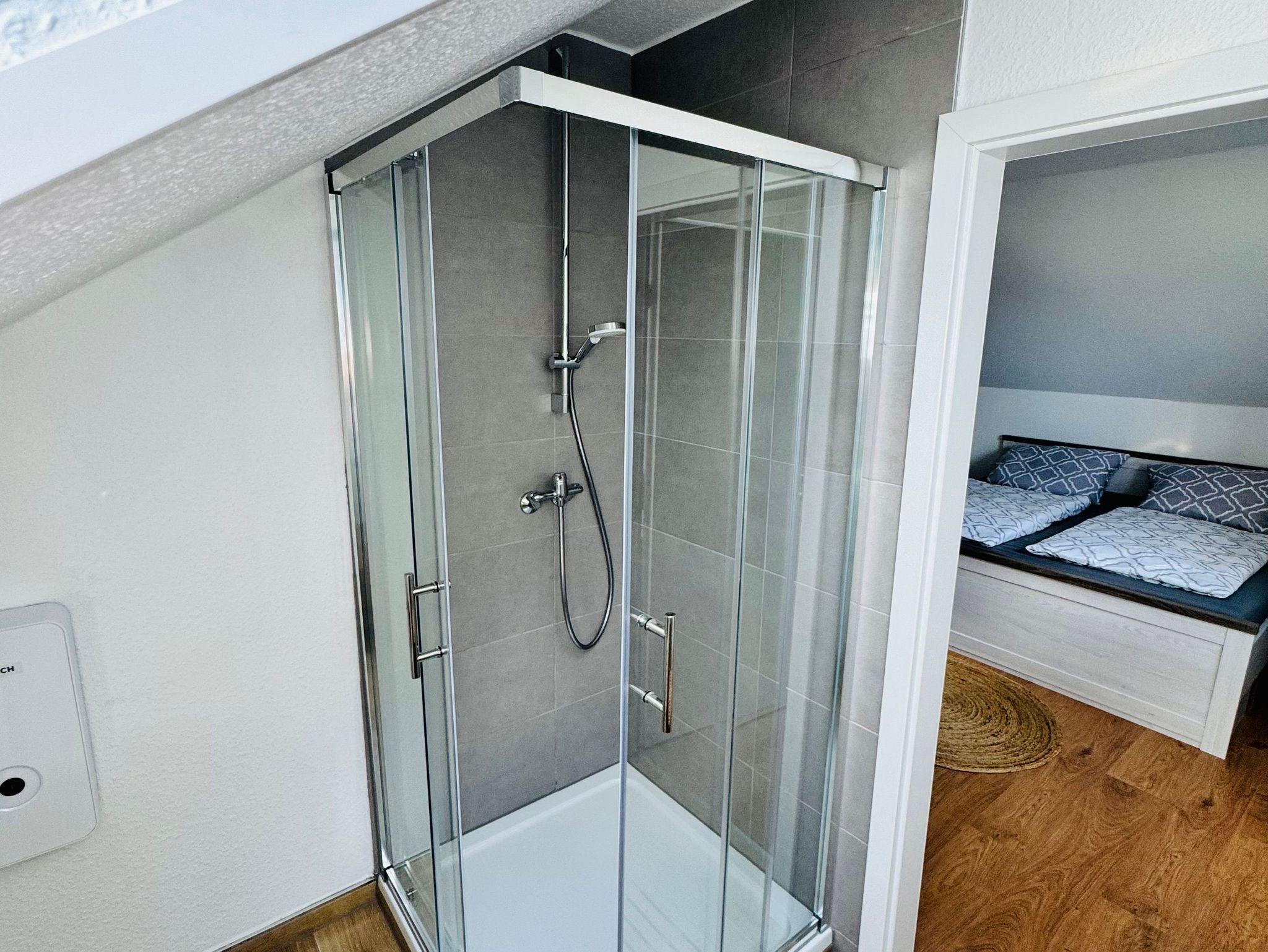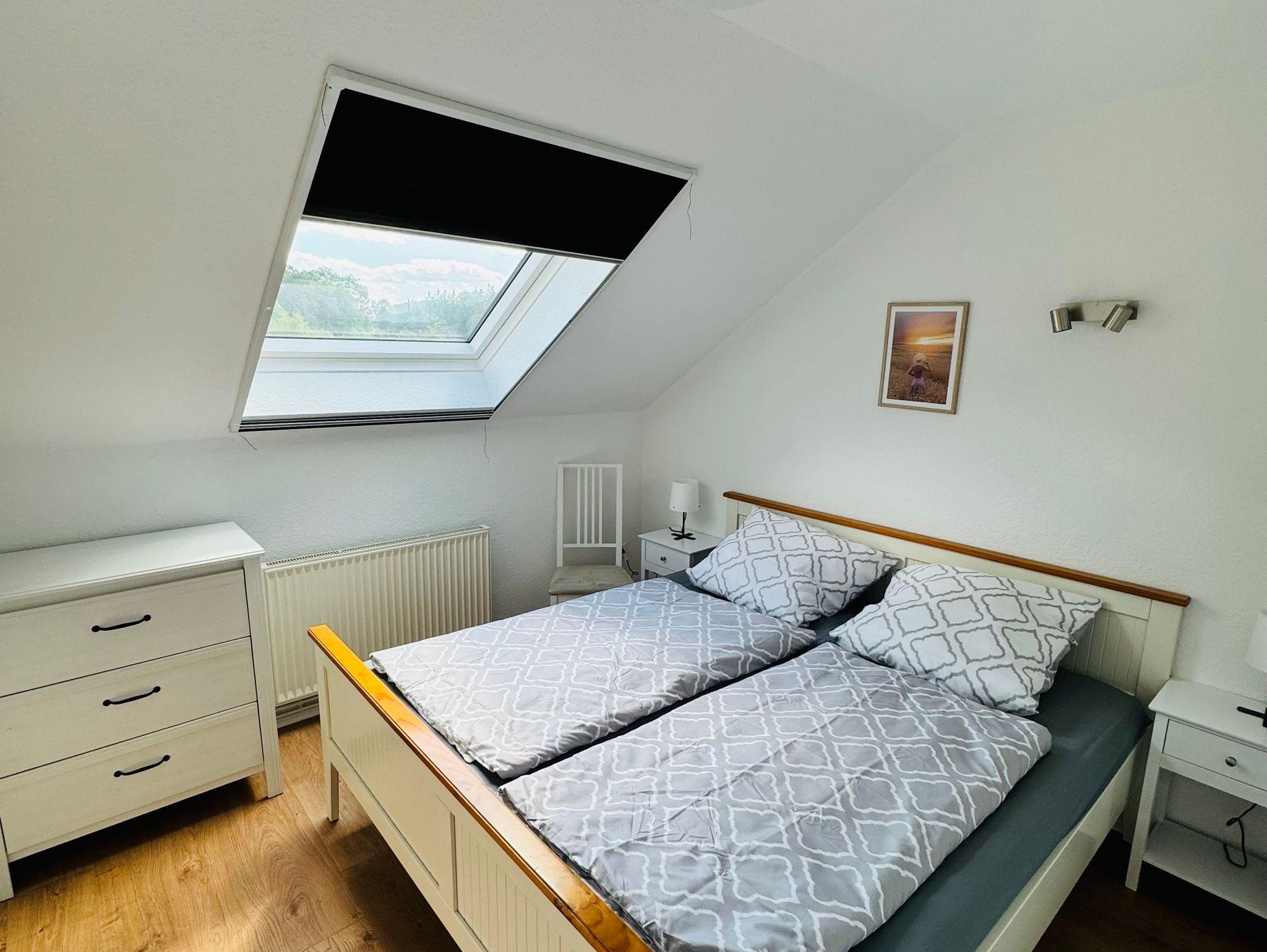 - im Obergeschoss 2 Schlafzimmer mit Doppelbett 1,80x2,00m und ein Schlafzimmer mit 2 Einzelbetten je 1,00x2,00m